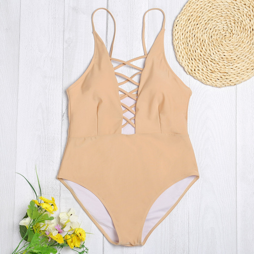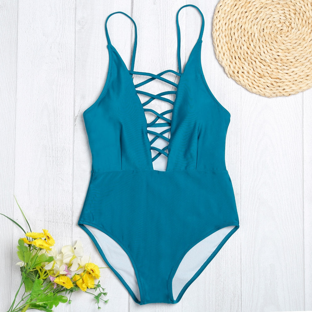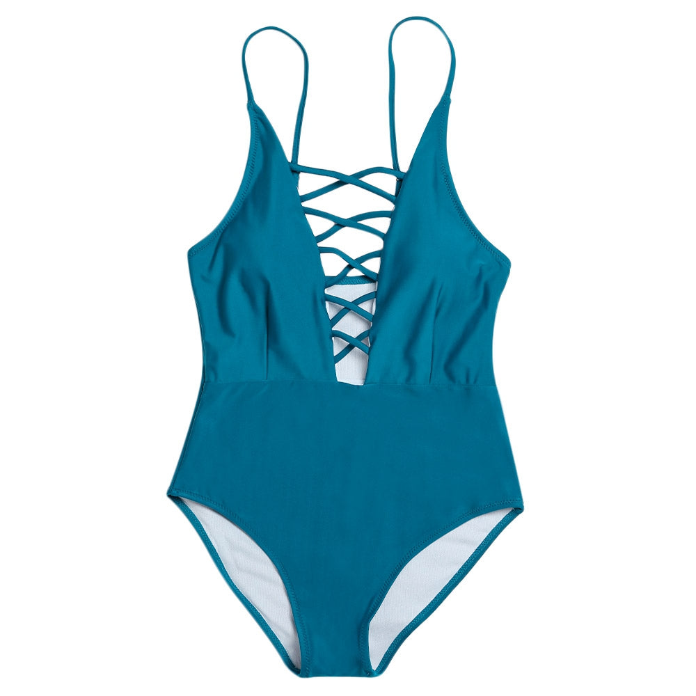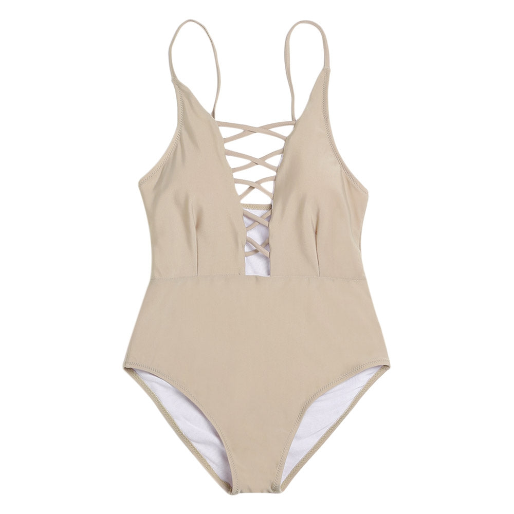 Spaghetti Strap Hollow Out Pad Backless Women Swimsuit