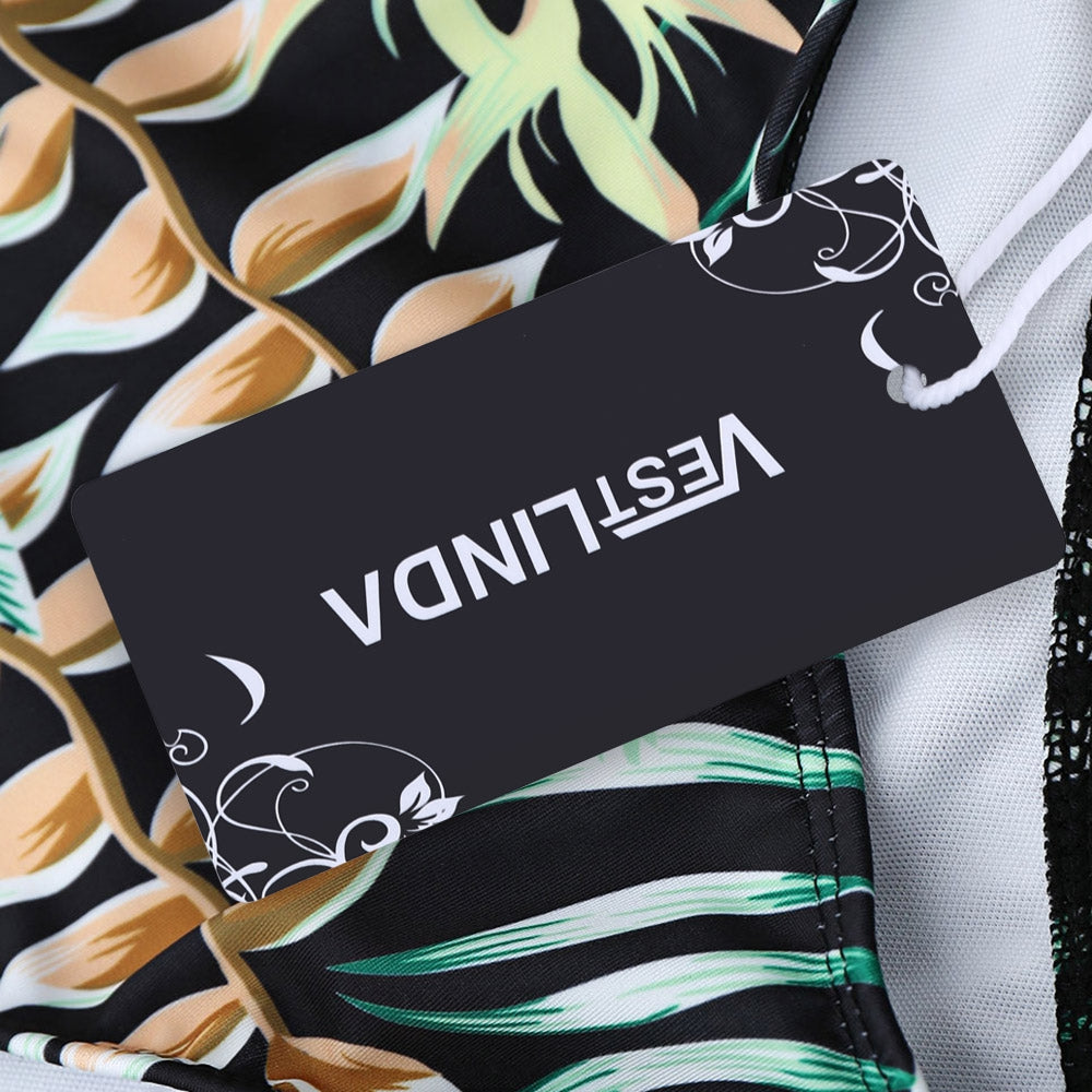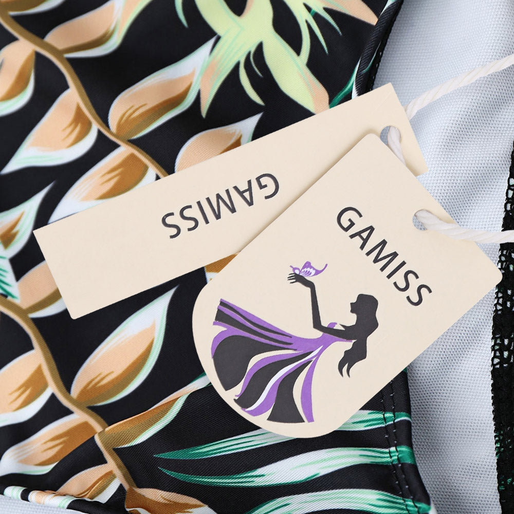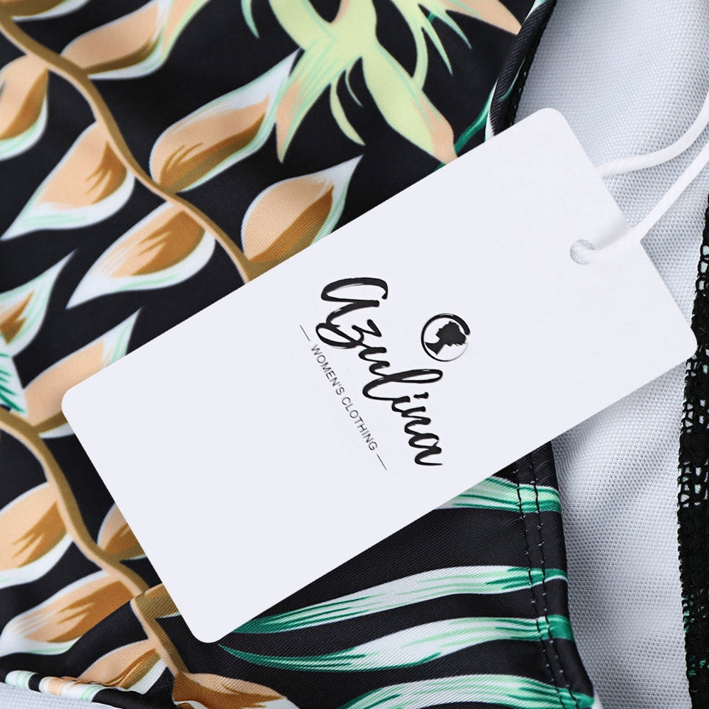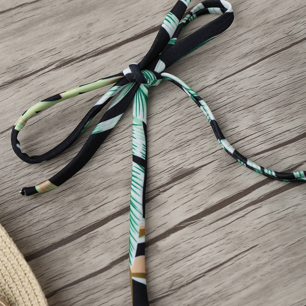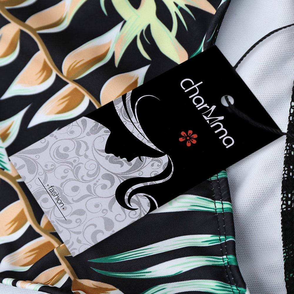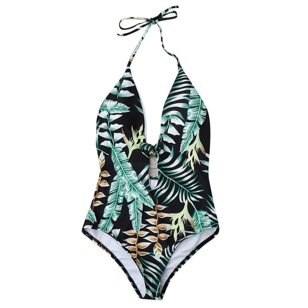 Tropical jungle print one-piece swimsuit featuring a sexy low cut front, self tie cami halter straps to make for a suitable fit to your body, low scoop back design, and removable padded cups can give you effortless and comfortable wearing experience.
