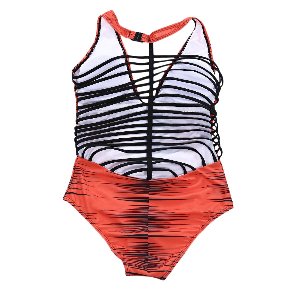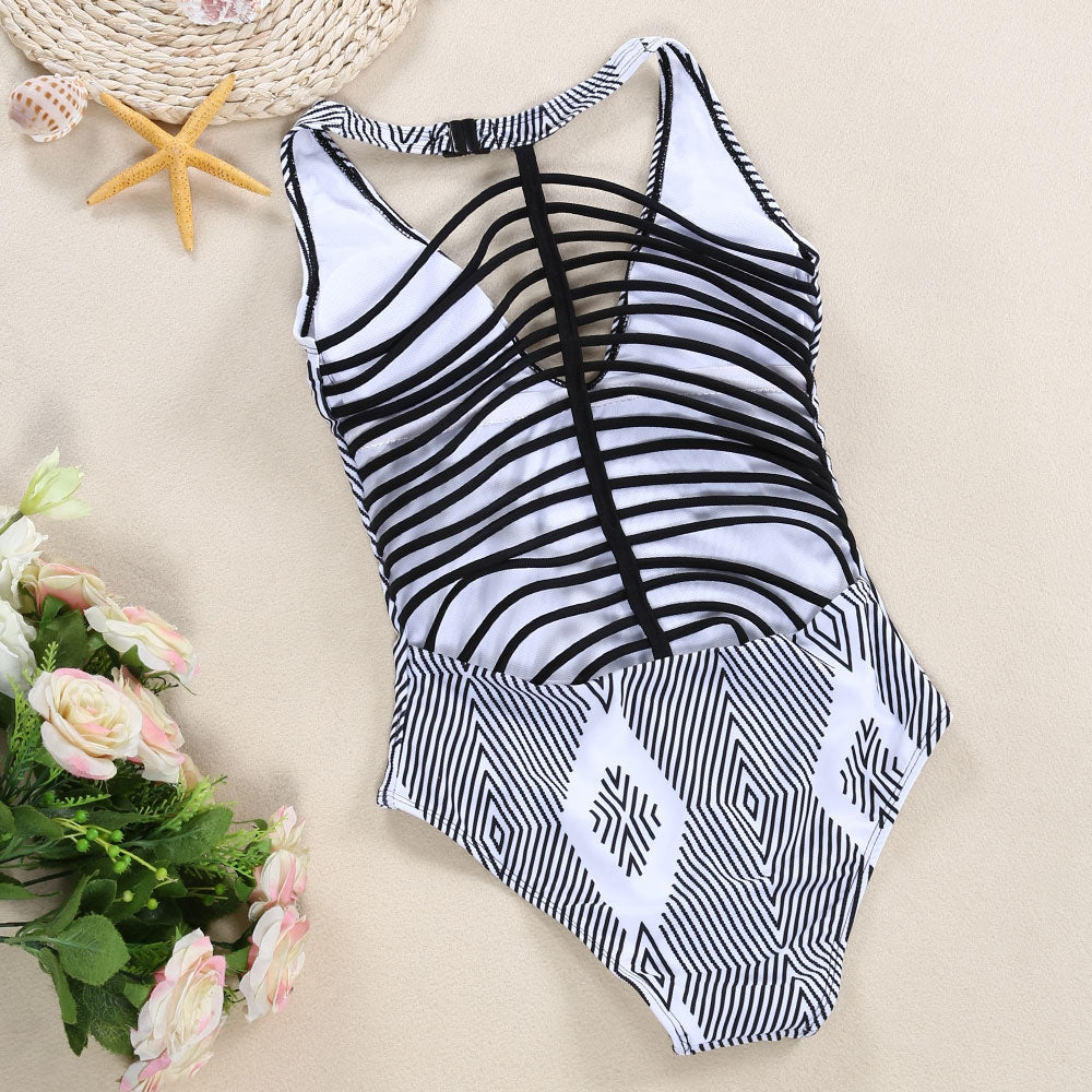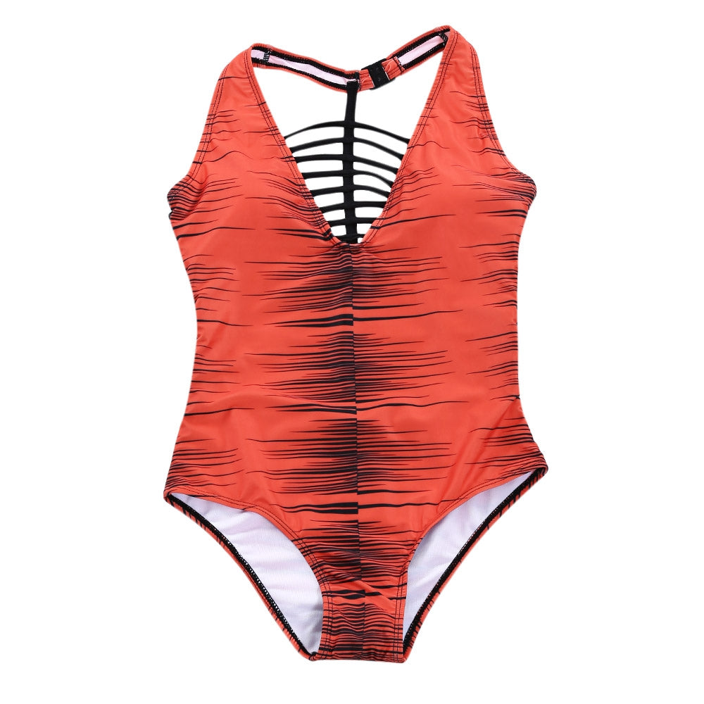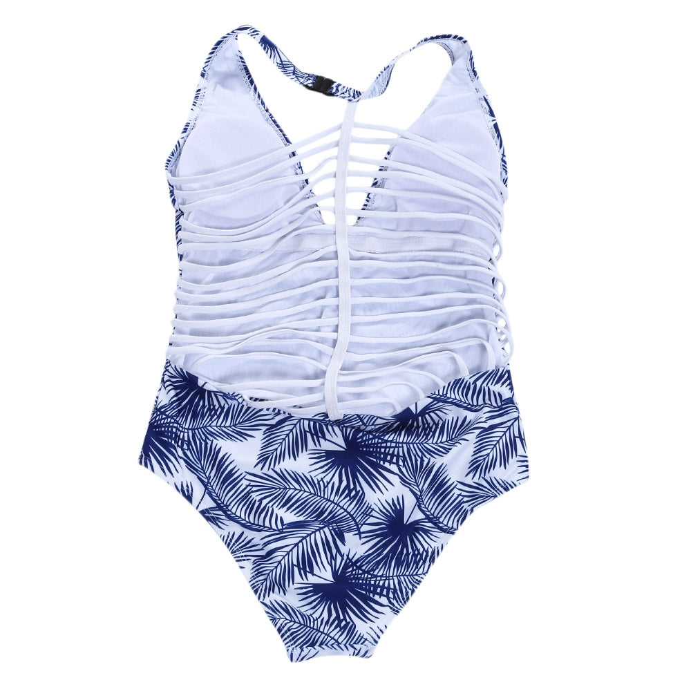 Sexy V Neck Hollow Out Strap Pad Print Women Swimsuit