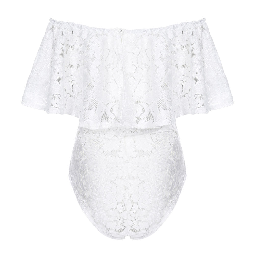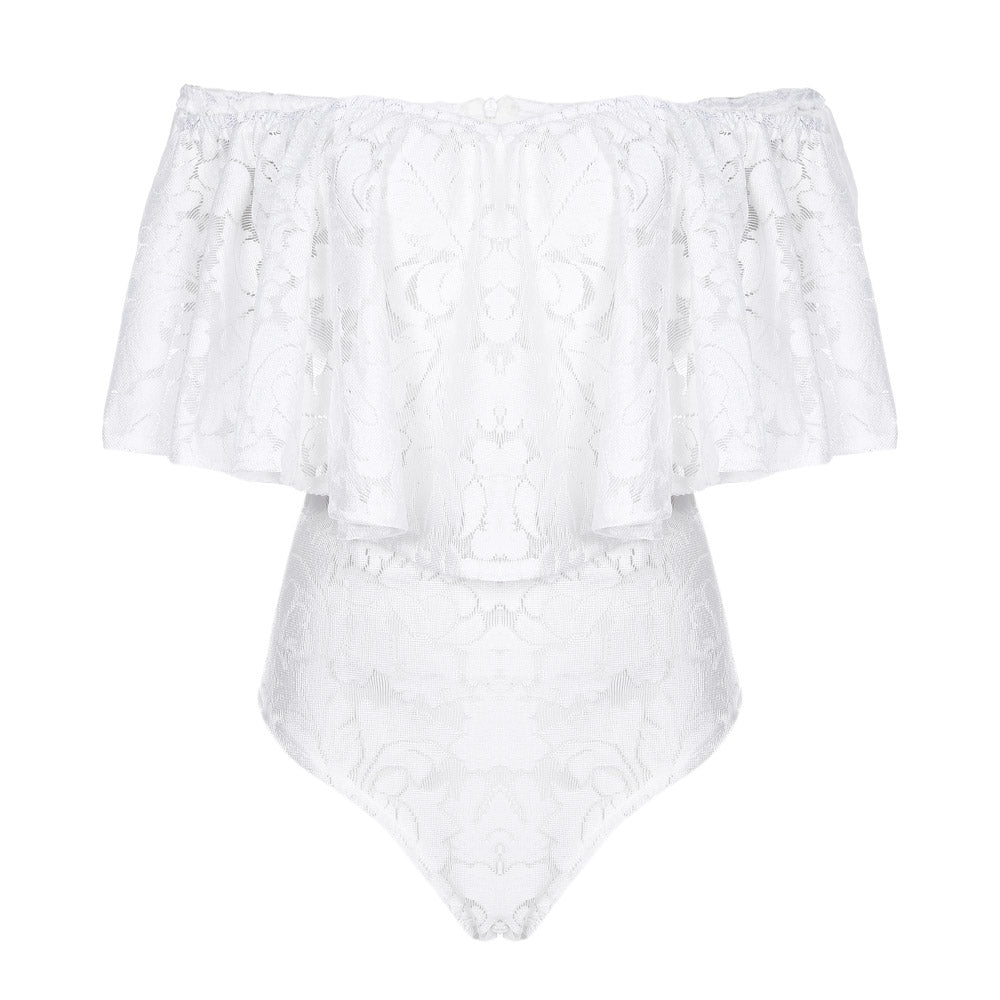 Sexy Off The Shoulder Flounce Lace Zipper Women Bodysuit