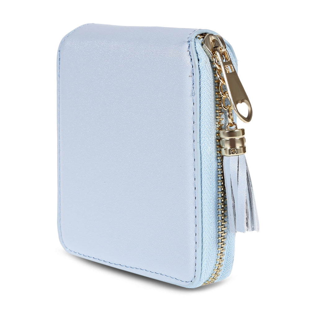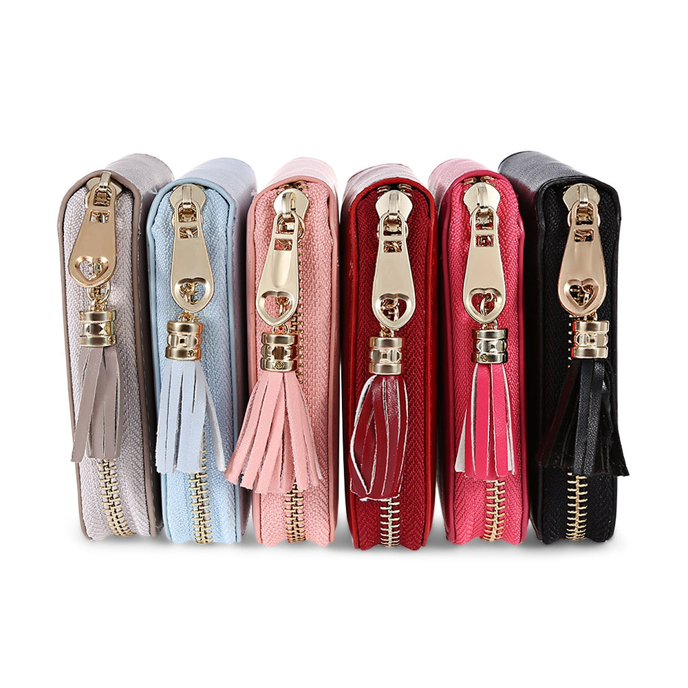 The wallet with PU leather, zipper closure and tassel design is fashionable for women.