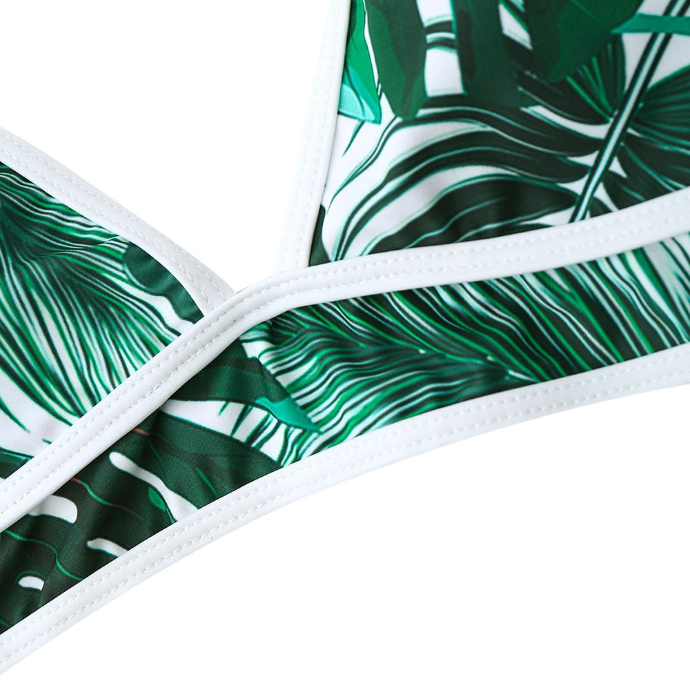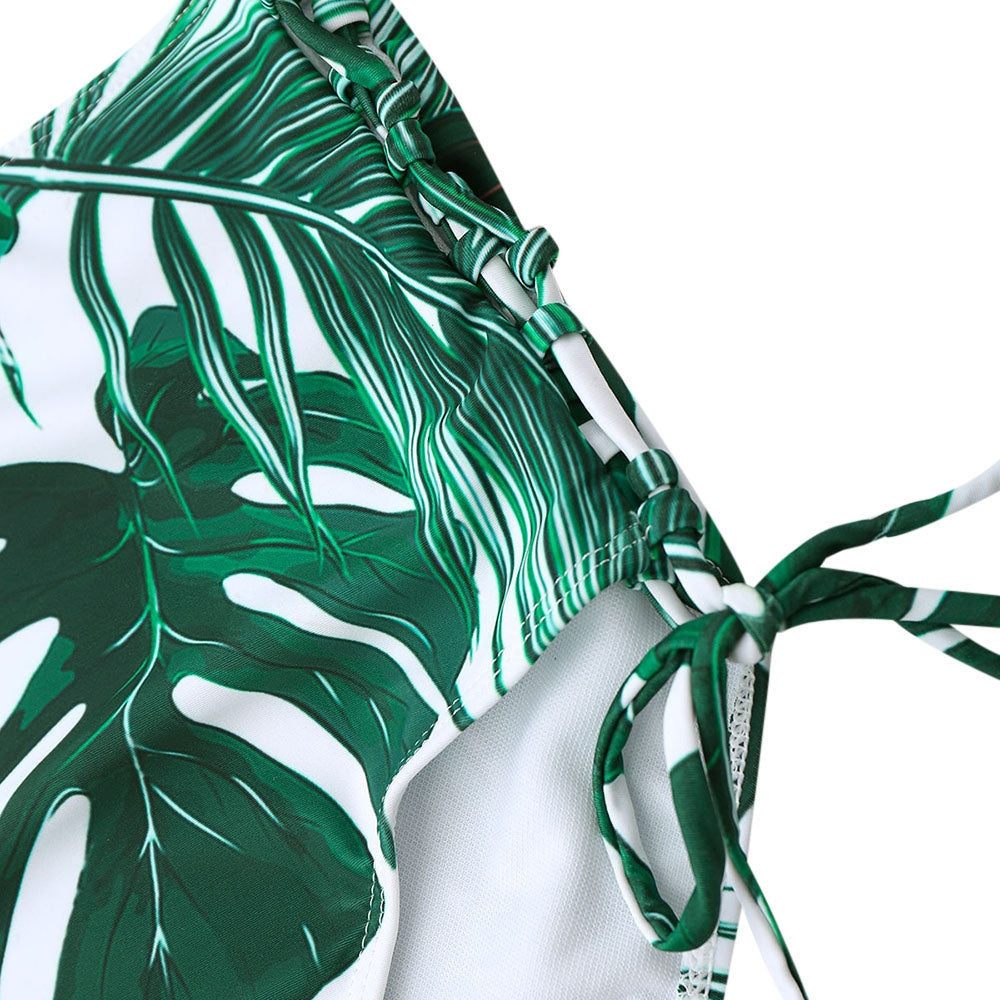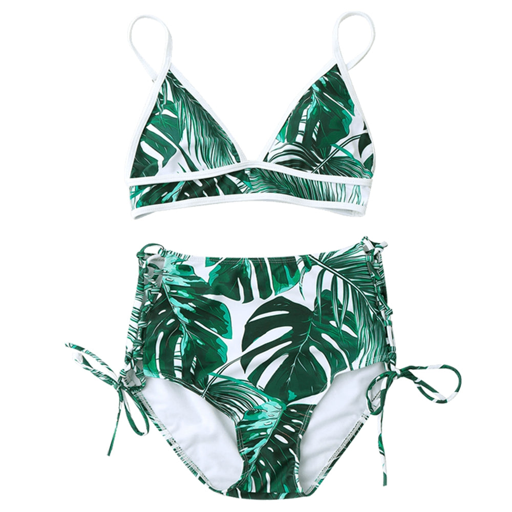 The tropical print bikini features lace up side and padded, this design can cover your belly, but keep out your charm