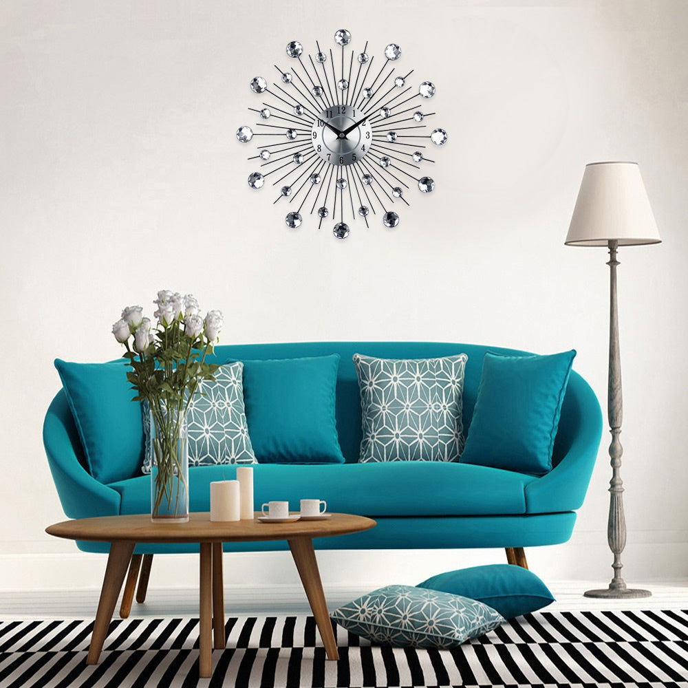 Crystal Sunburst Metal Clock Home Art Decor Diameter 13 inch