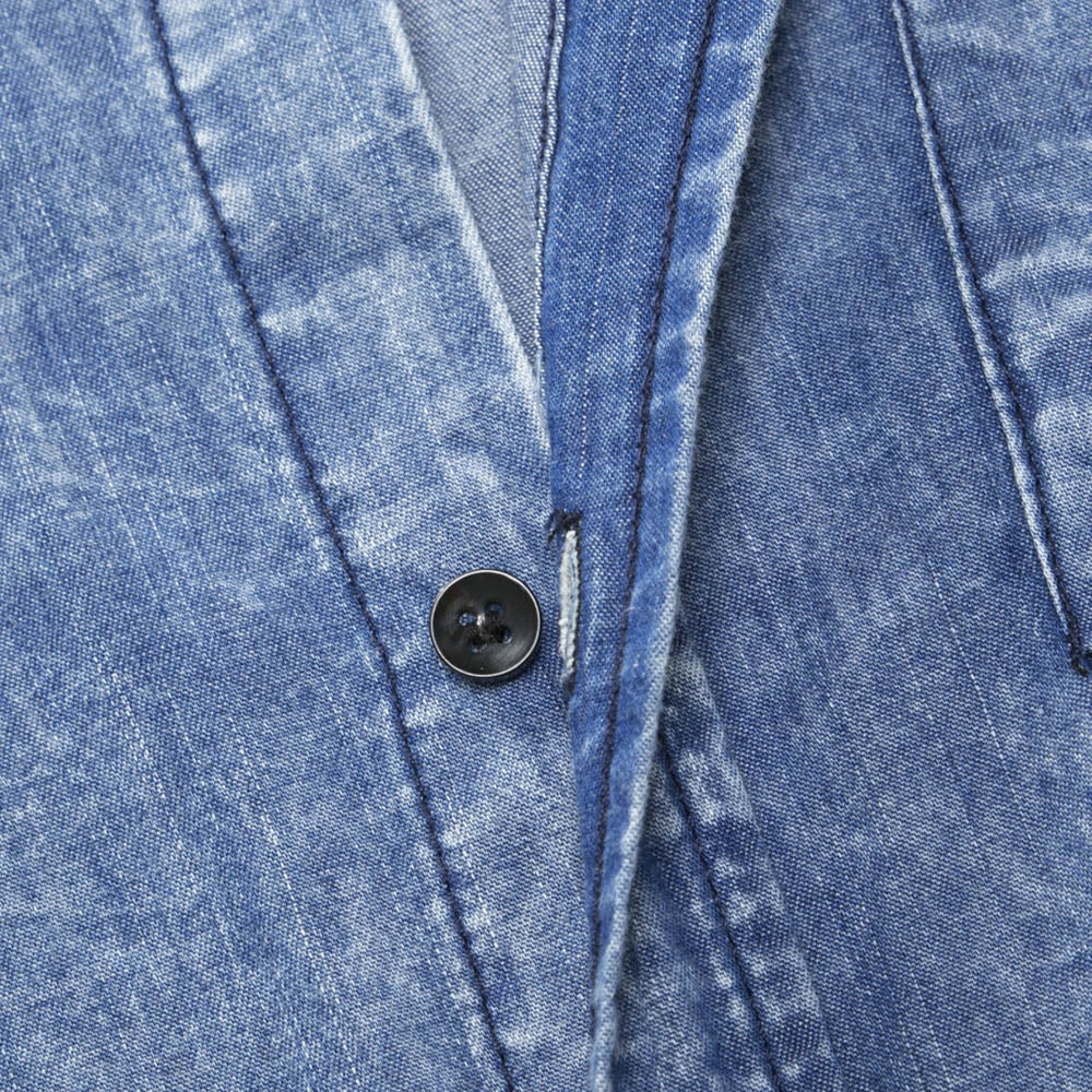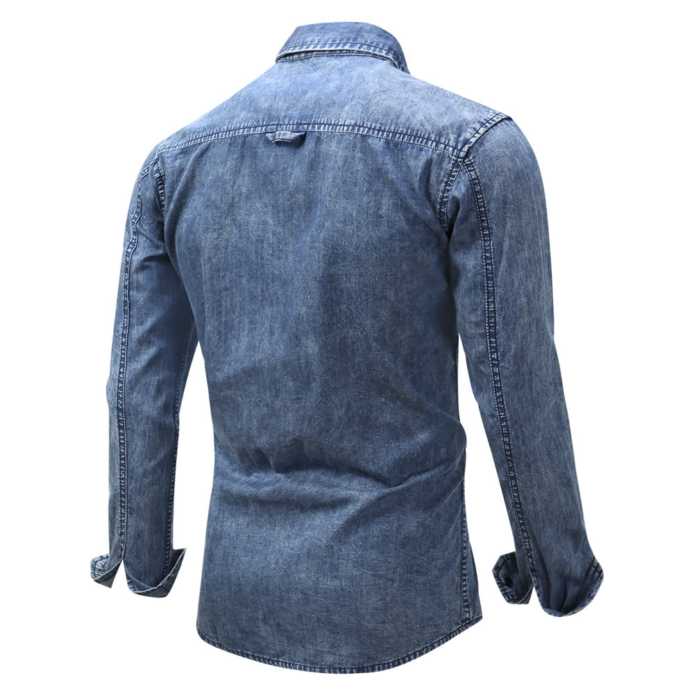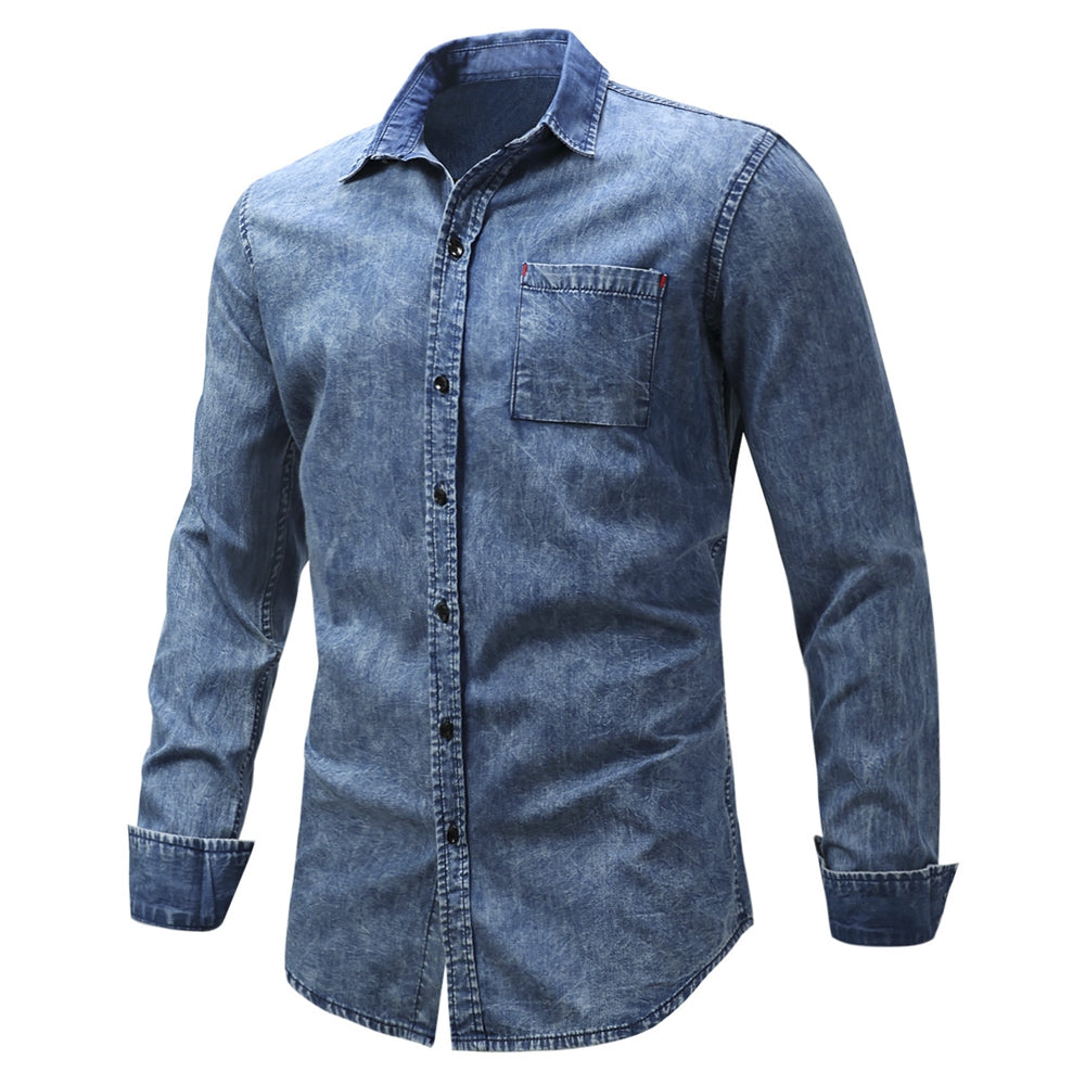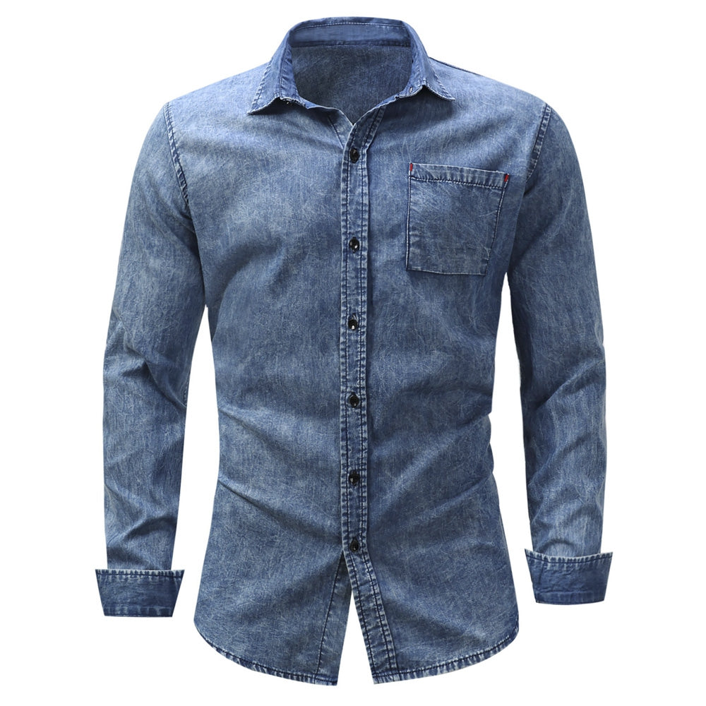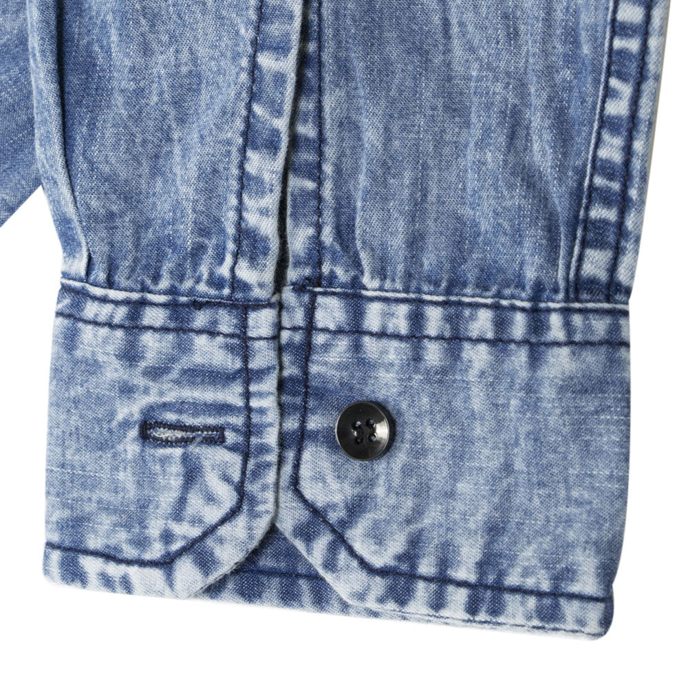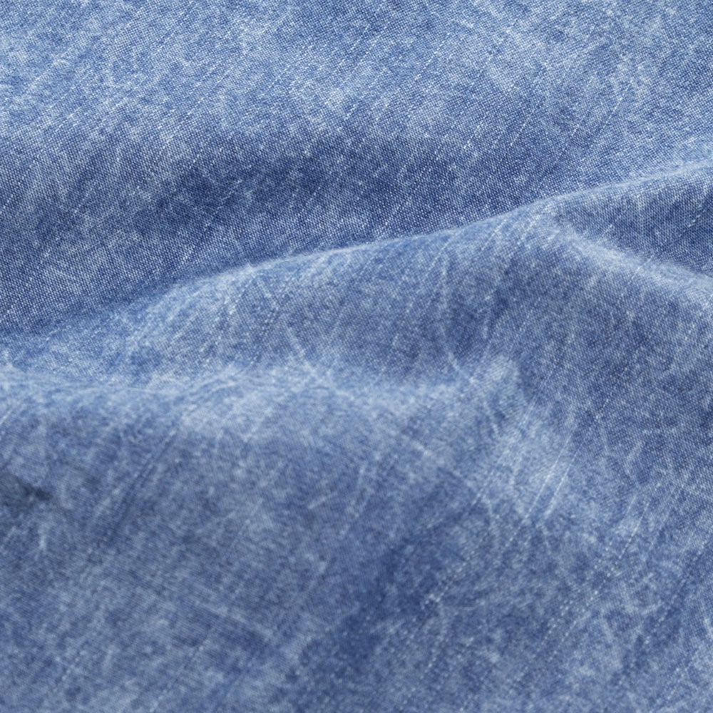 Turndown Collar Pocket Bleached Effect Chambray Shirt