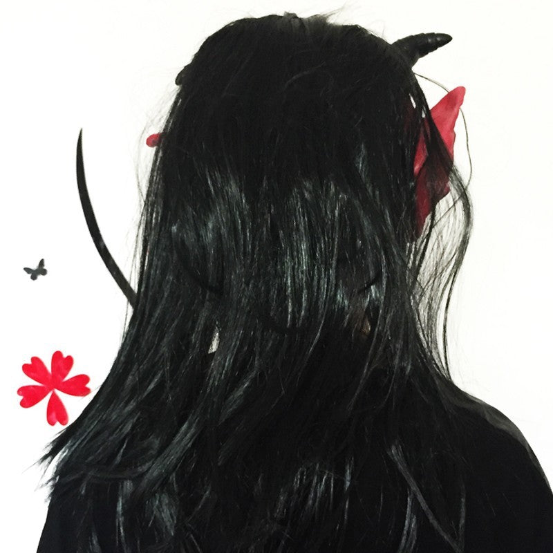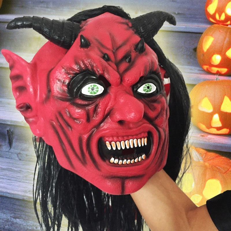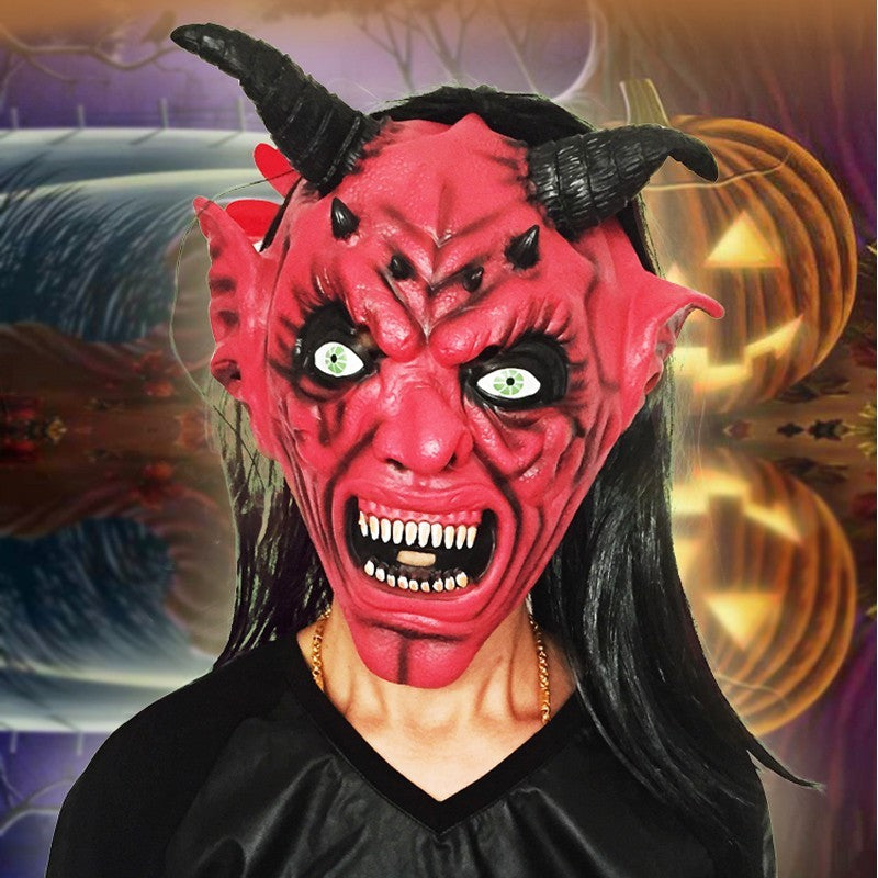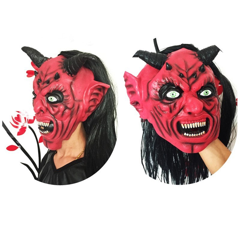 Yeduo Devil Inferno Satan Mask Horror Halloween Novelty Red Face Adult Size Party Head Long Hair for Women Men