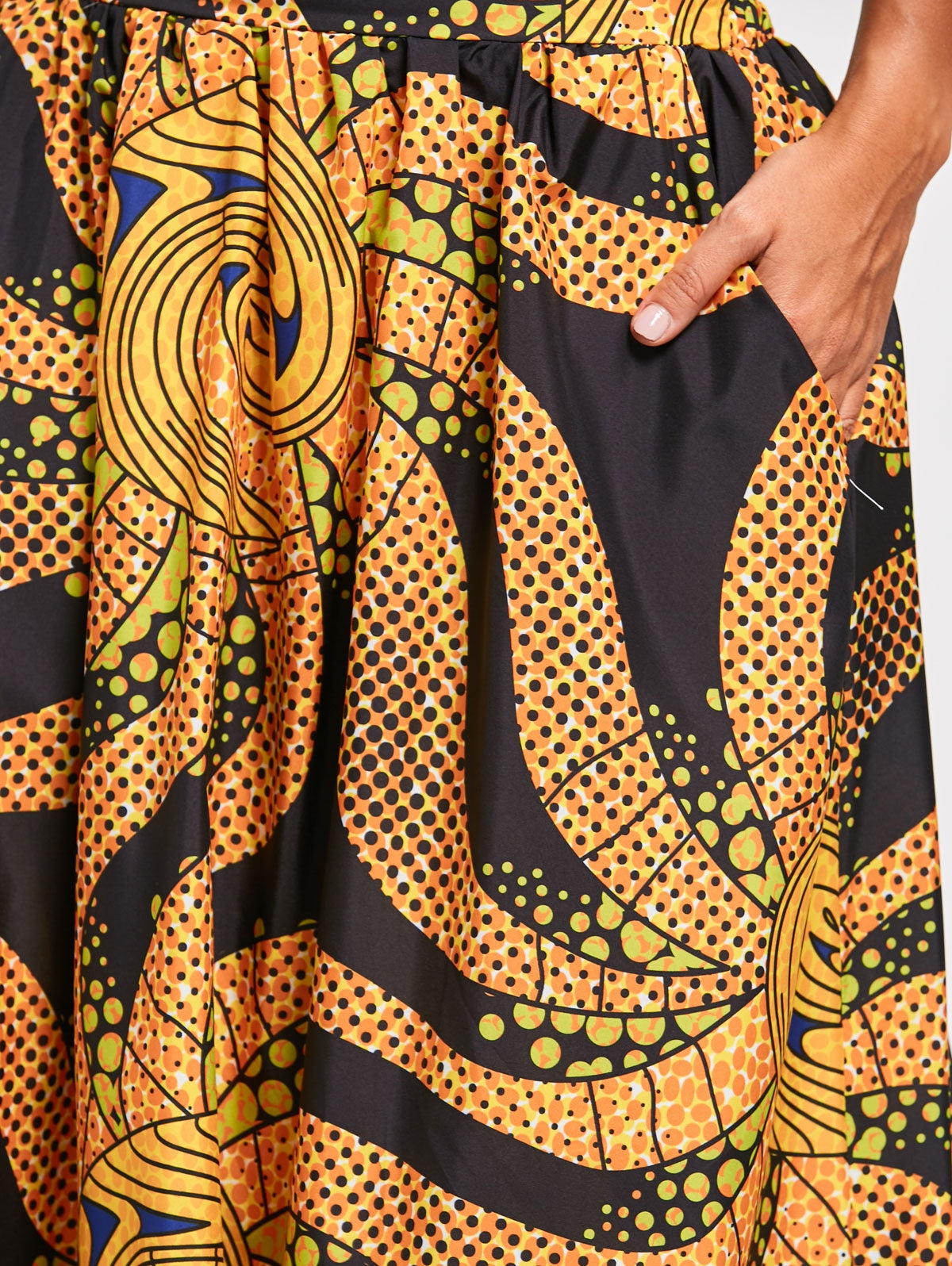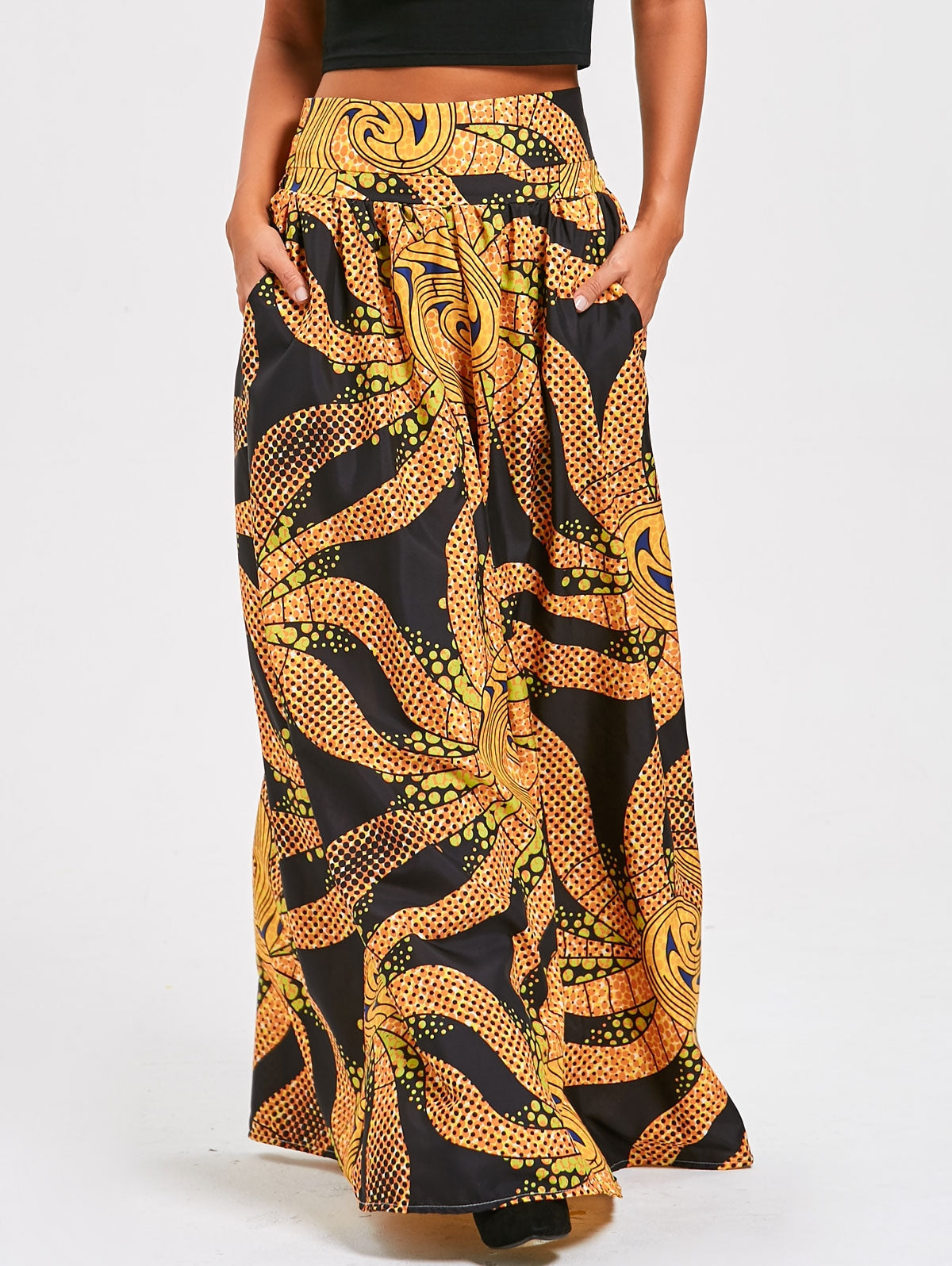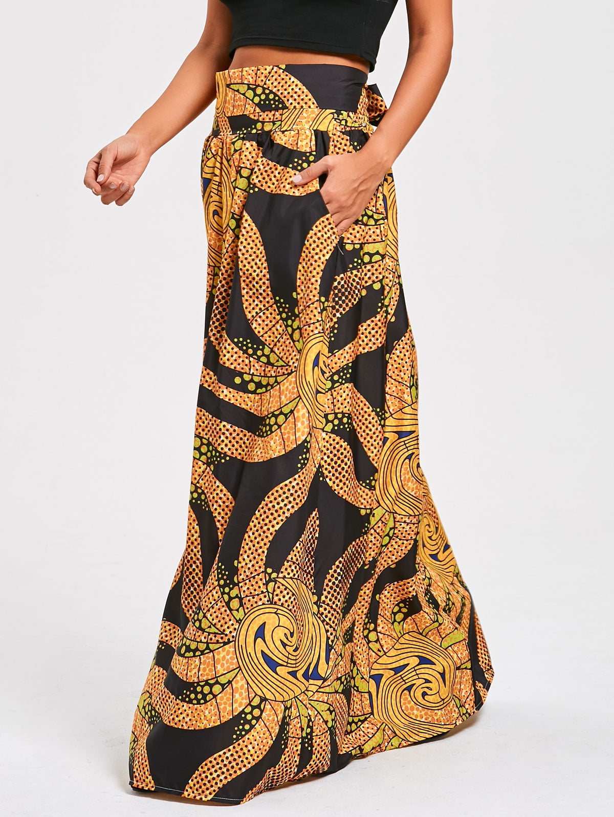 Thermal print skirt. Featuring high waist and overlength details. Pocket design.