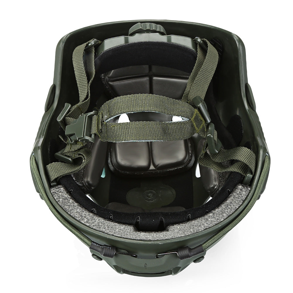 - The adjustable suspender strap with chin and neck pad is to keep your helmet seated properly even during rapid movement and the most strenuous of tactical maneuvers. Fits for head circumference about 56 - 61cm / 21.65 - 24.02 inches