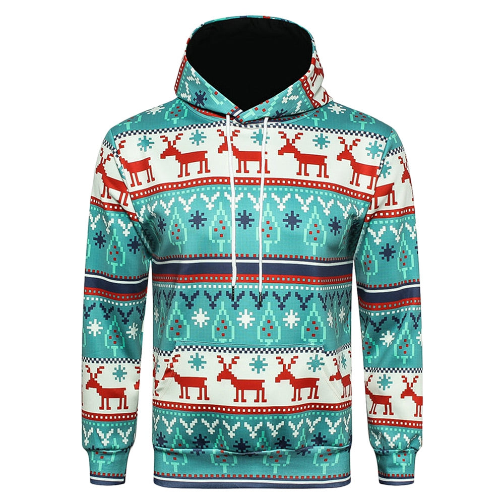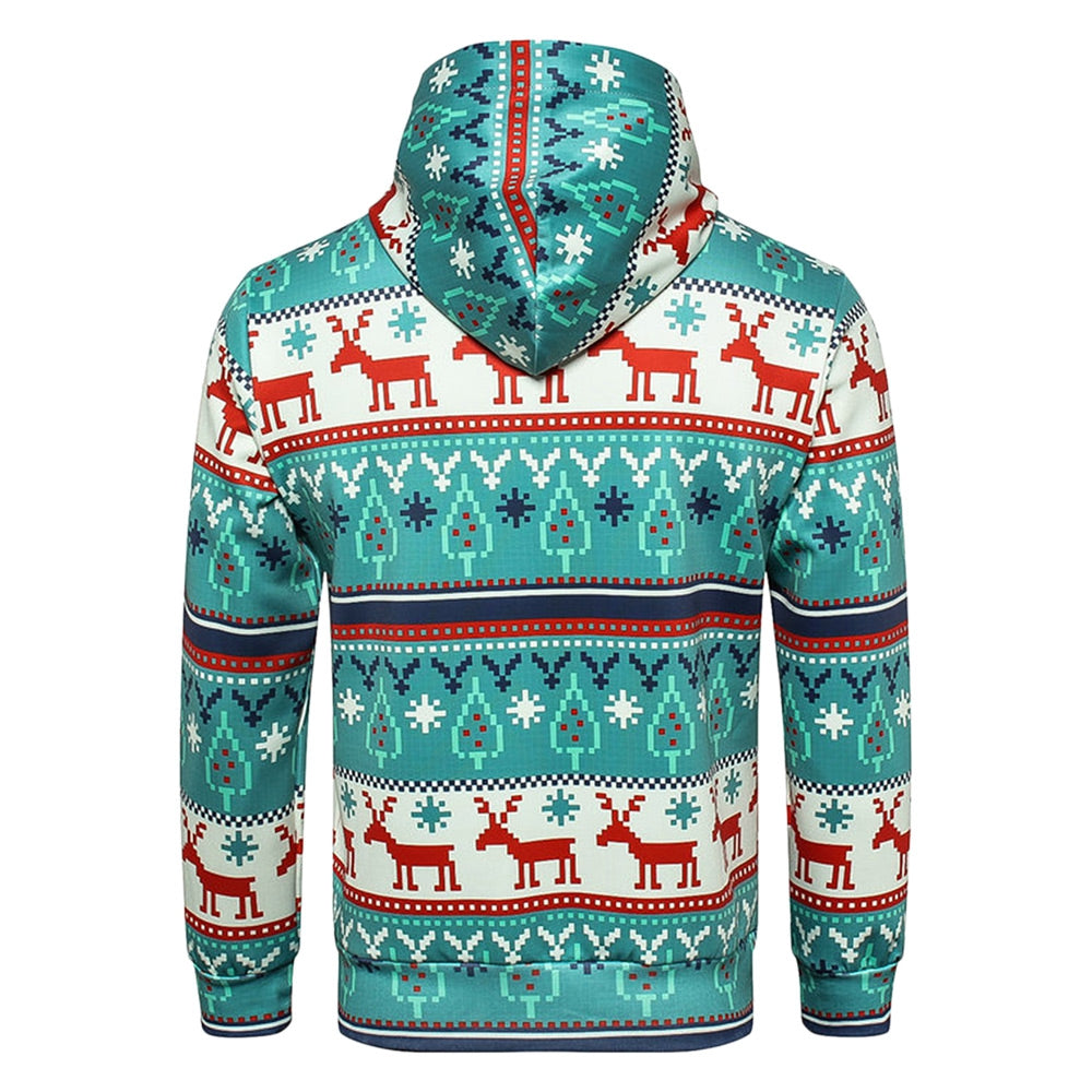 Hooded Christmas Elk Geometric Print Pullover Hoodie