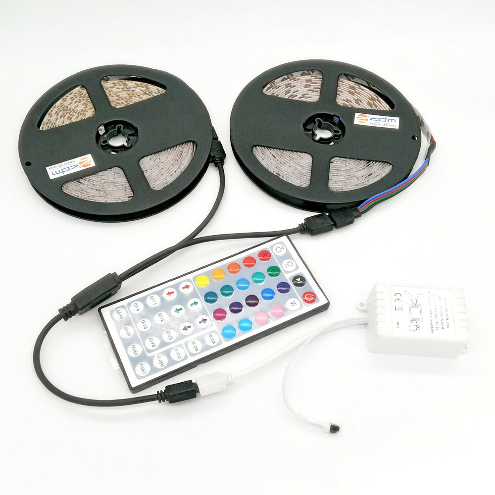 ZDM DC12V 2835 300LEDs RGB Strips with IR44 Key Double Outlet Controller 2PCS