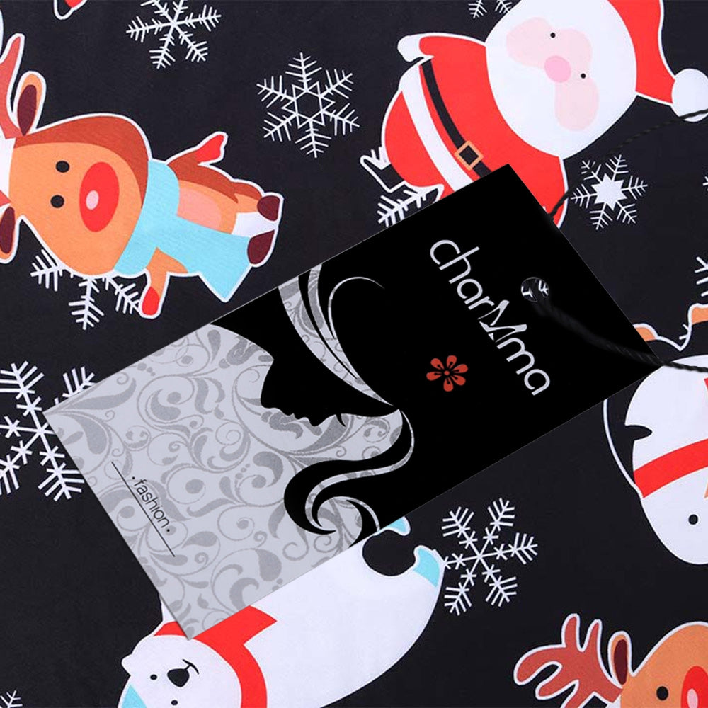 This edgy long sleeve mini dress featuring a asymmetric silhouette with warm and soft material. With cute socks,gifts and bells print overall, this unique look is perfect for a Christmas day!