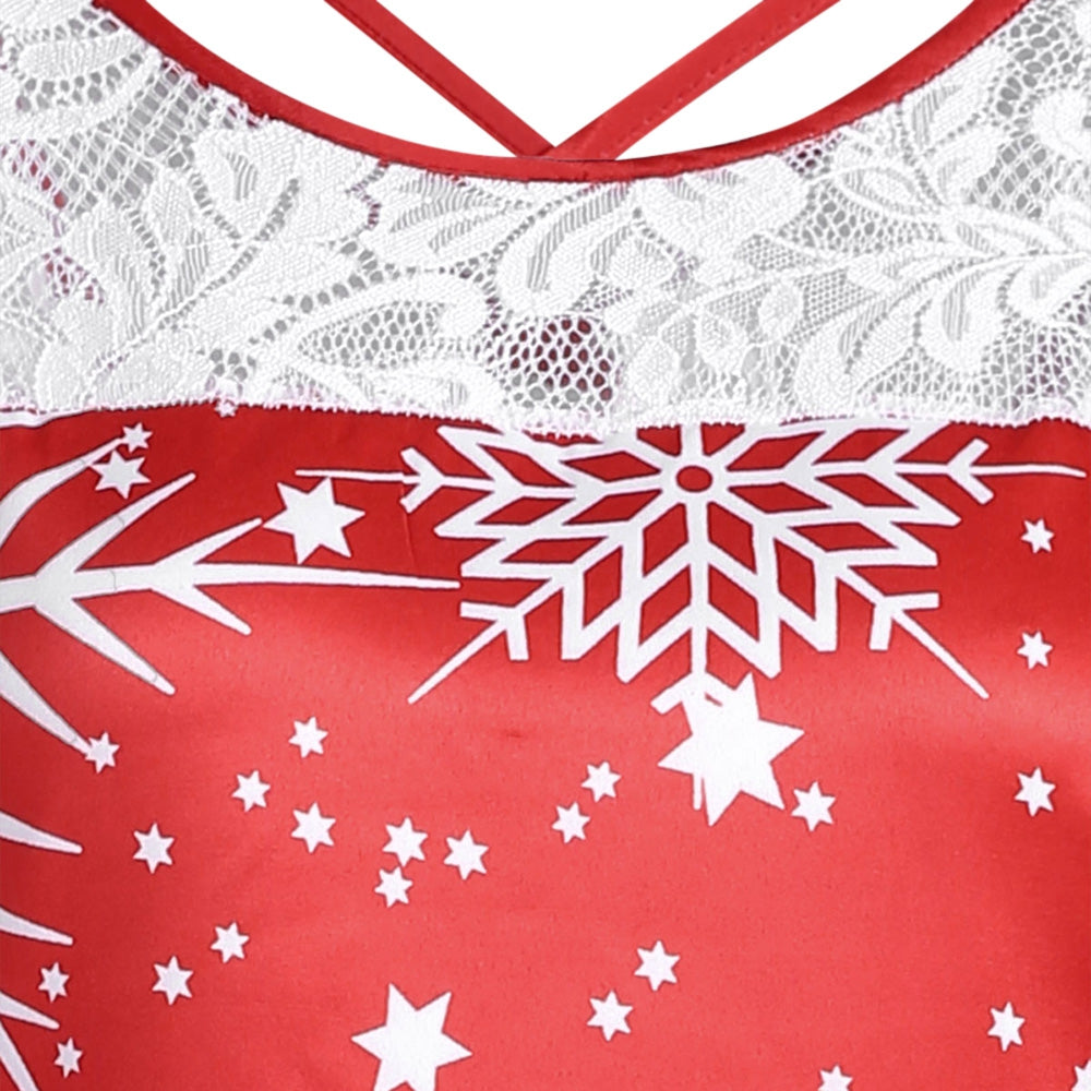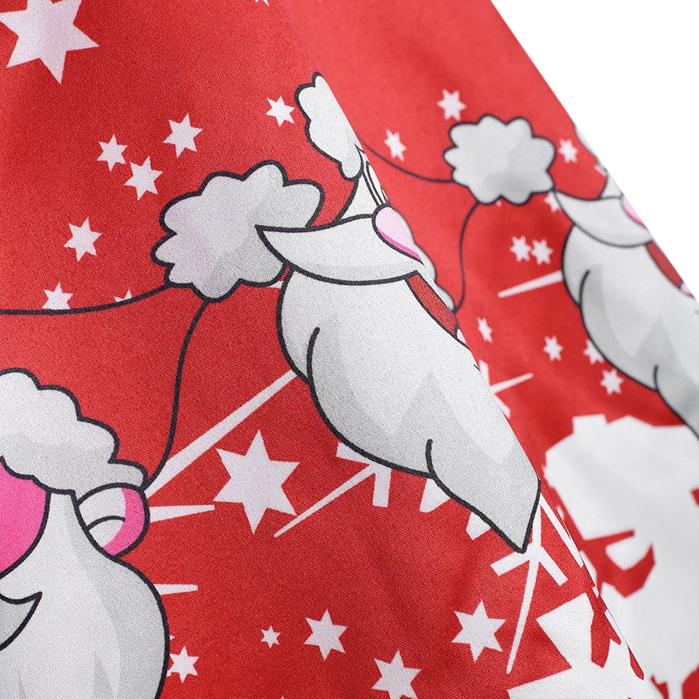 Lace Panel Santa Claus Print Flare Dress