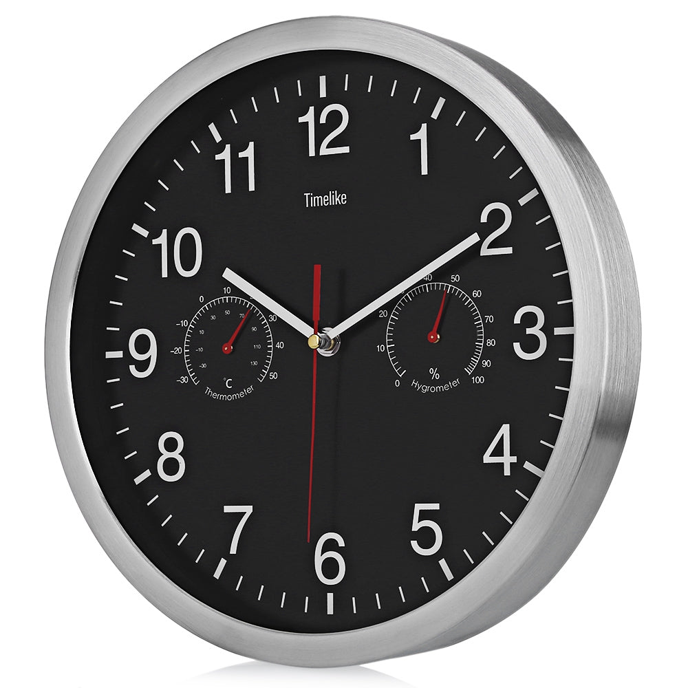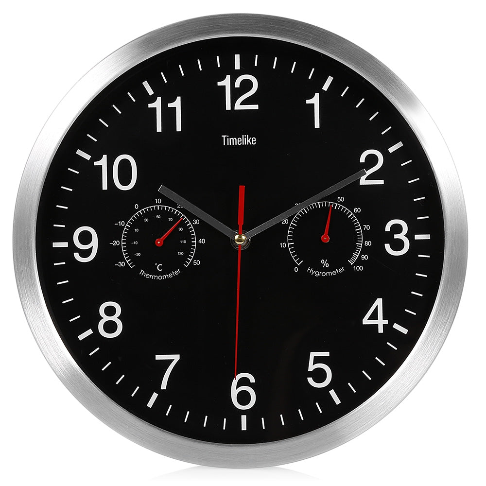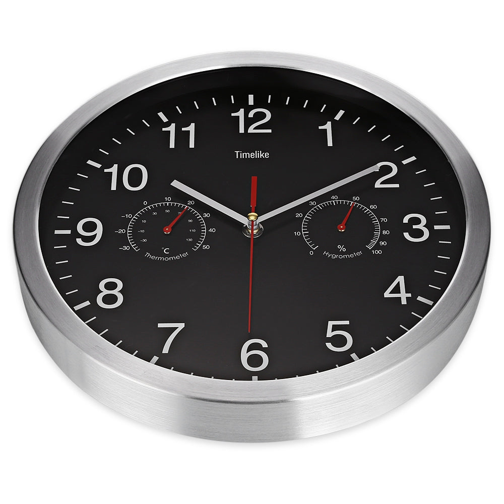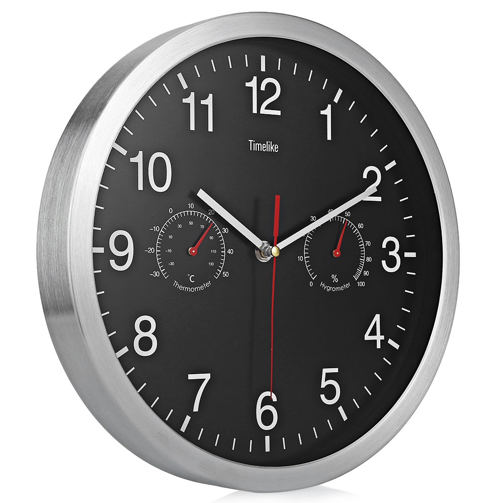 32cm Silent Wall Metal Clock Thermometer Hygrometer