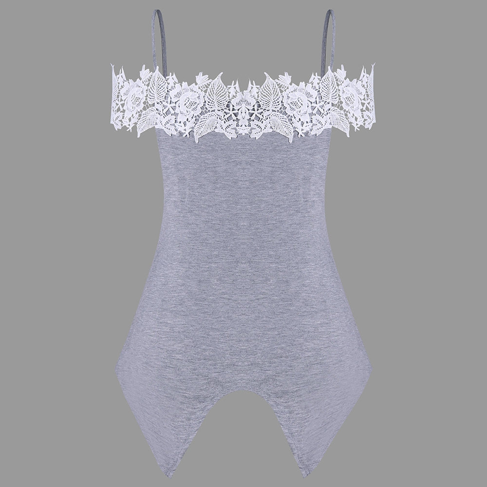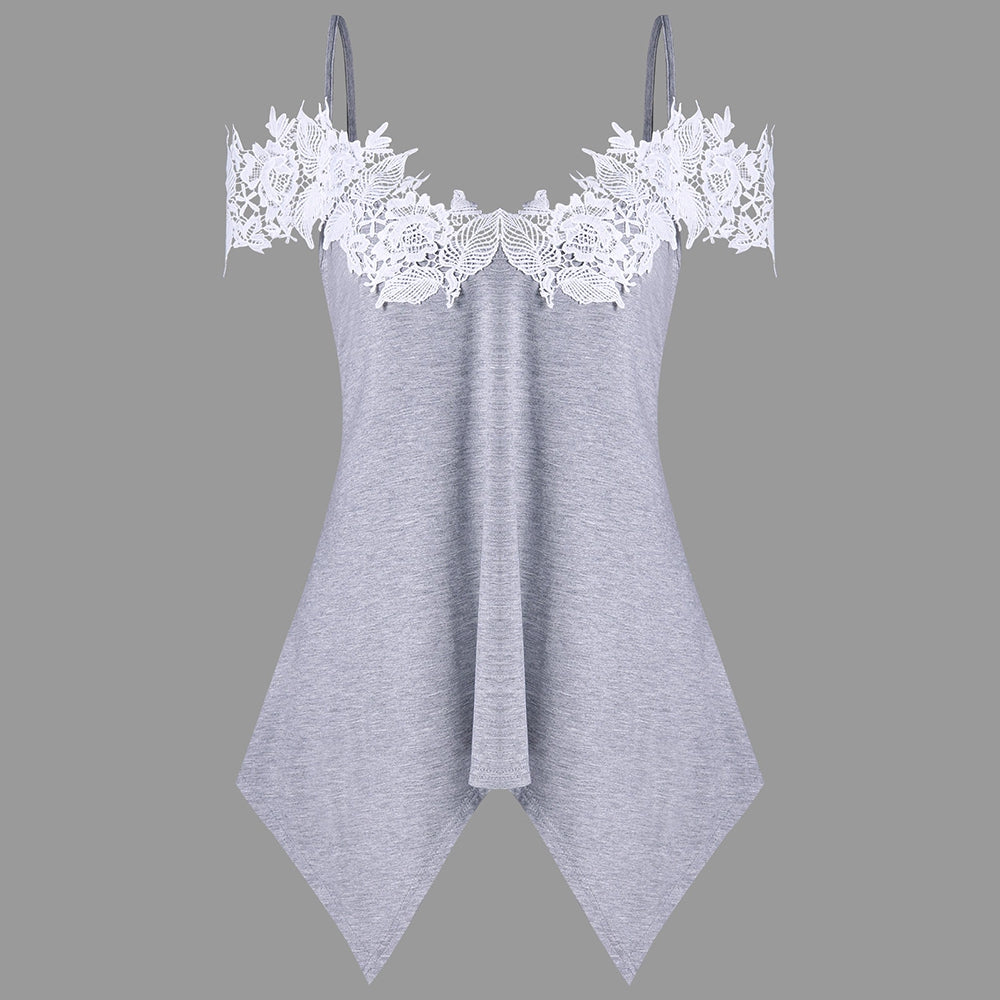 Cold Shoulder Lace Insert Handkerchief Tank Top