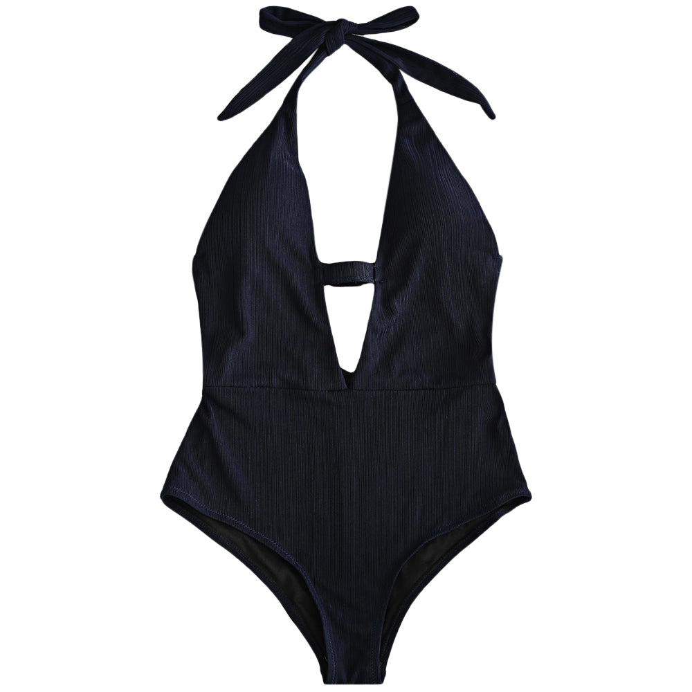 Halter Plunge Front Backless Swimsuit