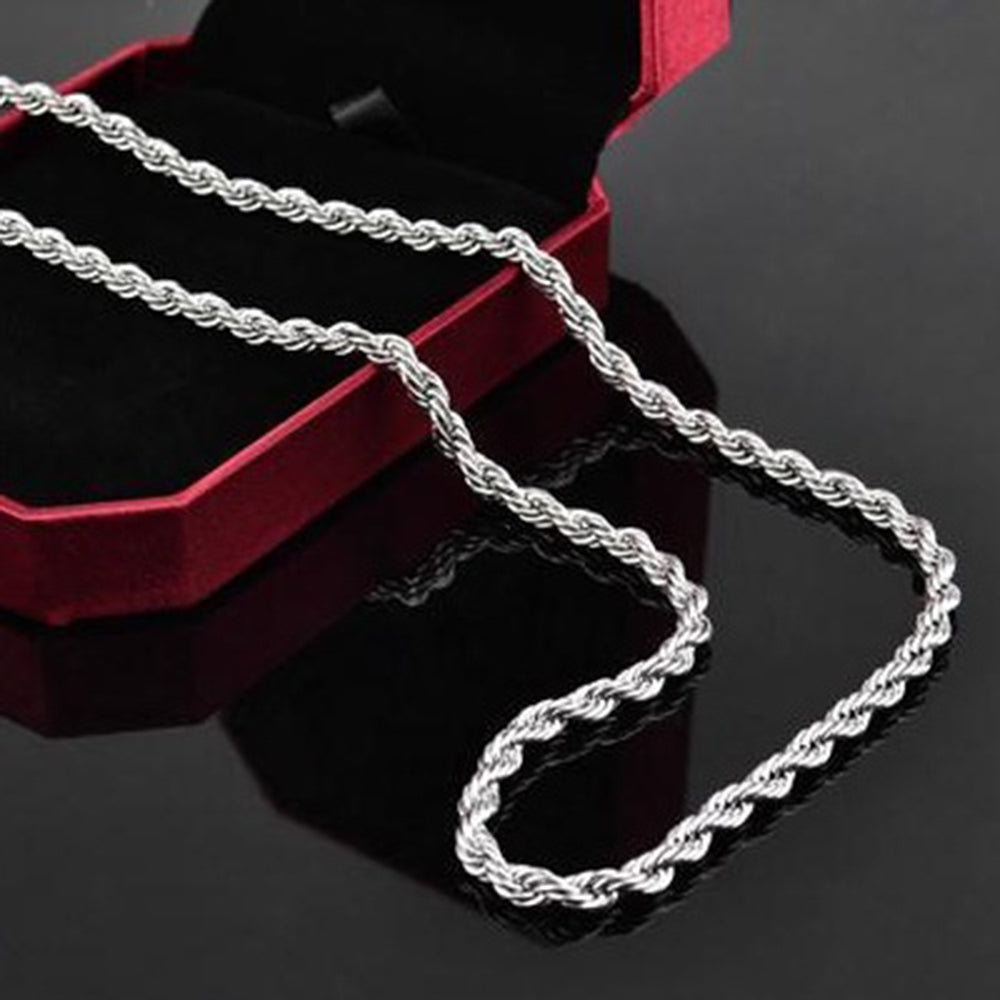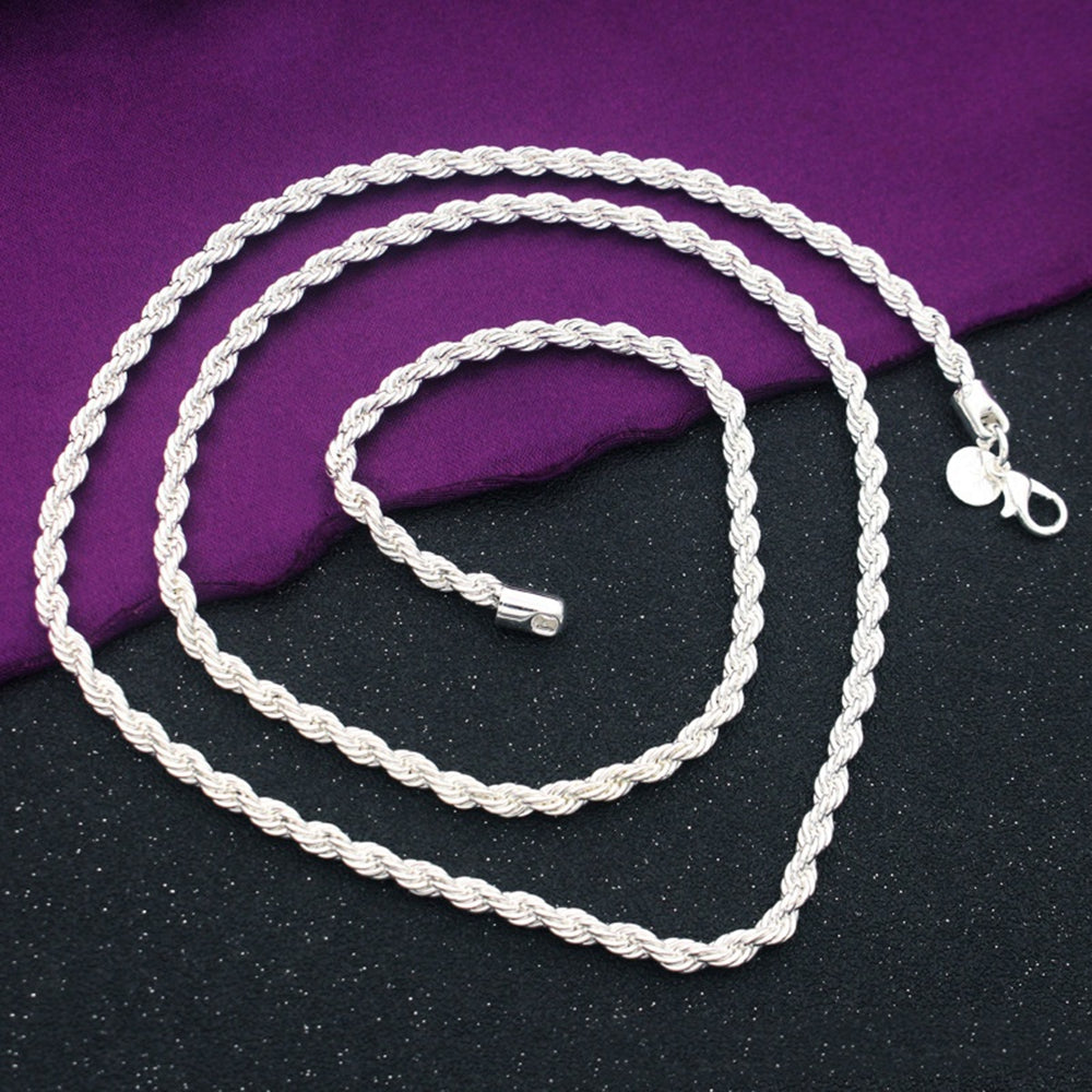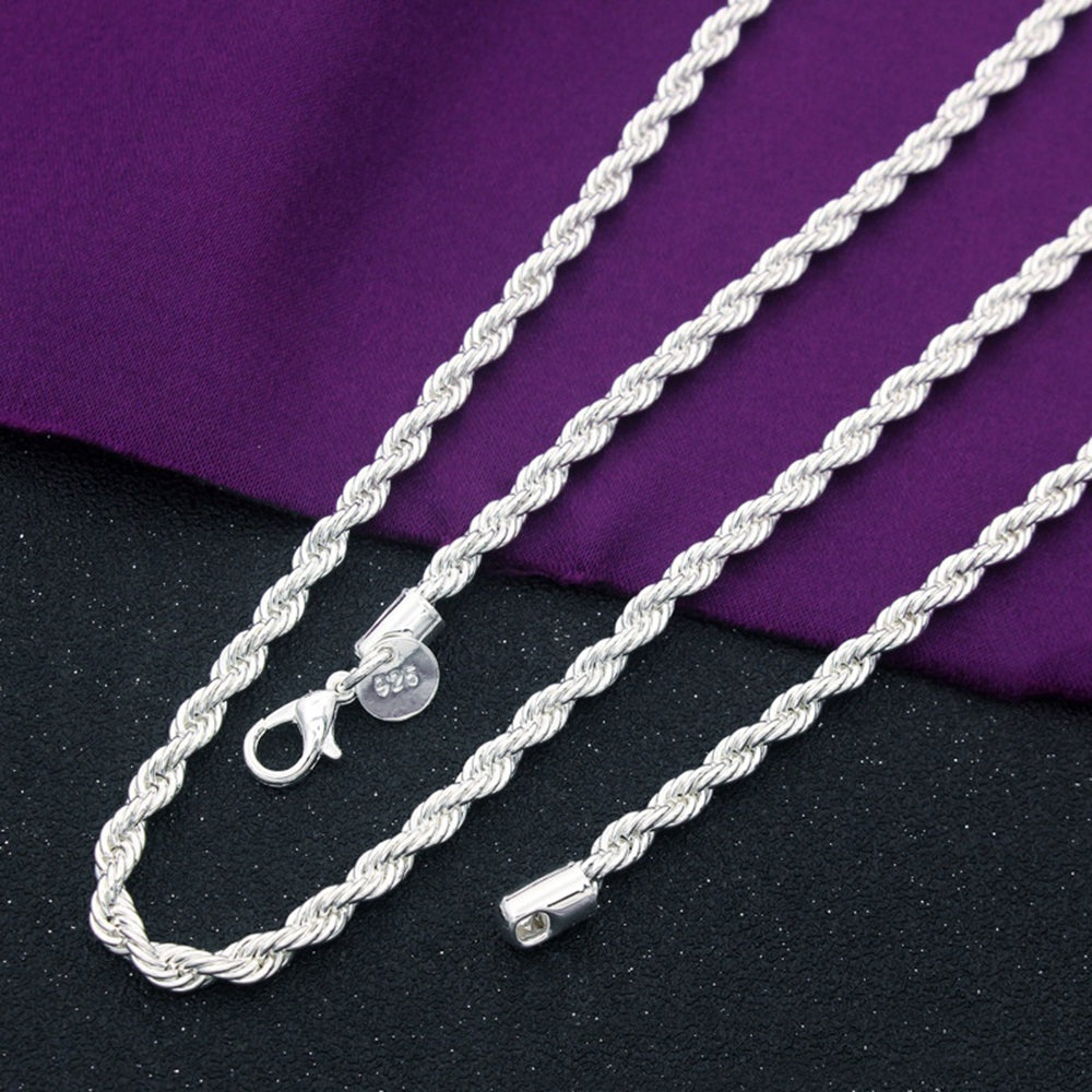 Mens 925 Sterling Silver Necklace Twisted Rope Chain 4mm