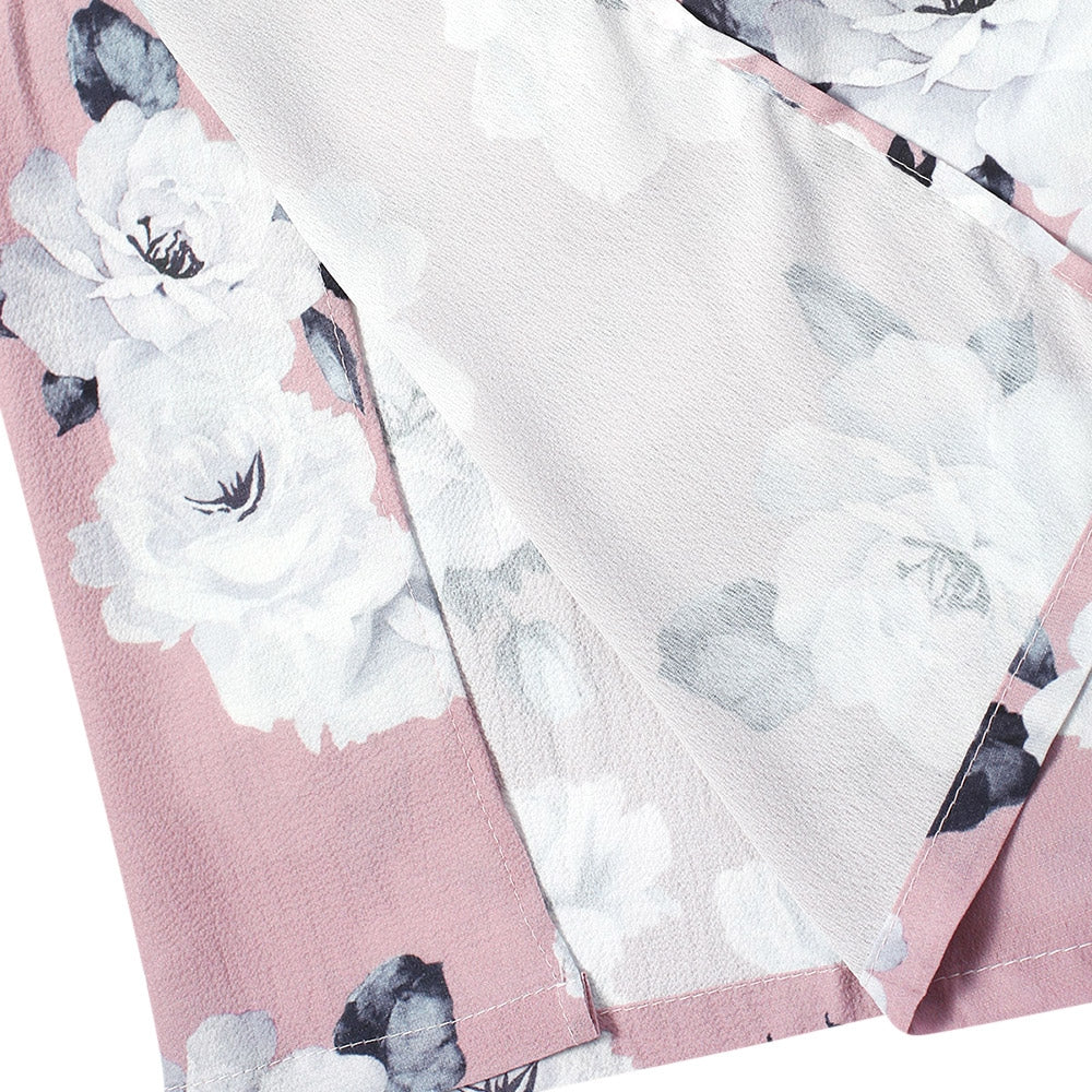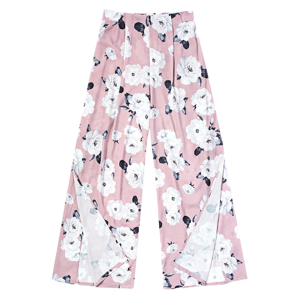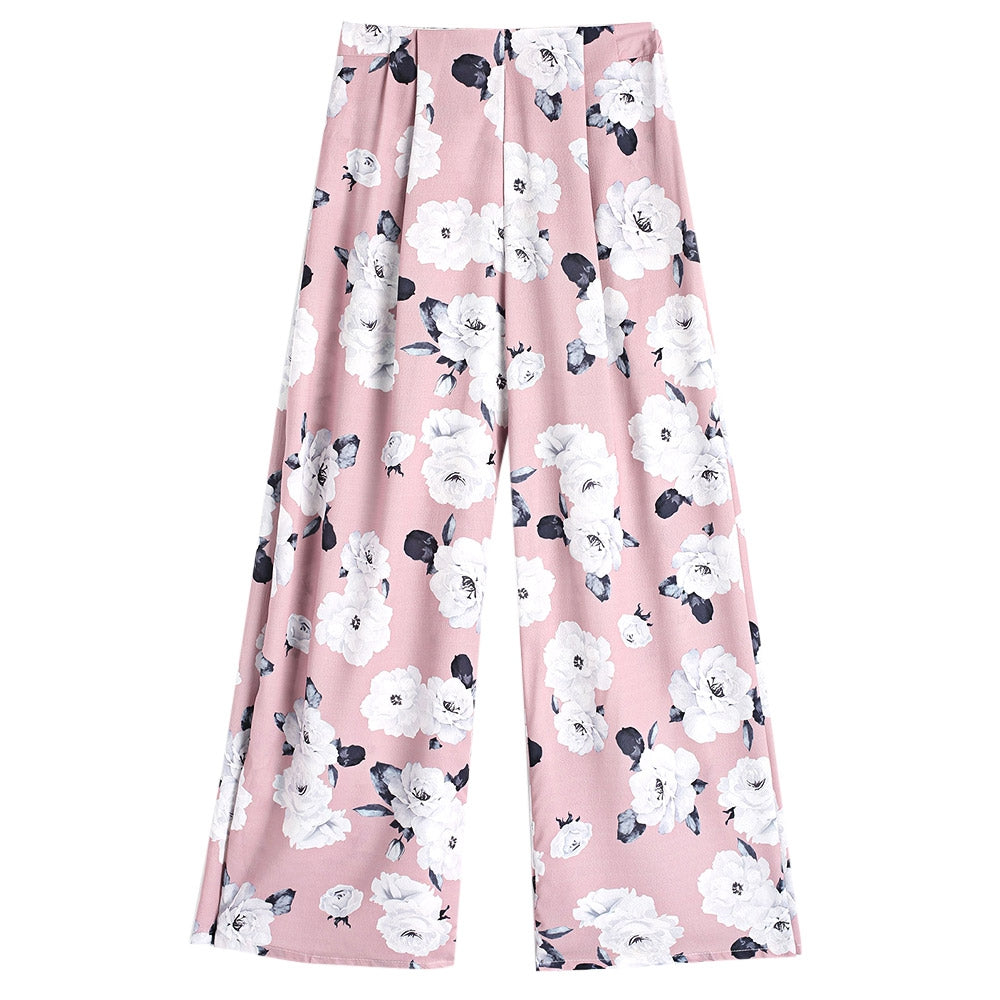 High Waist Floral Print Slit Wide-leg Loose Women Long Pants
