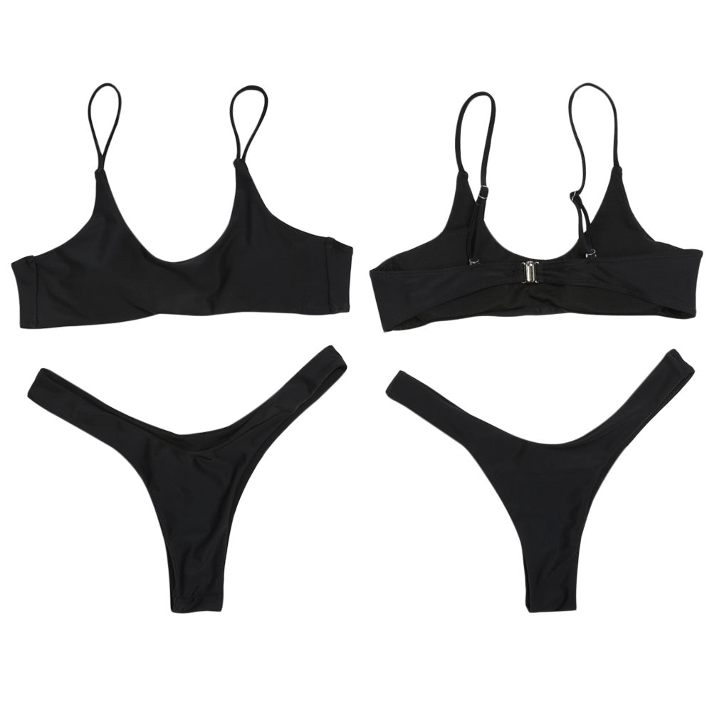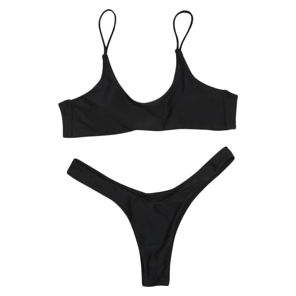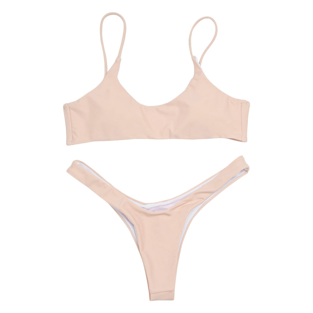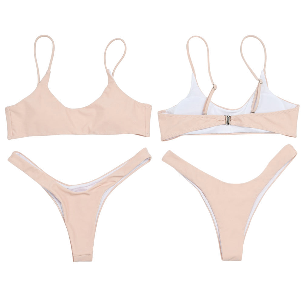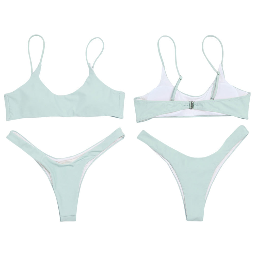 Spaghetti Strap Backless Padded Low Waist Women Bikini Set