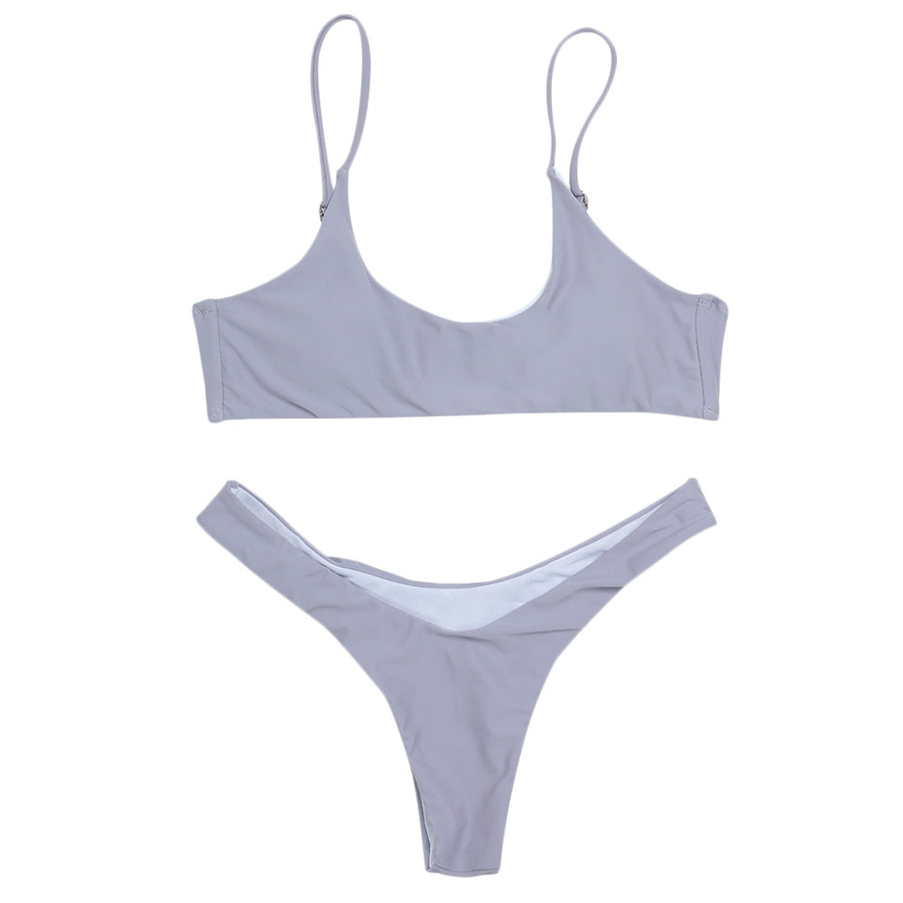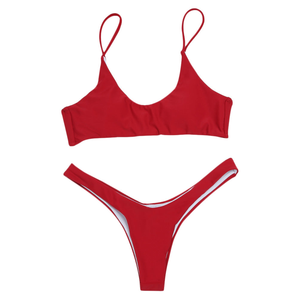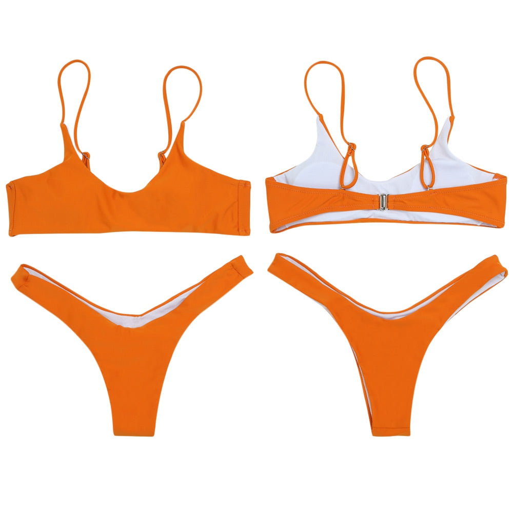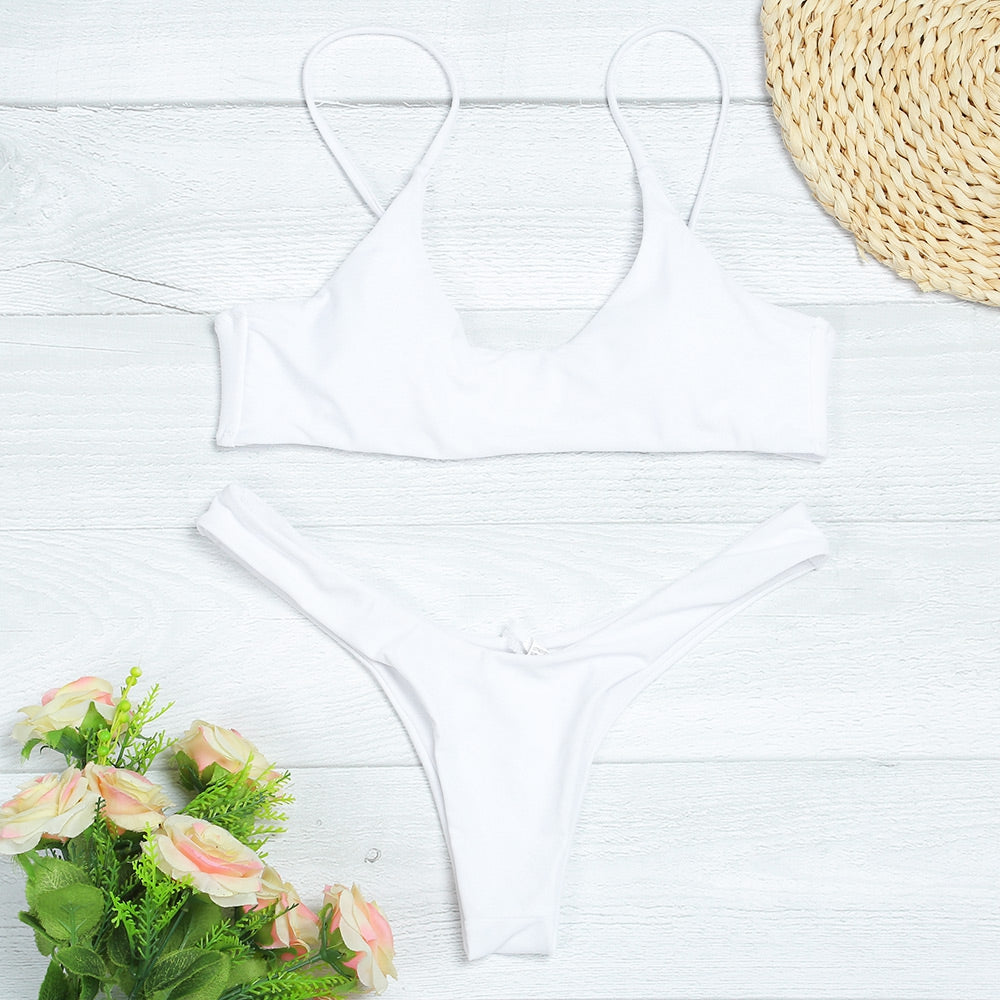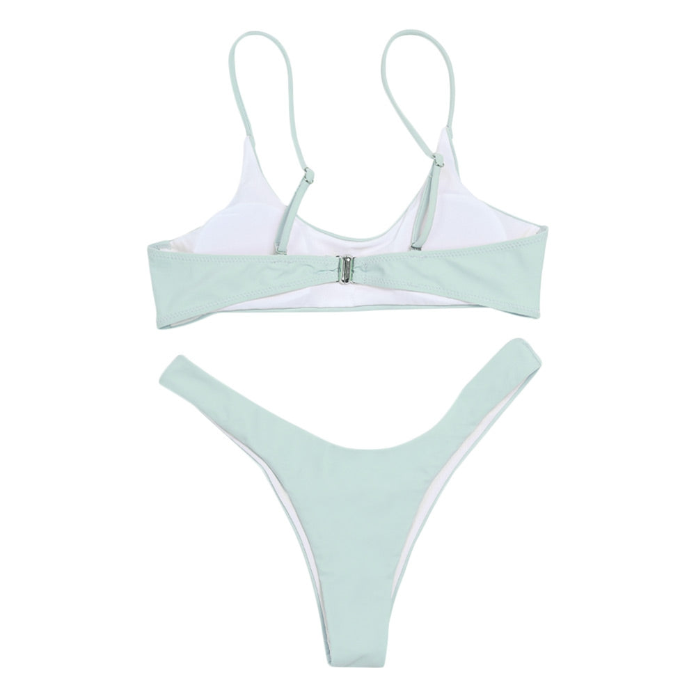 Spaghetti Strap Backless Padded Low Waist Women Bikini Set