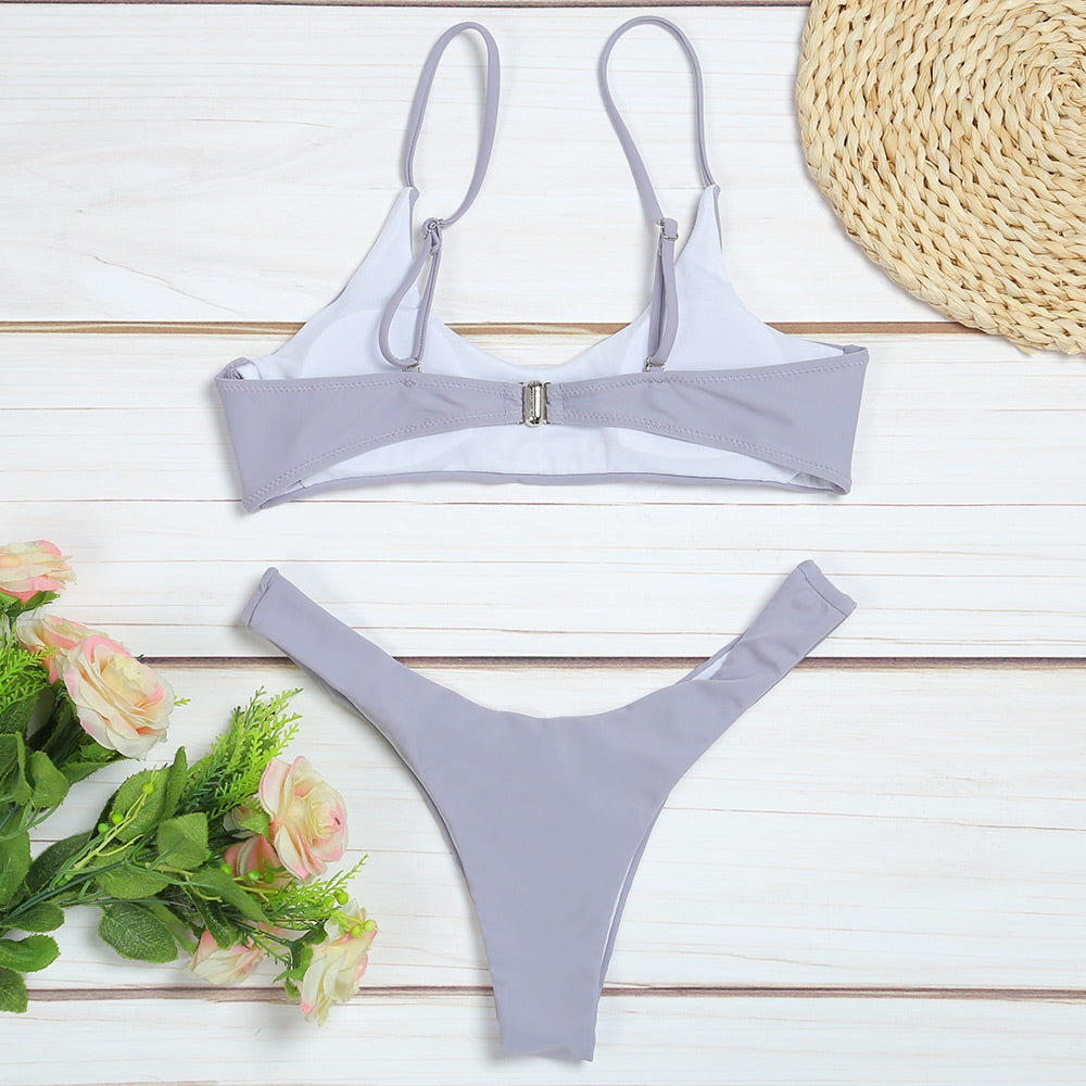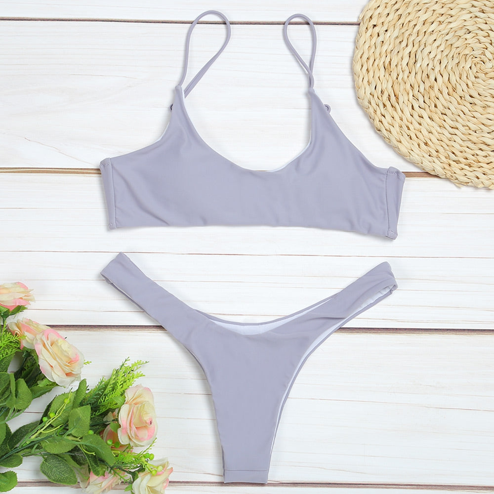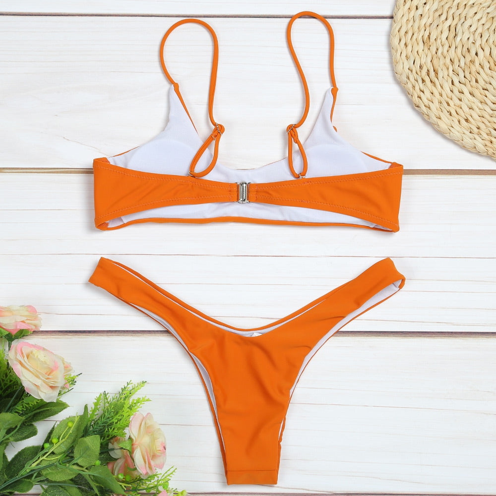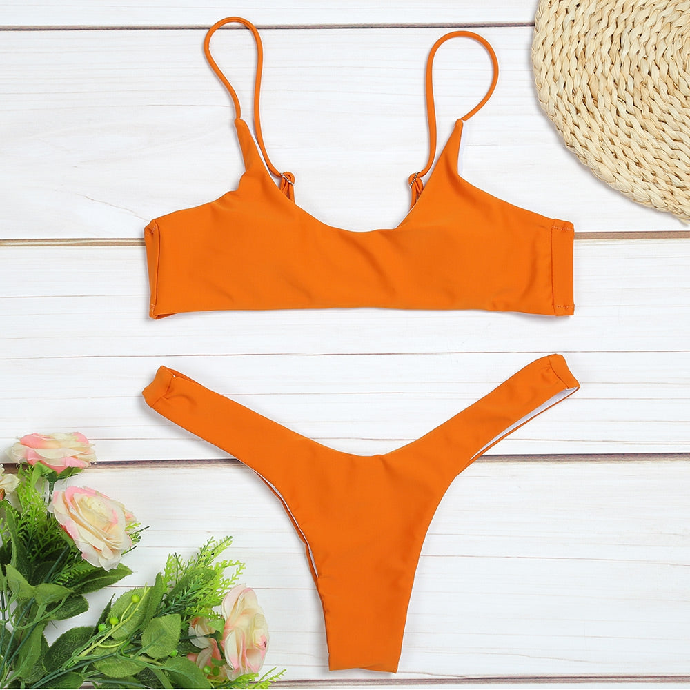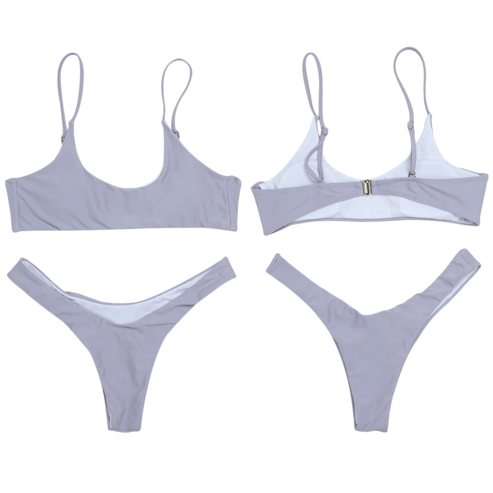 Spaghetti Strap Backless Padded Low Waist Women Bikini Set