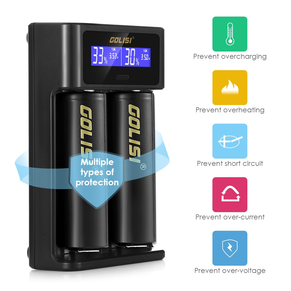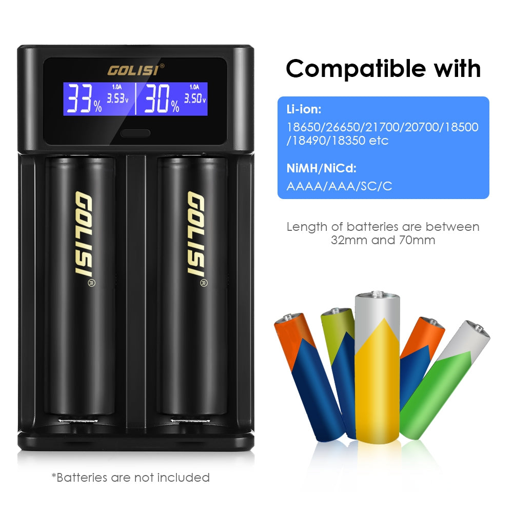 GOLISI i2 Smart Battery Charger Screen Rechargeable Lithium-ion / NiMH / NiCd