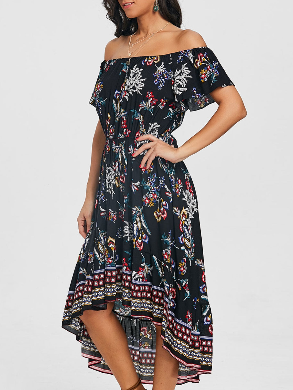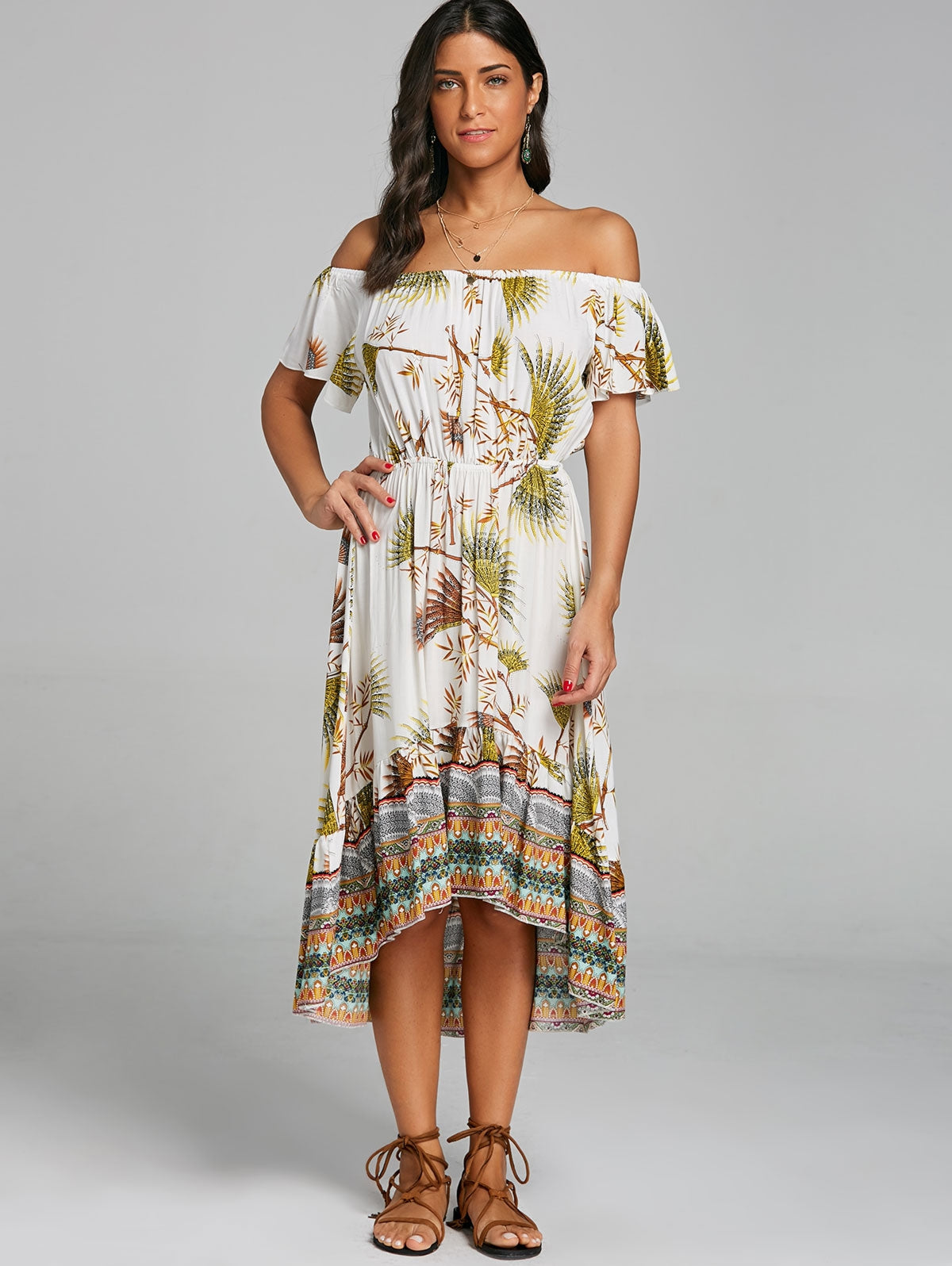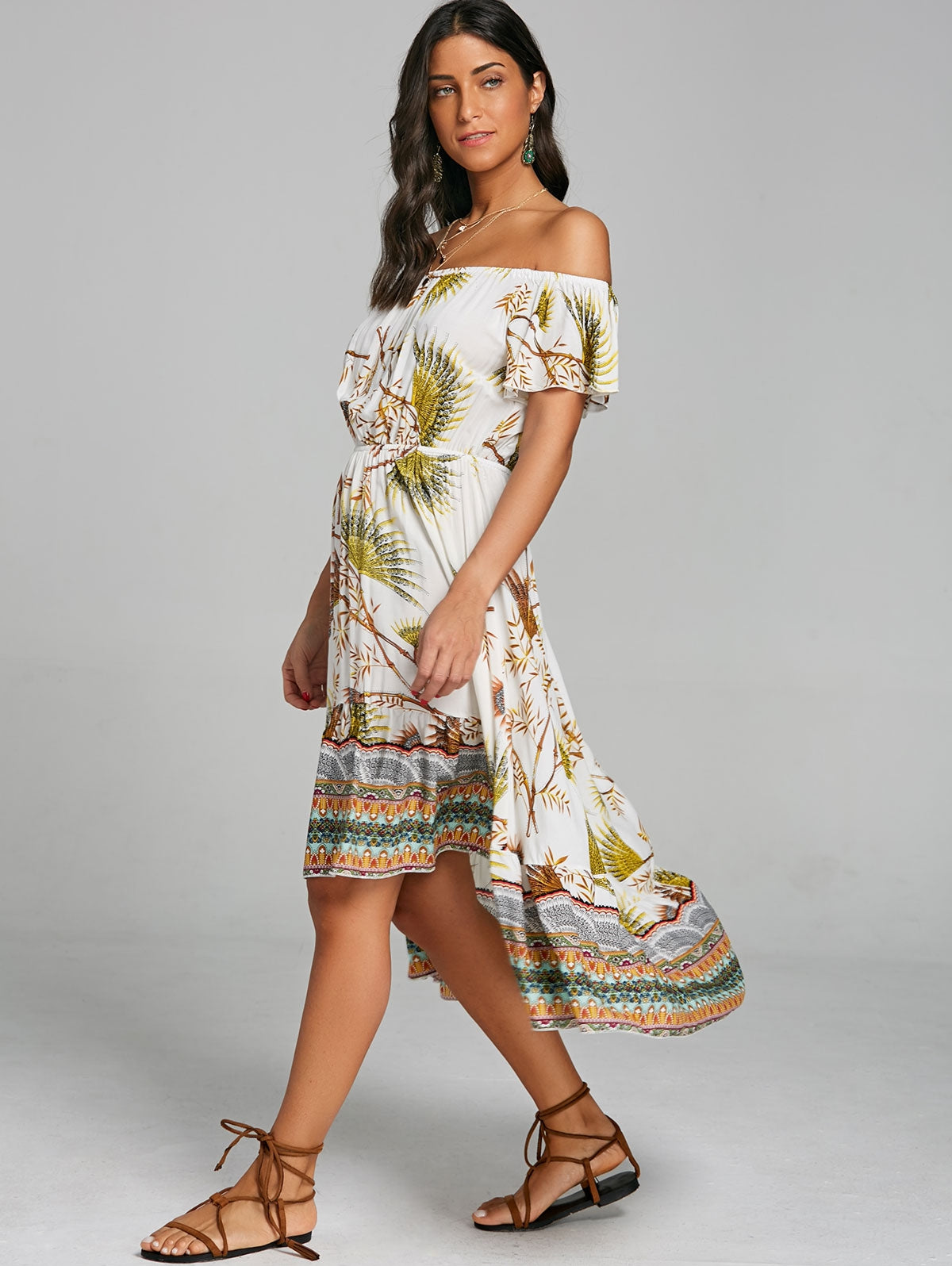 Print Off The Shoulder High Low Dress