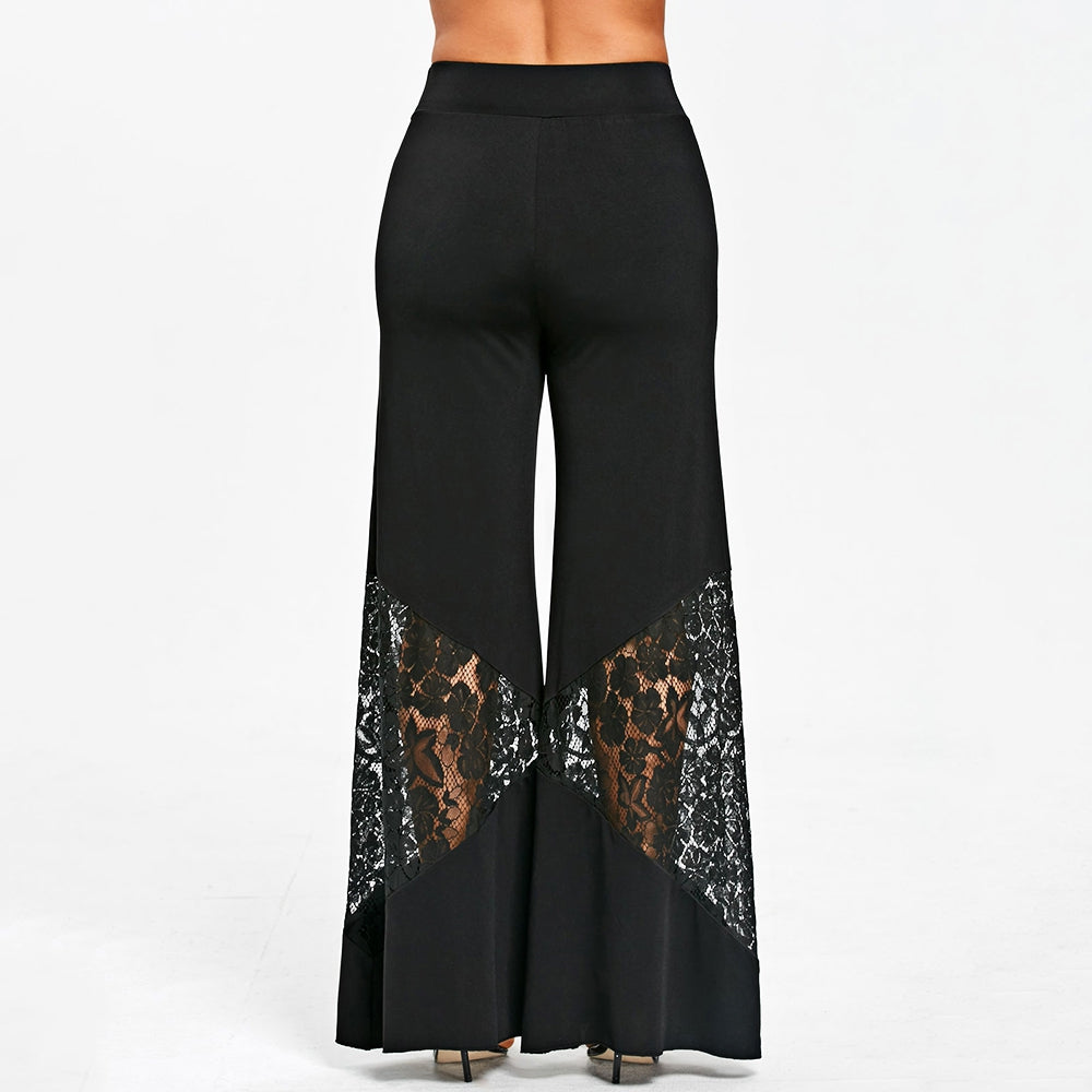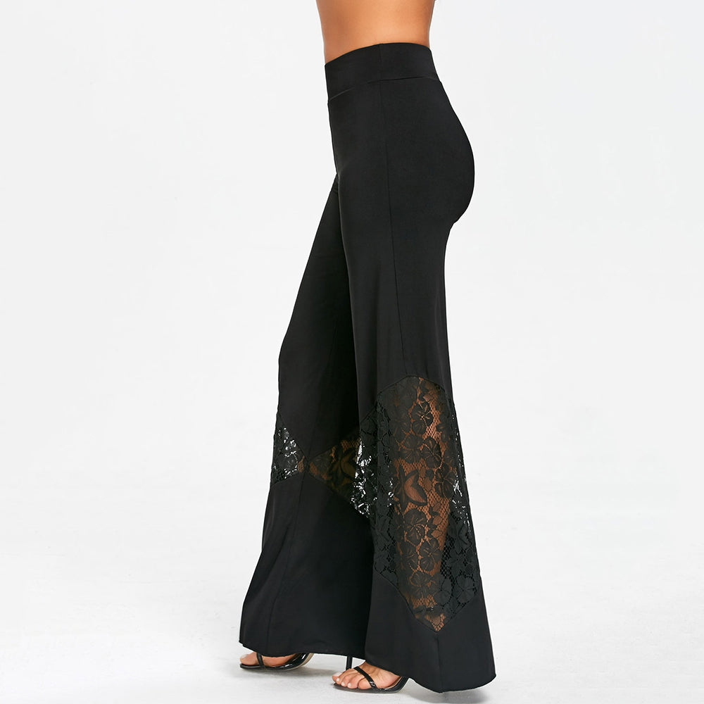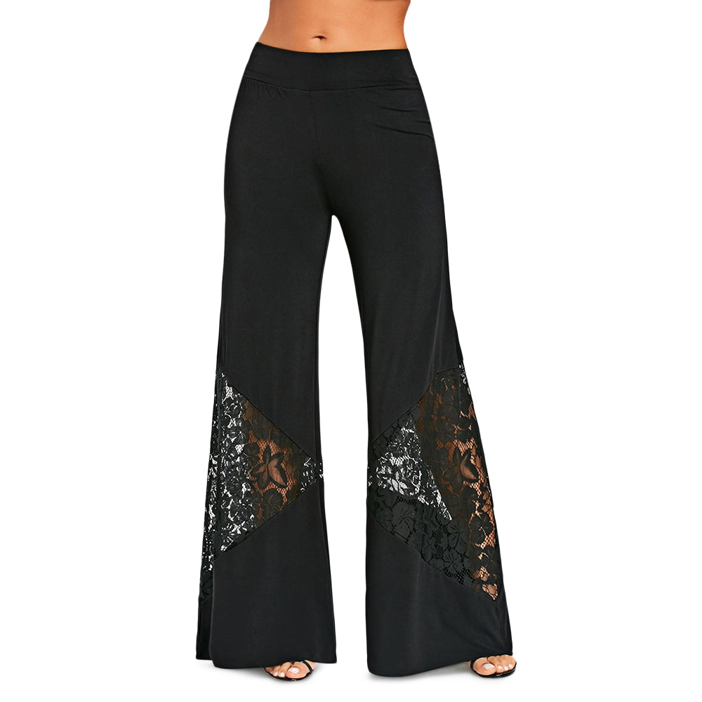 The casual wide leg pants feature openwork lace panel design to cut into an angle shape. This wide legged silhouette can make you feel cozy to wear in your daily time.