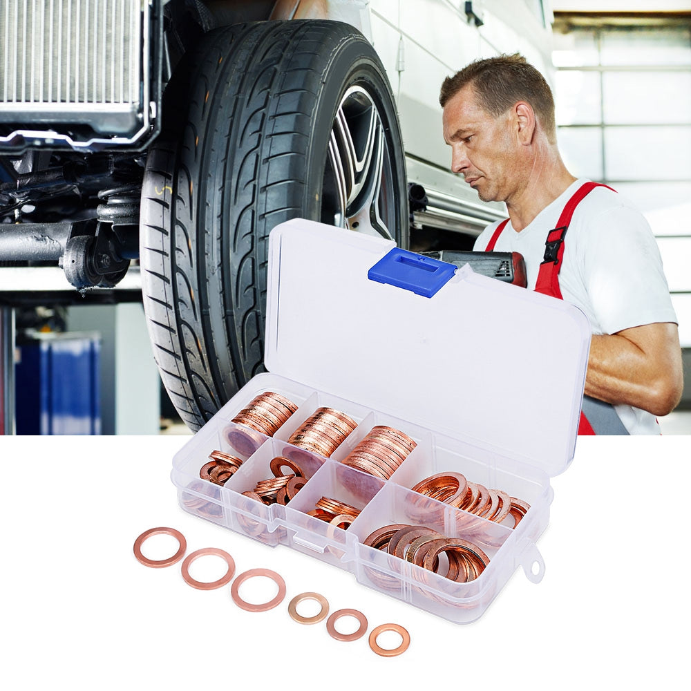 120pcs Solid Copper Washers Flat Ring Sump Plug Oil Seal