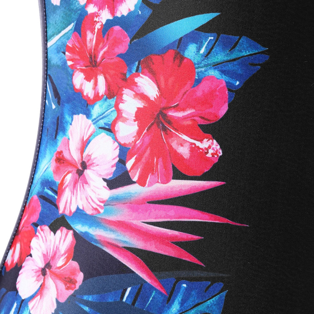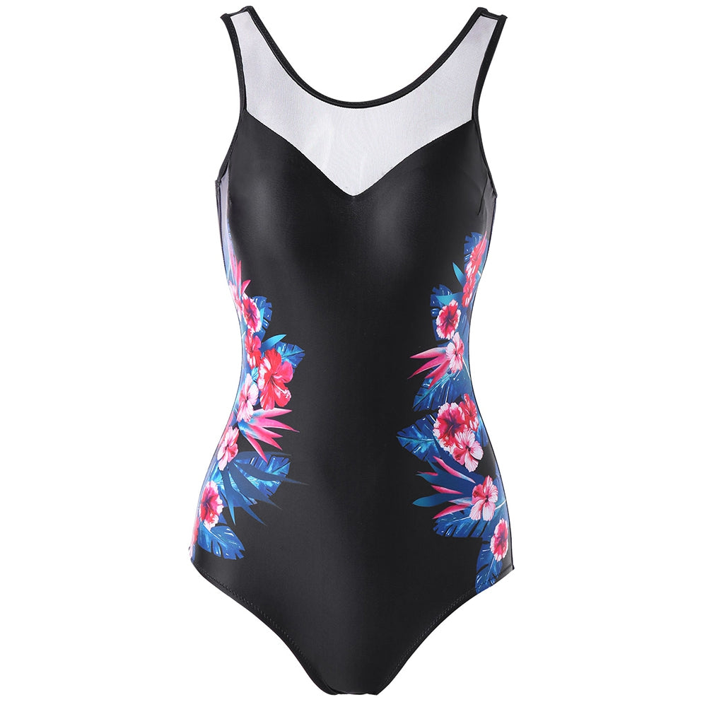 The scoop neck mesh one-piece swimsuit is feminine and elegant. The flower print around your waist flatters your figure, while the open back design and trendy mesh inserts offer the perfect amount of coverage. Its soft cup bra construction provides ultimate comfort and support.