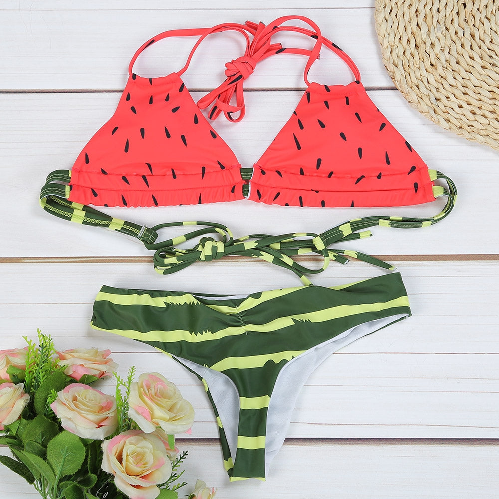 Sexy Women Swimsuit Lace Up Swimwear Halter Bikini Set