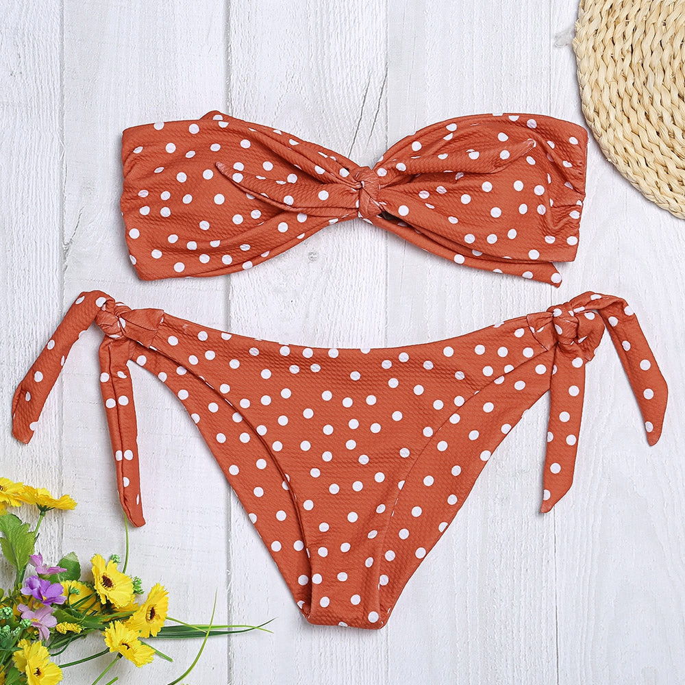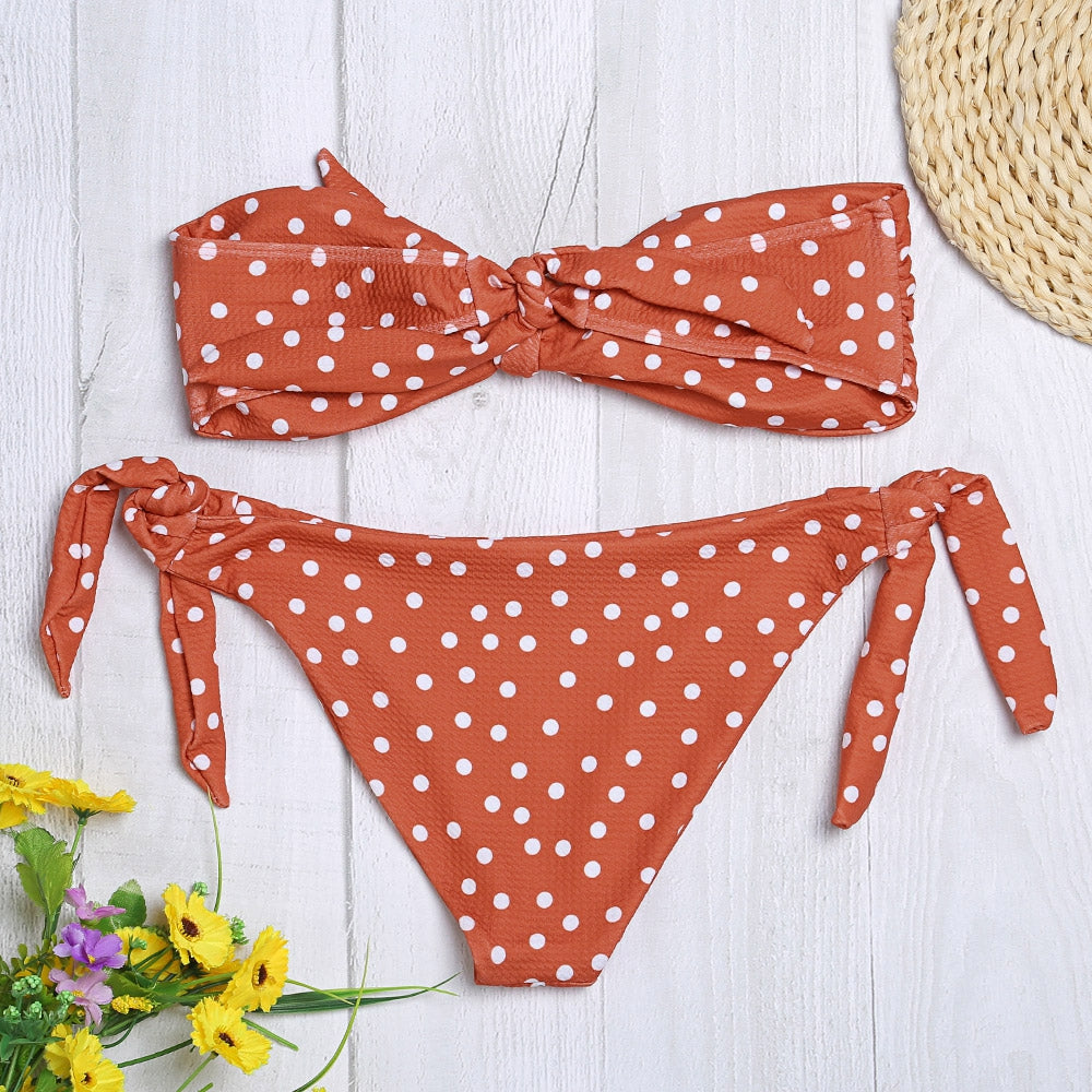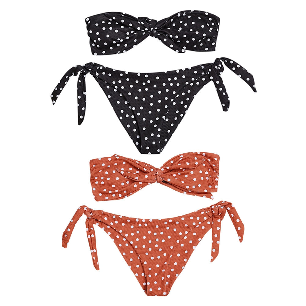 Sexy Strapless Padded Polka Dot Low Waist Women Bikini Set