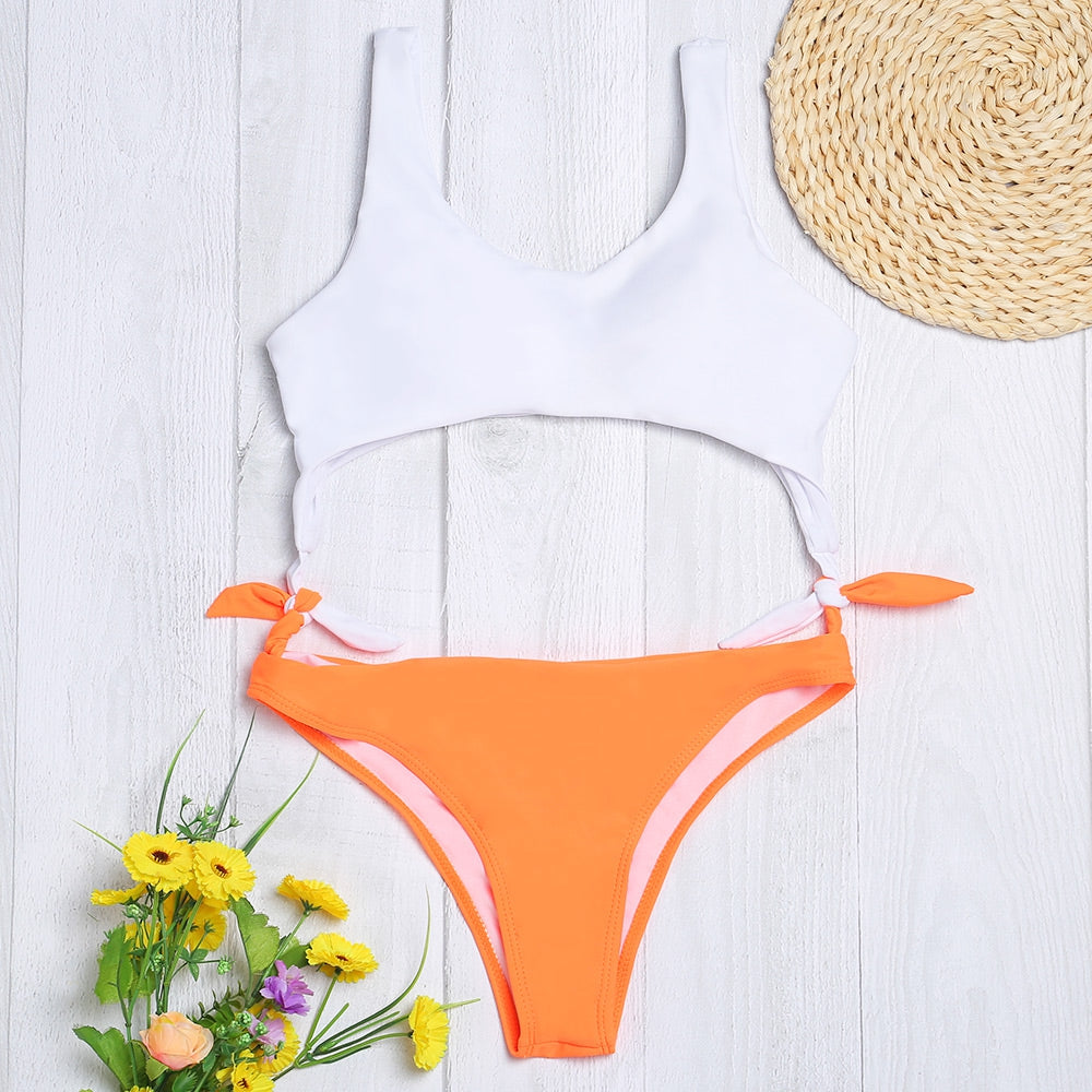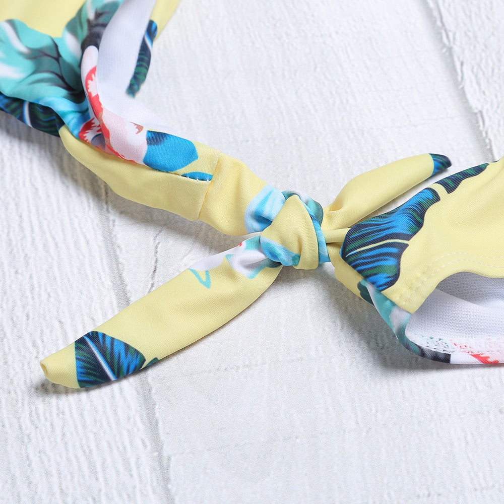 Shoulder Strap Backless Padded Tied Women Swimsuit