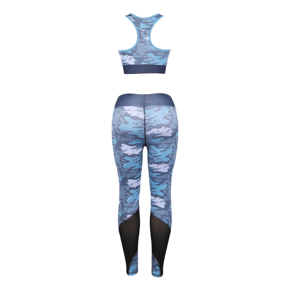 Round Collar Print Spliced Mesh Mid Waist Women Sports Suit