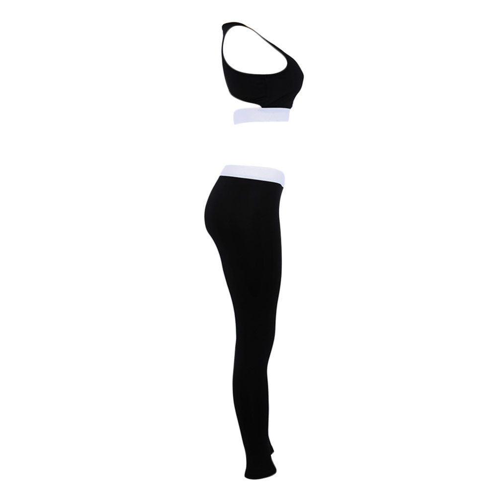 Round Collar Cut Out Stripe Mid Waist Women Sports Suit