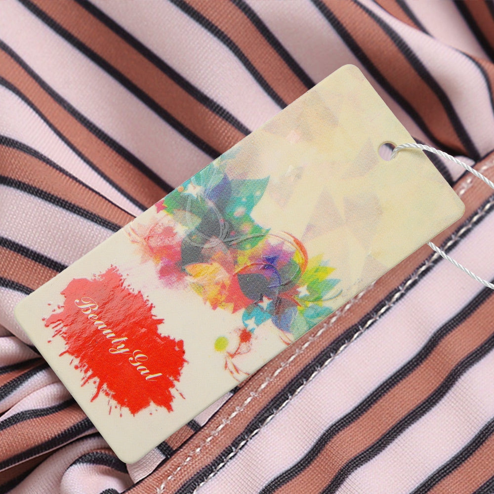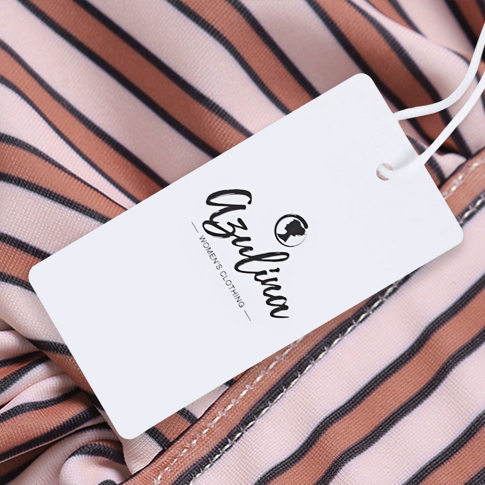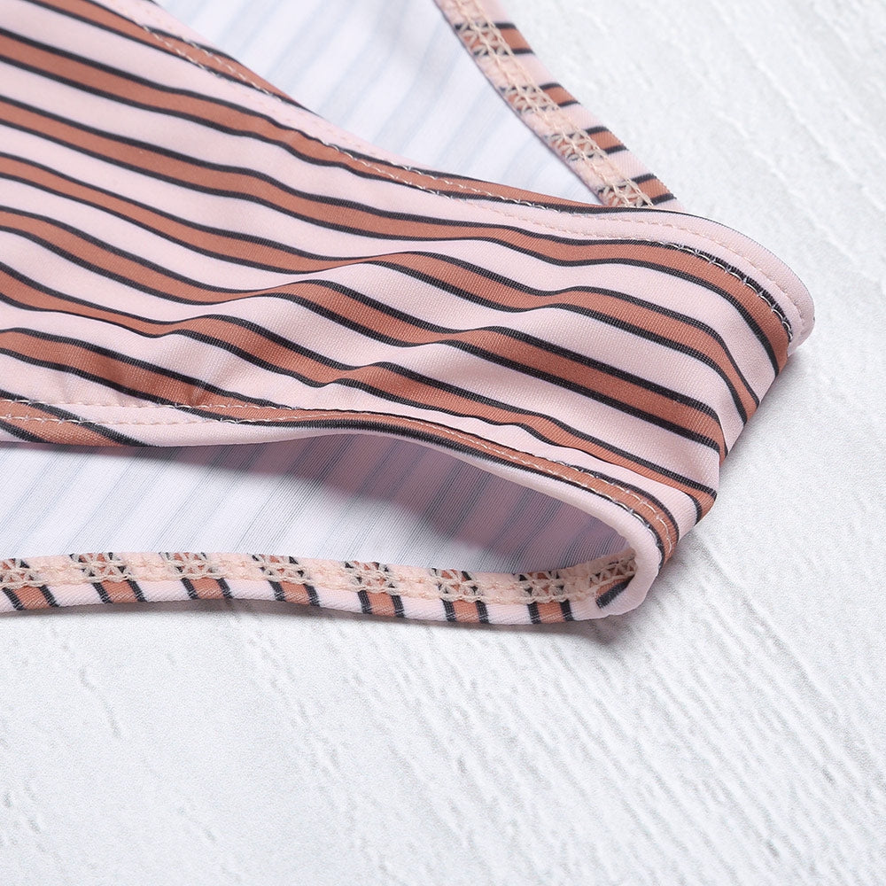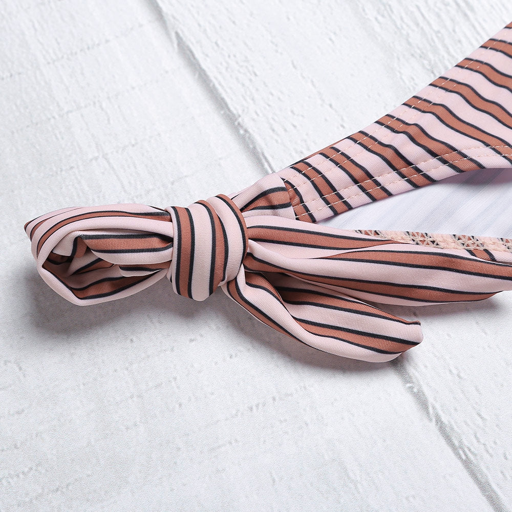 Get everyone's undivided attention on the beach with the stripe bikini.