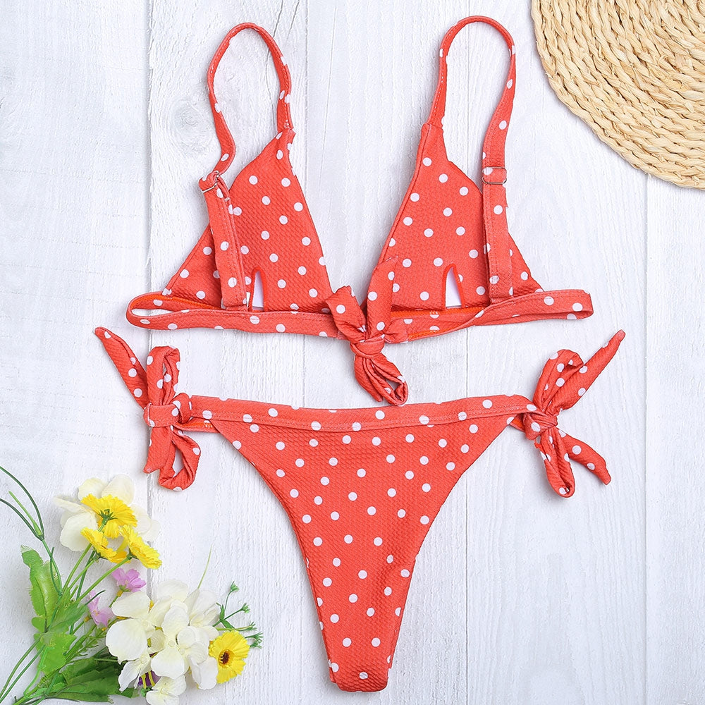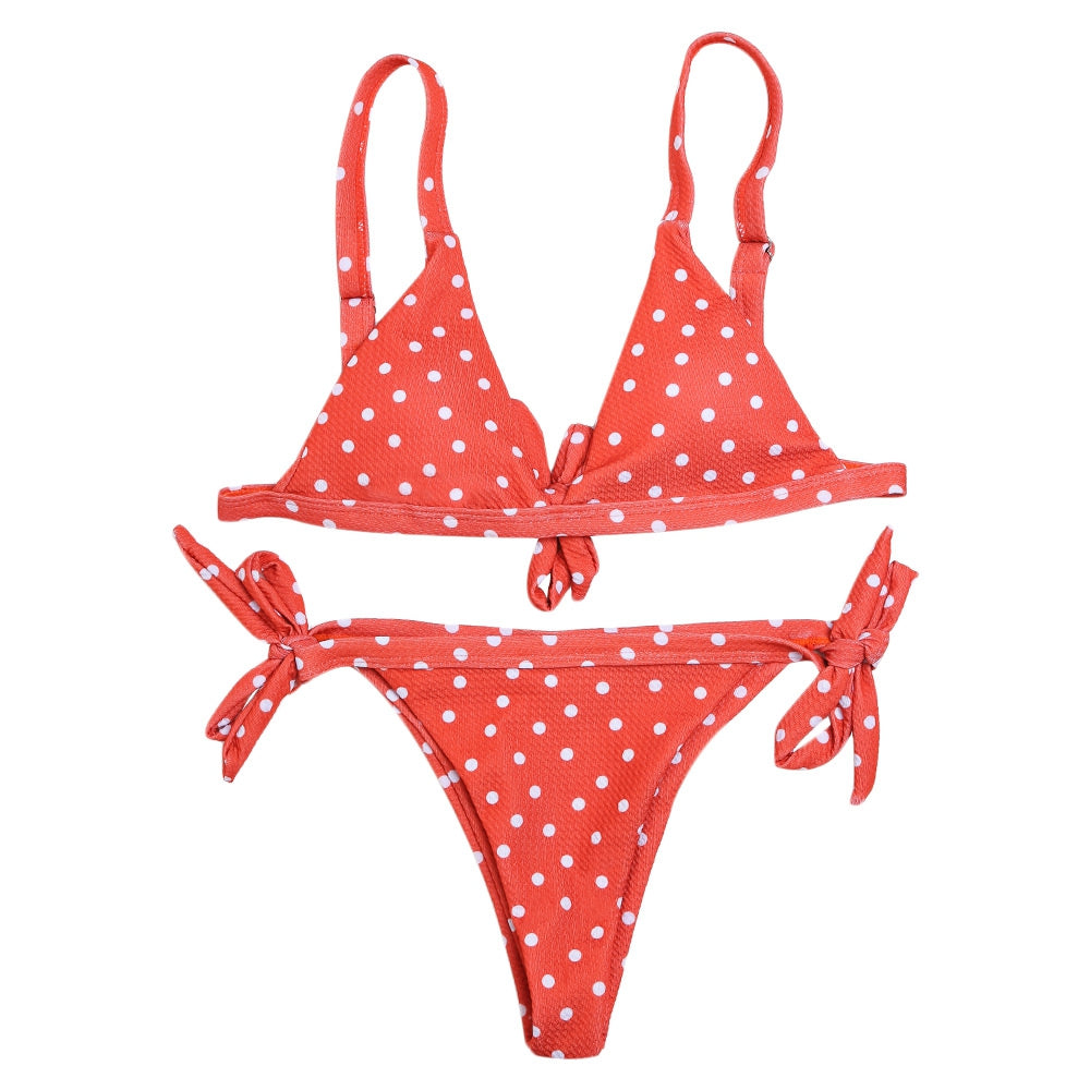Spaghetti Strap Padded Polka Dot Low Waist Women Bikini Set
