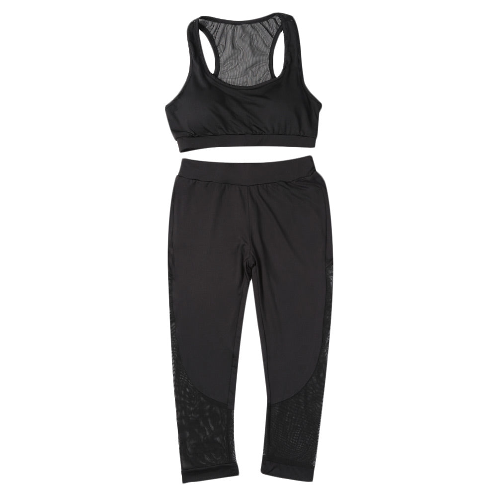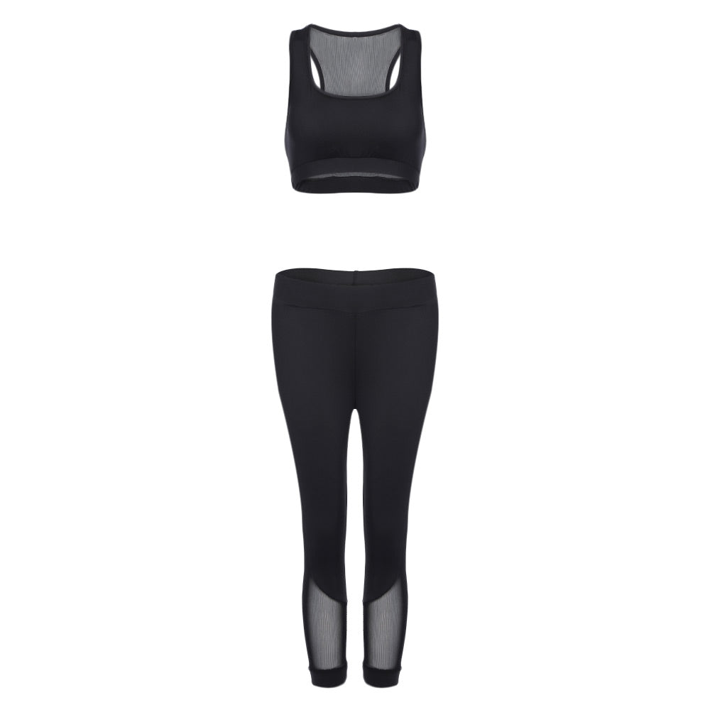 Trendy Round Collar Padded Spliced Mesh Women Sports Suit