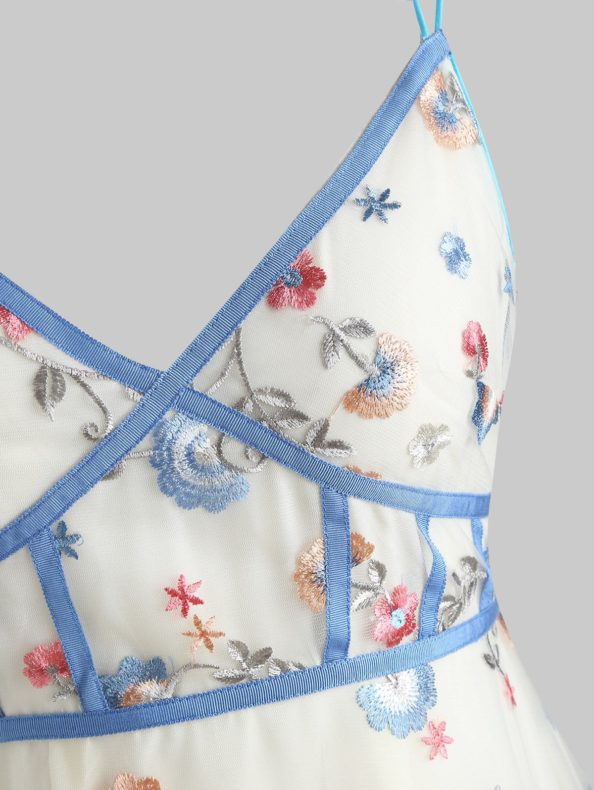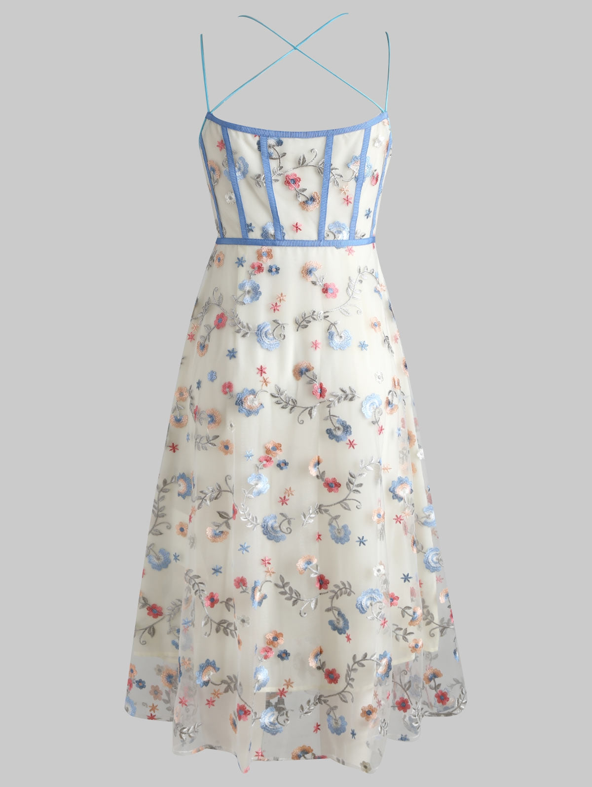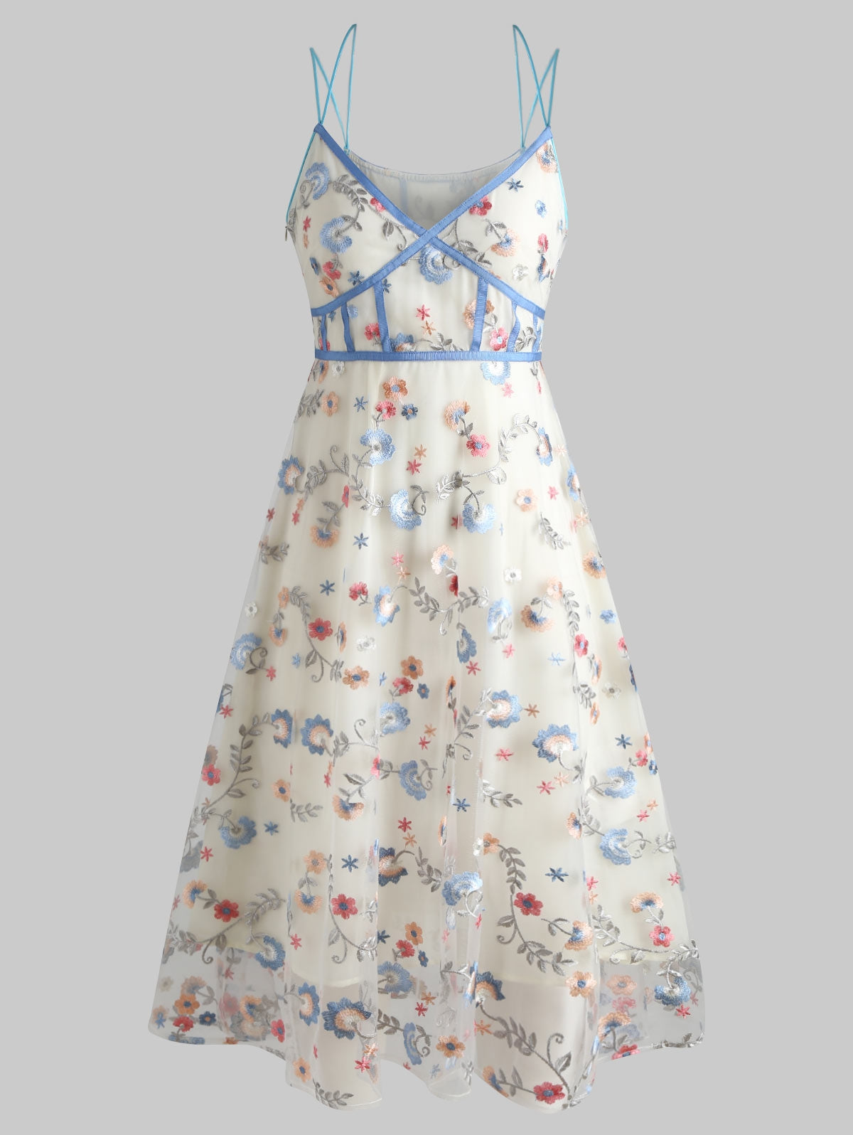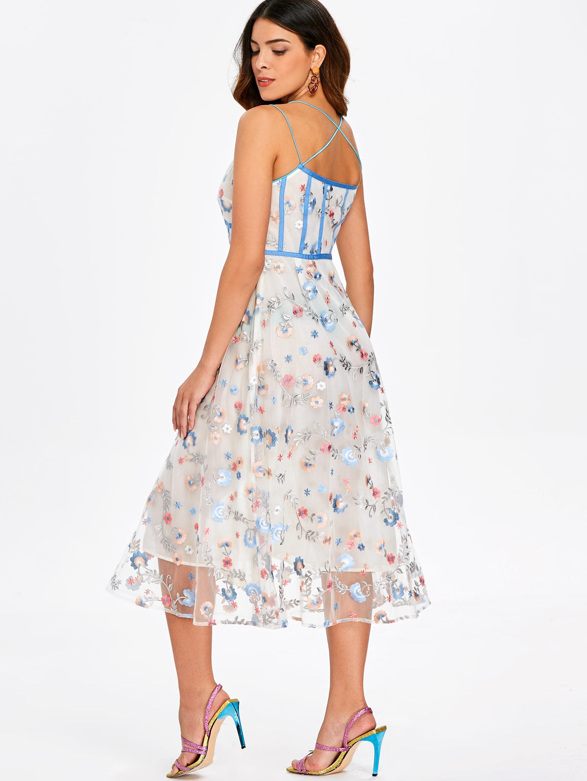 Spaghetti Strap Embroidered Midi Dress