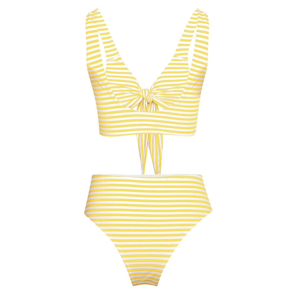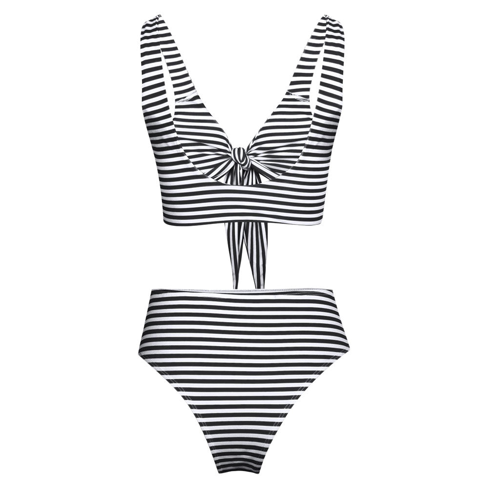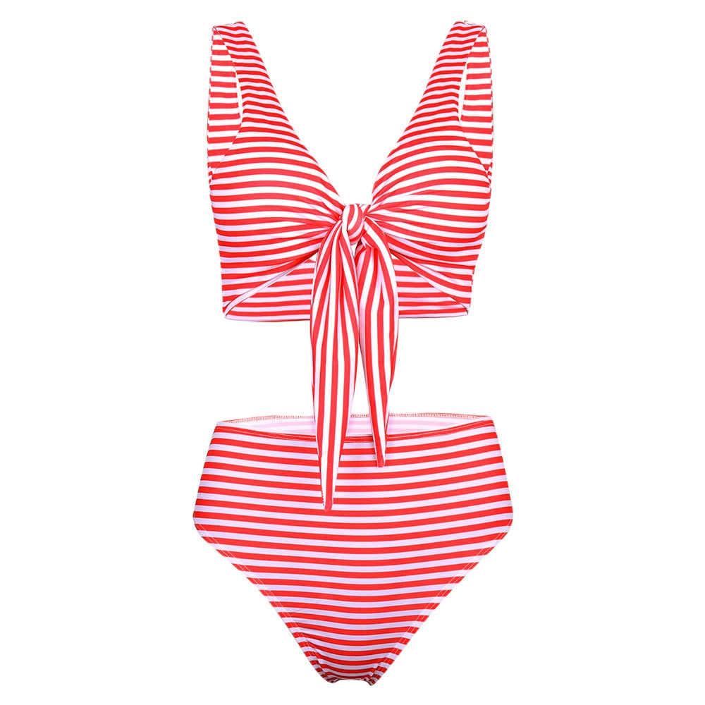 Plunge Neck Padded Stripe High Waist Women Bikini Set
