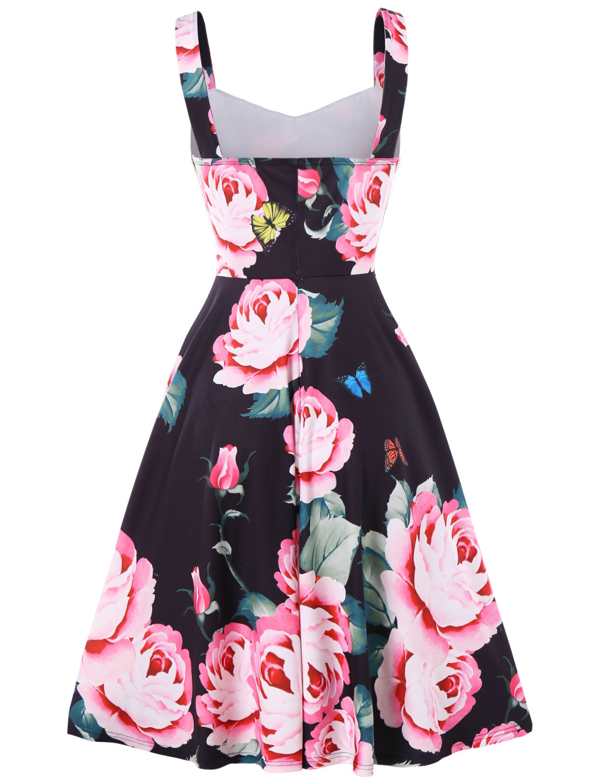 Sweetheart Neck Floral Print Fit and Flare Dress