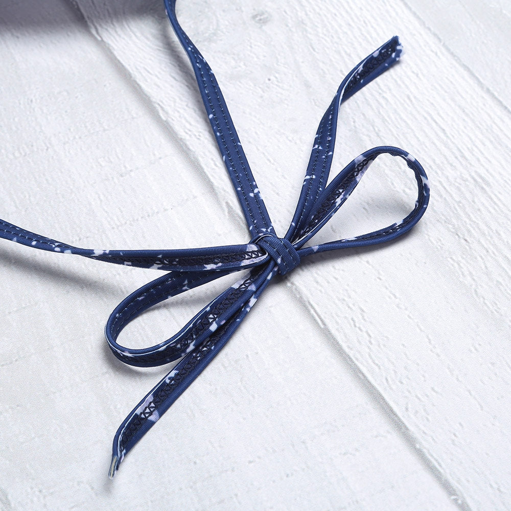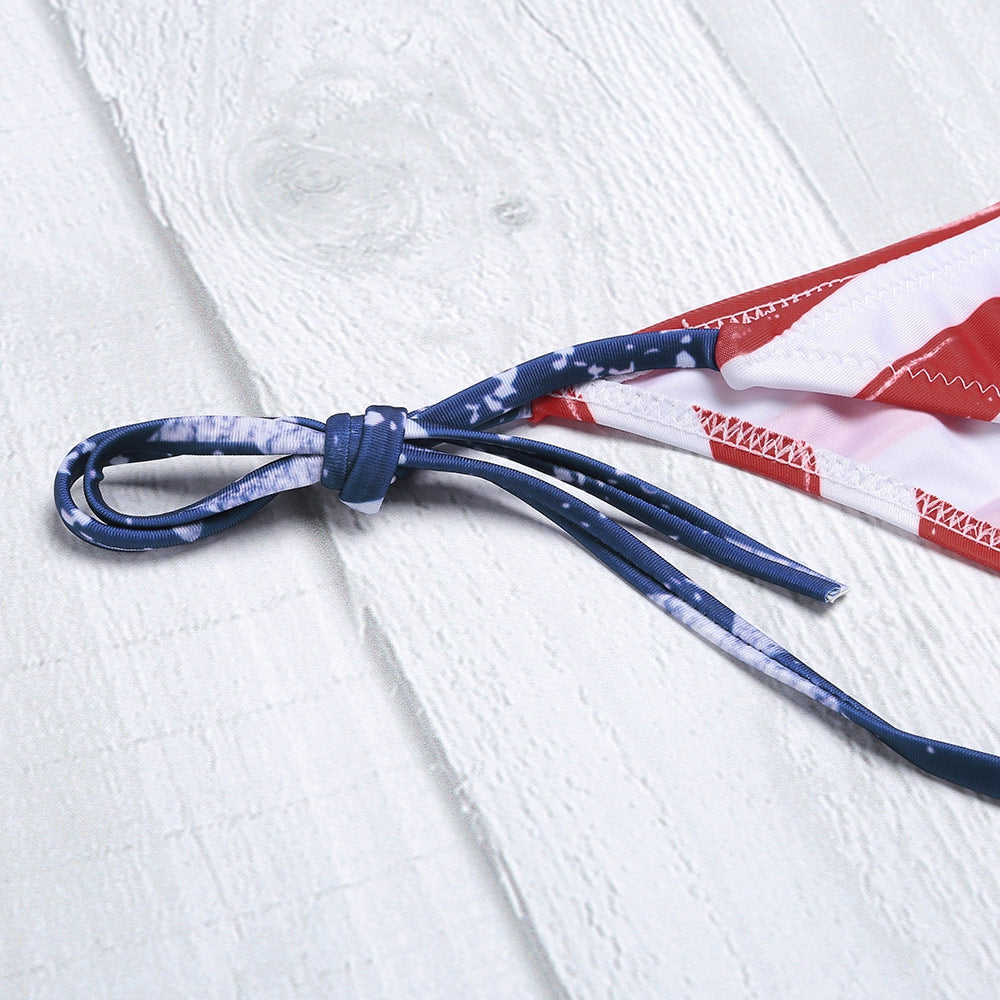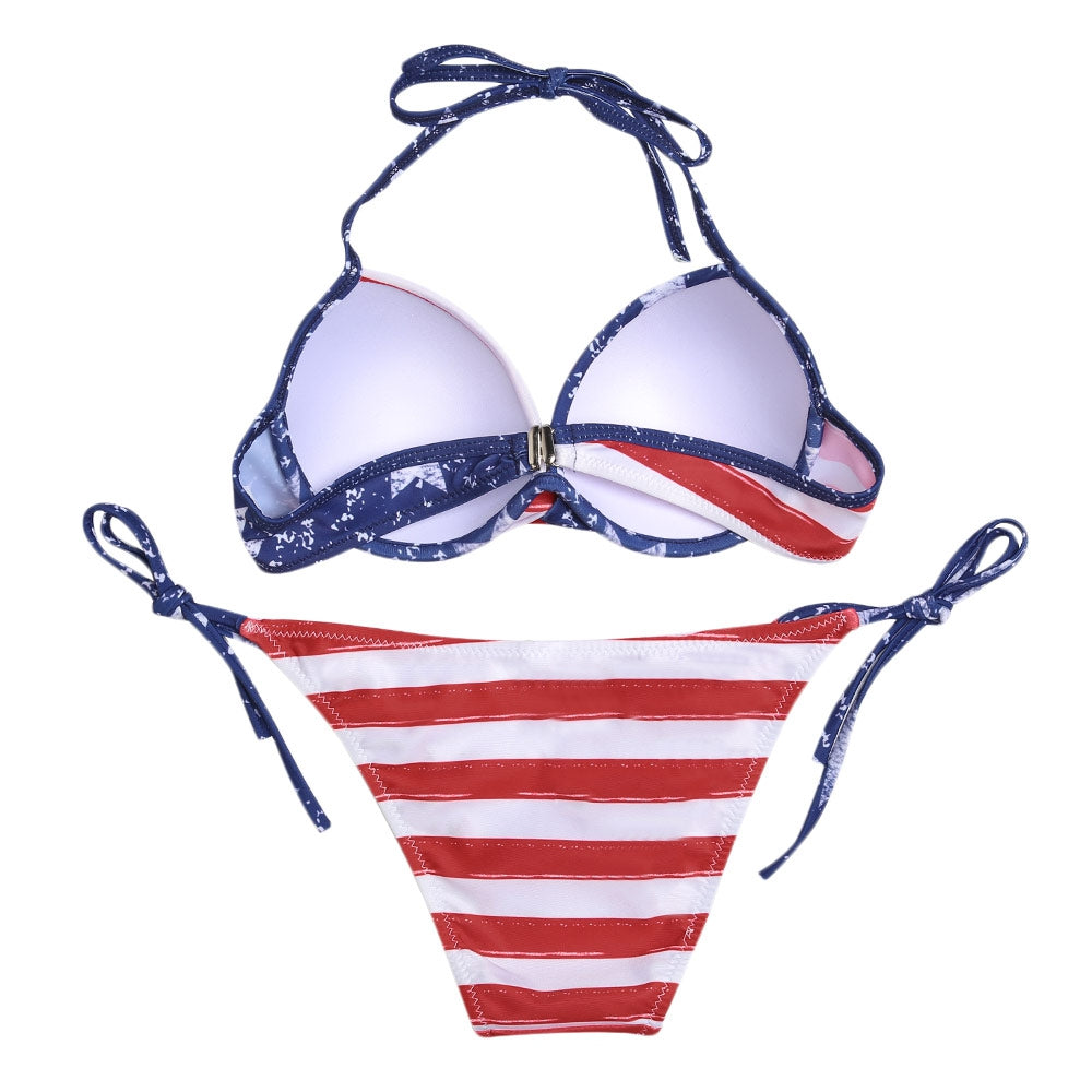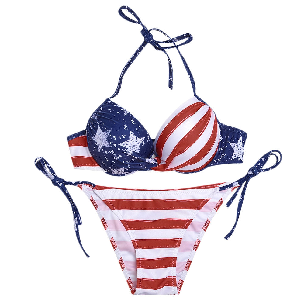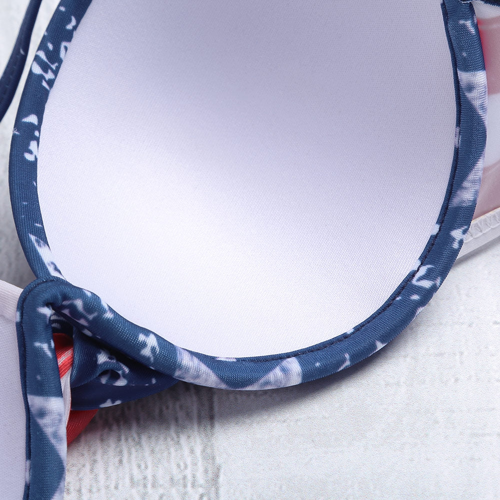Halter Neck Backless Padded Underwire Print Low Waist Women Bikini Set