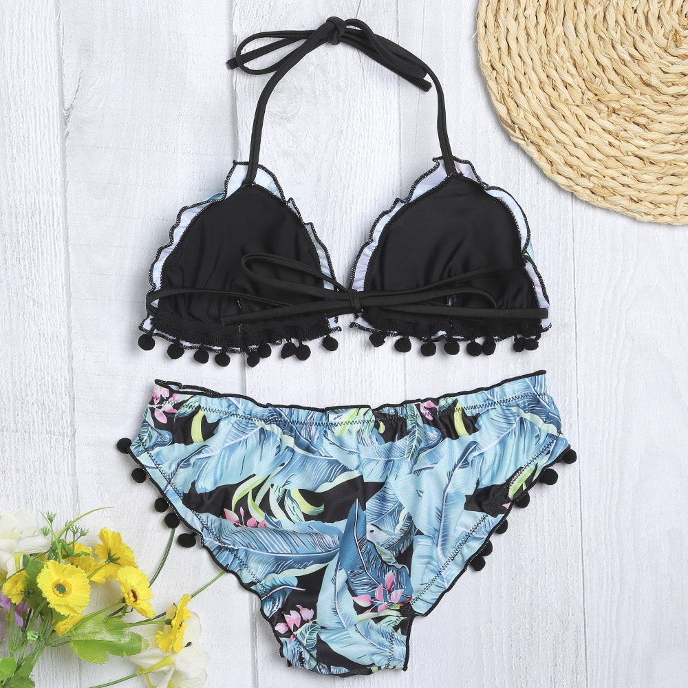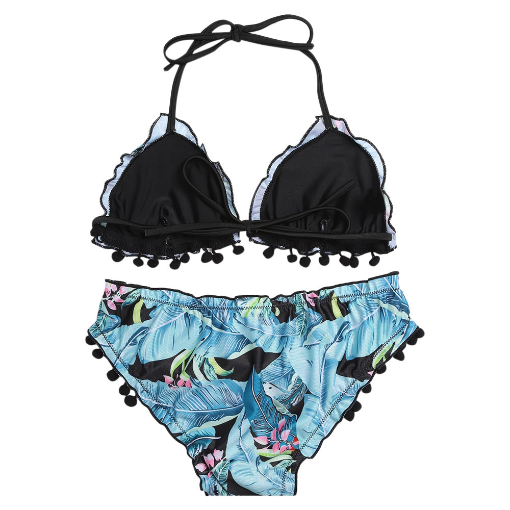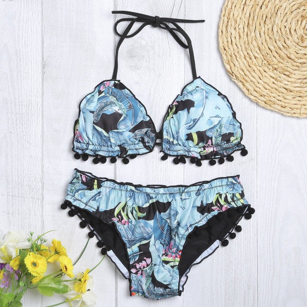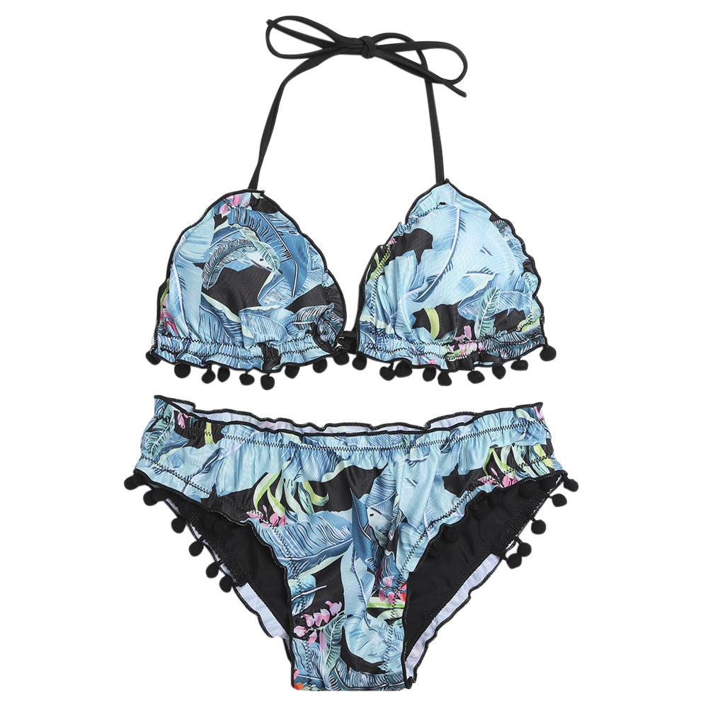 Sexy Halter Neck Backless Padded Floral Print Low Waist Women Bikini Set