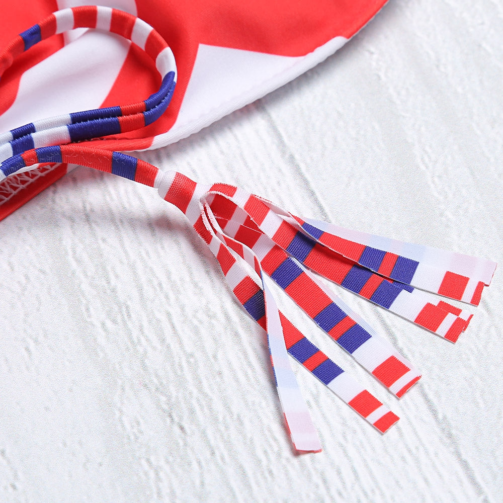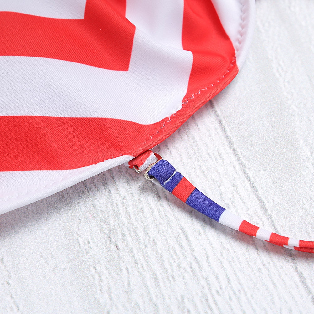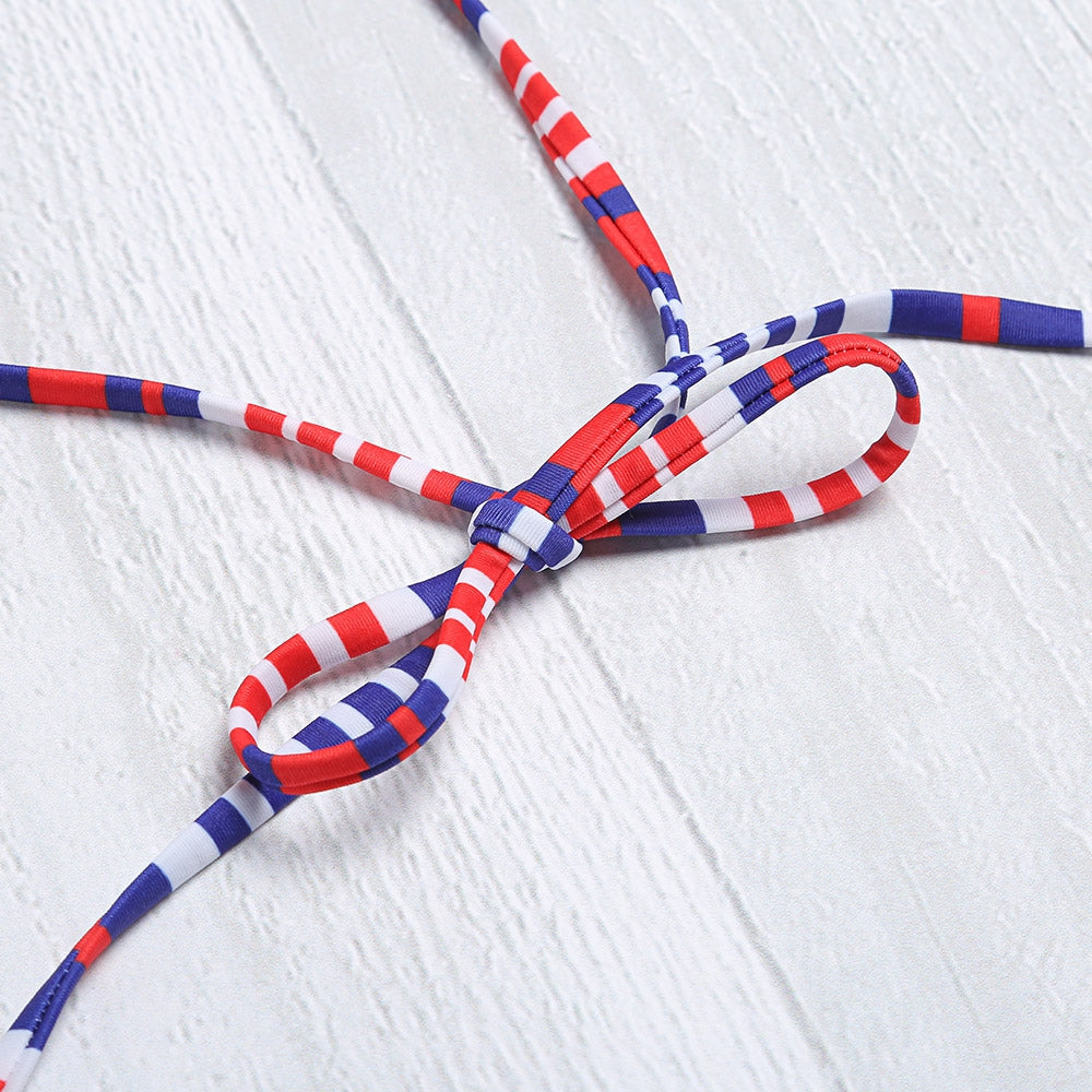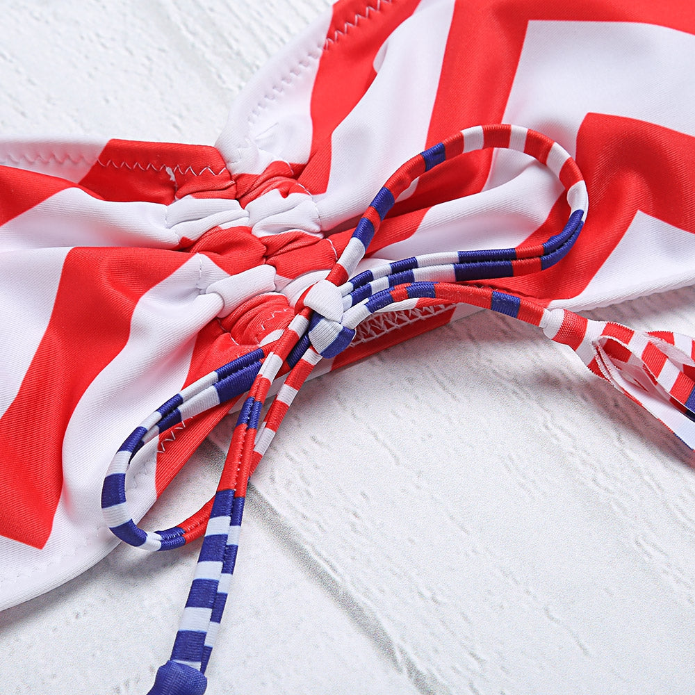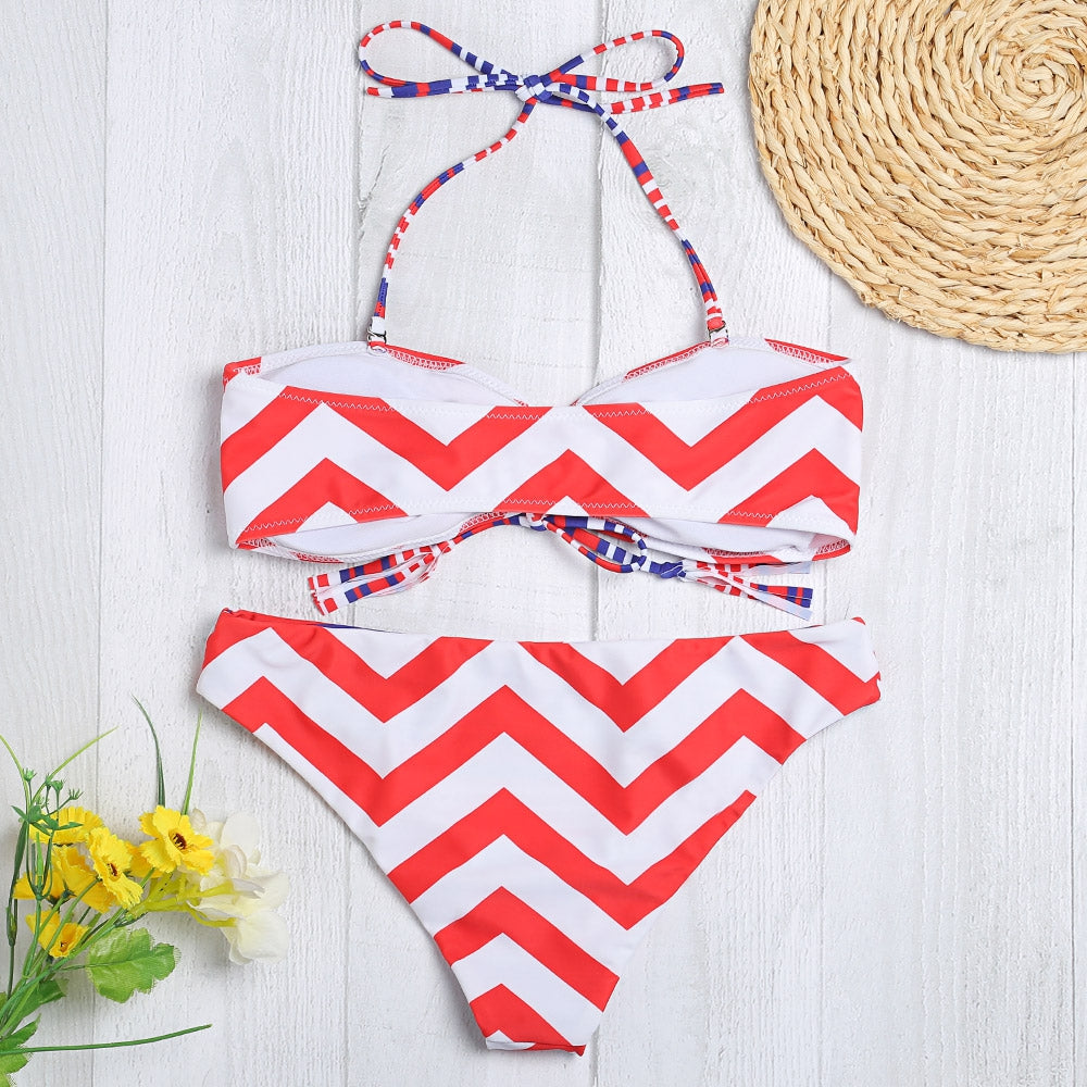 Halter Neck Backless Padded Chevron Stripe Low Waist Women Bikini Set