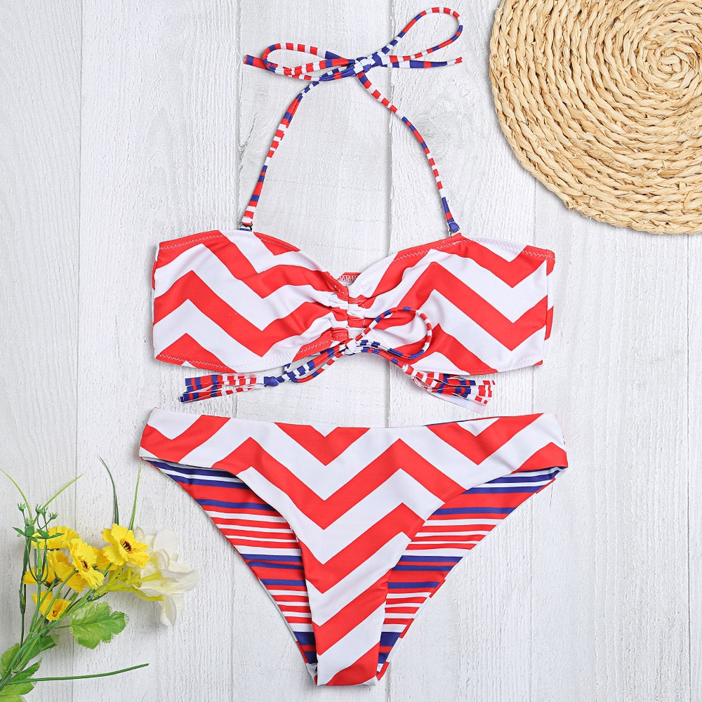 Get everyone's undivided attention on the beach with the chevron stripe bikini.