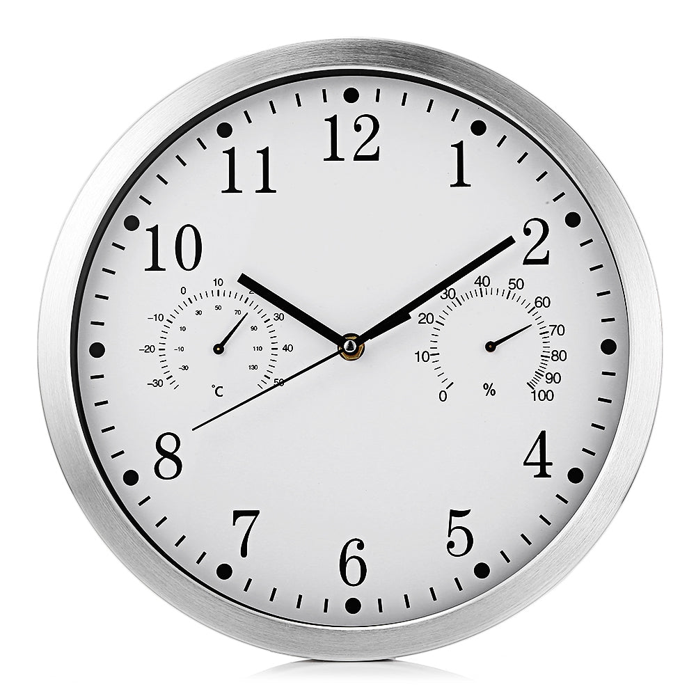 Timelike IH - 6708TH Silent Wall Metal Clock Thermometer Hygrometer Art Decor