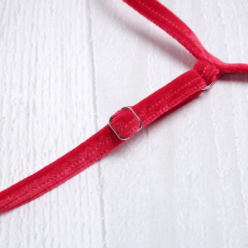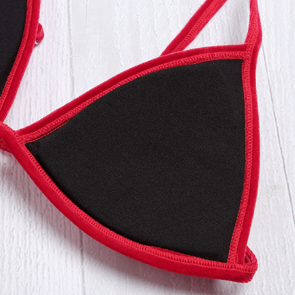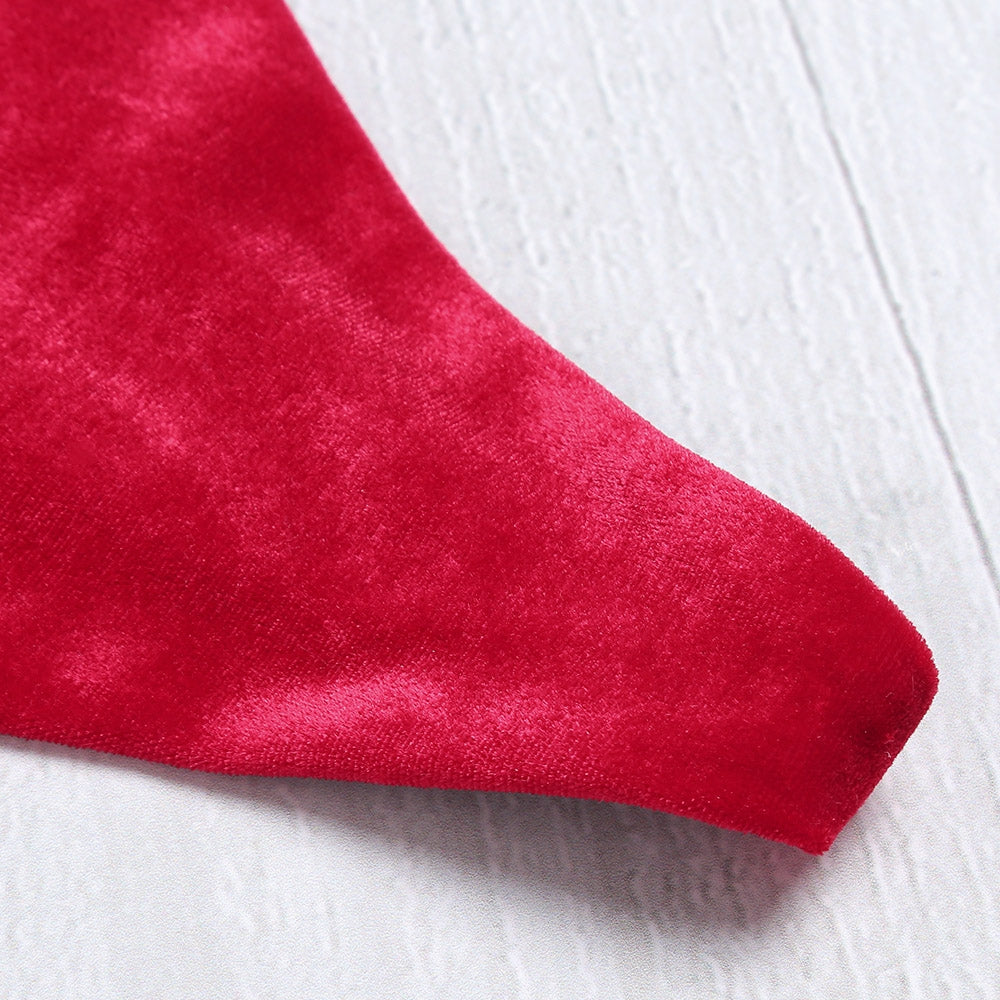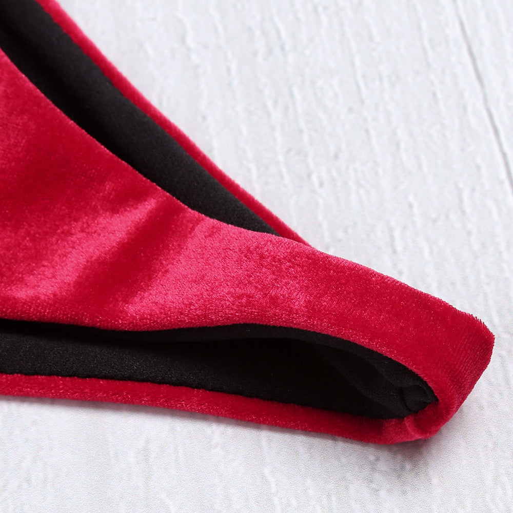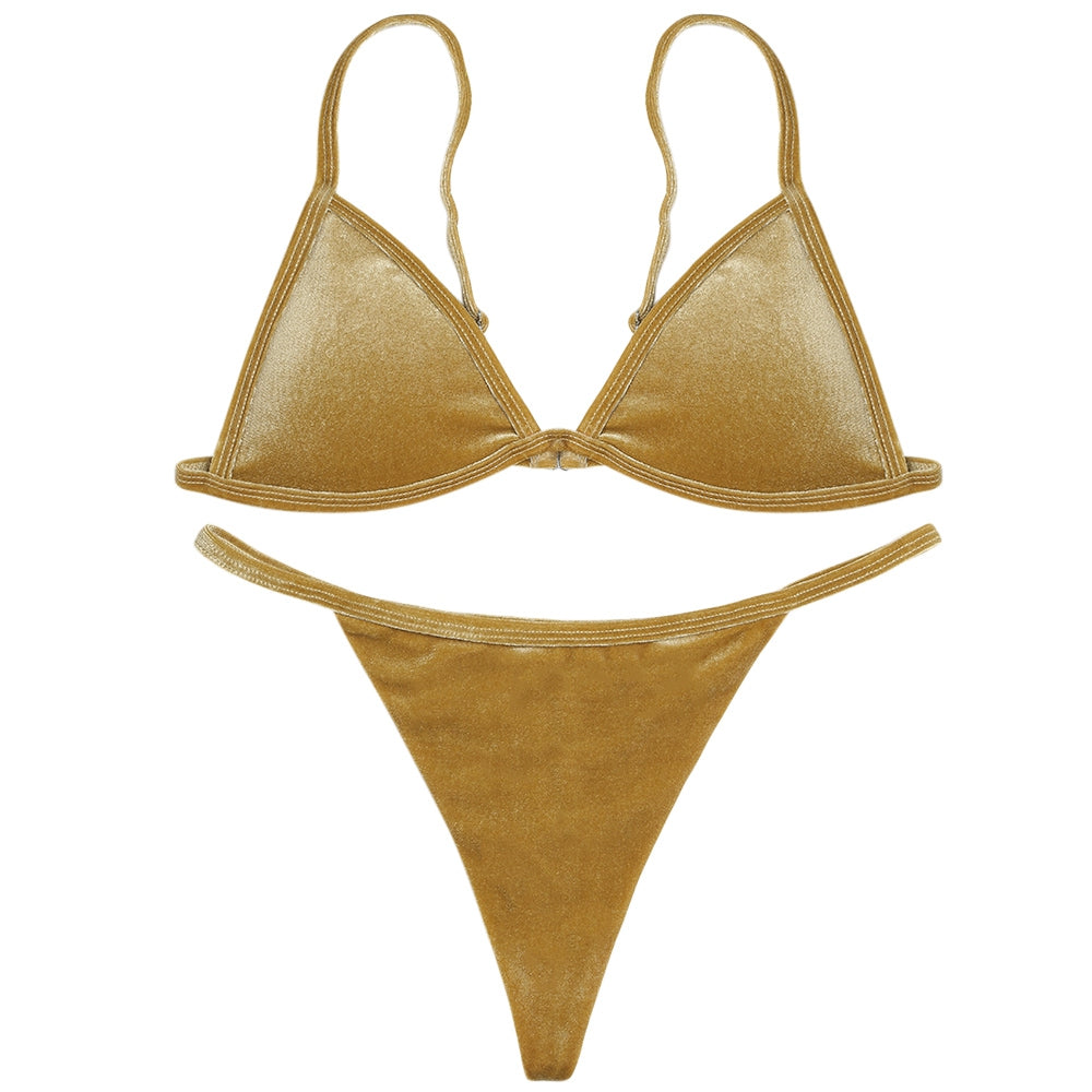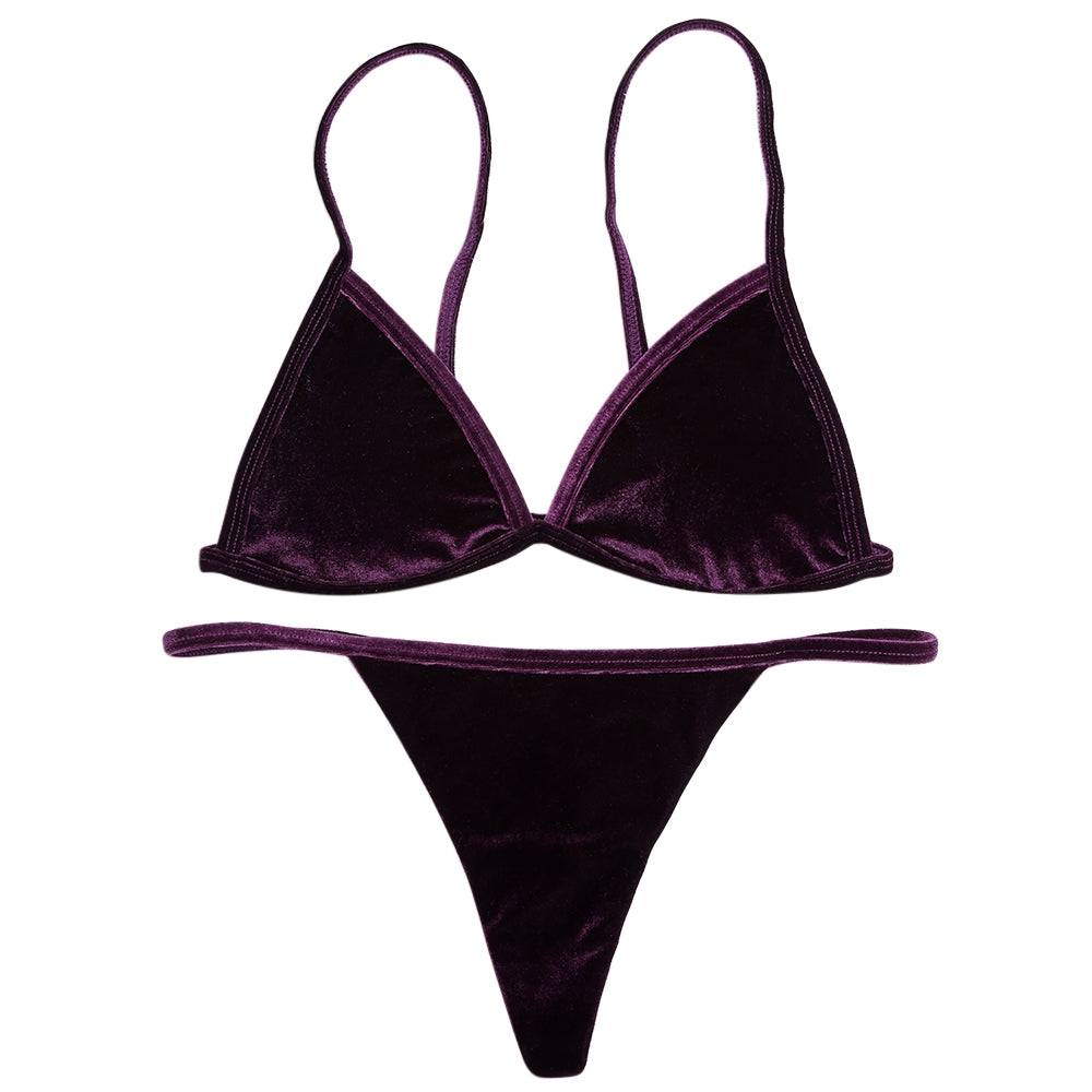 Spaghetti Strap Padded Backless Low Waist Velour Women Bikini Set