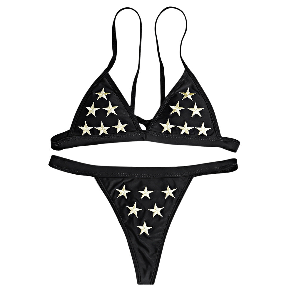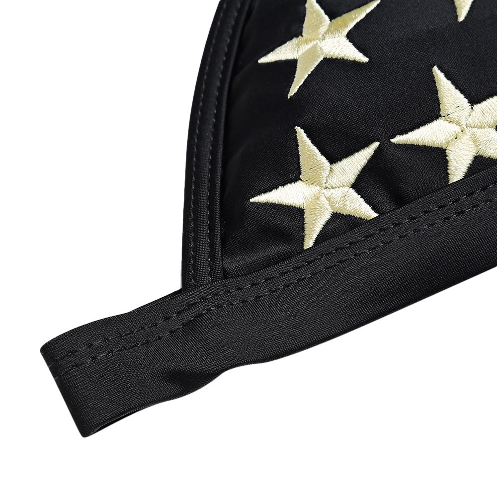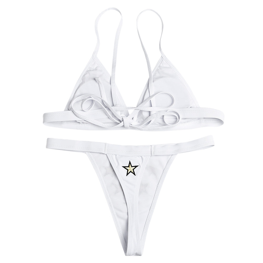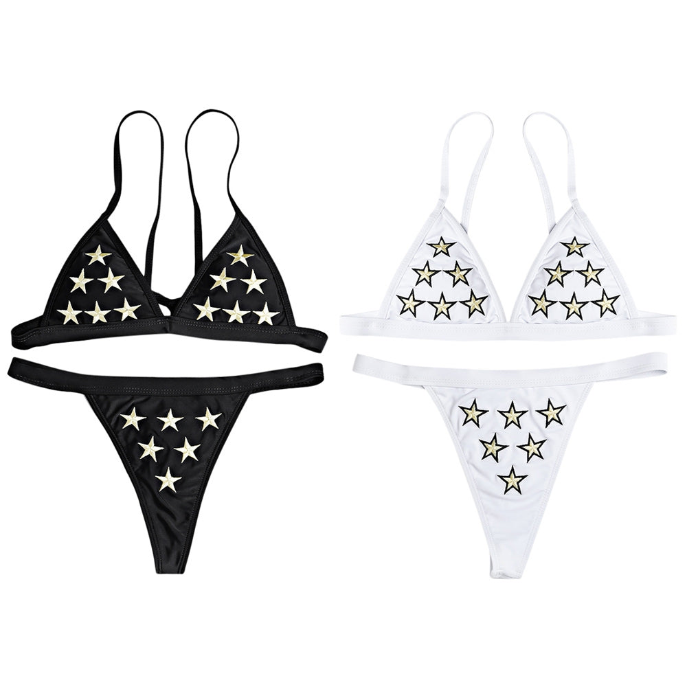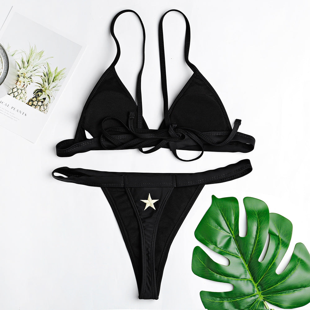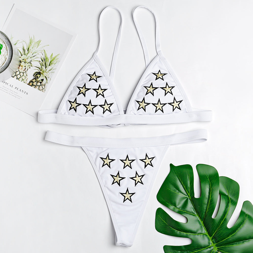 Halter Neck Backless Padded Embroidery Low Waist Women Bikini Set