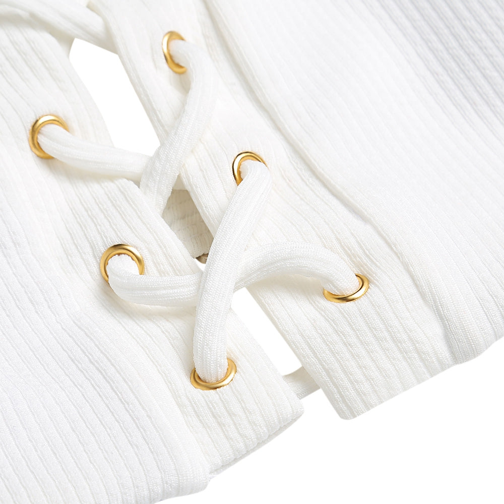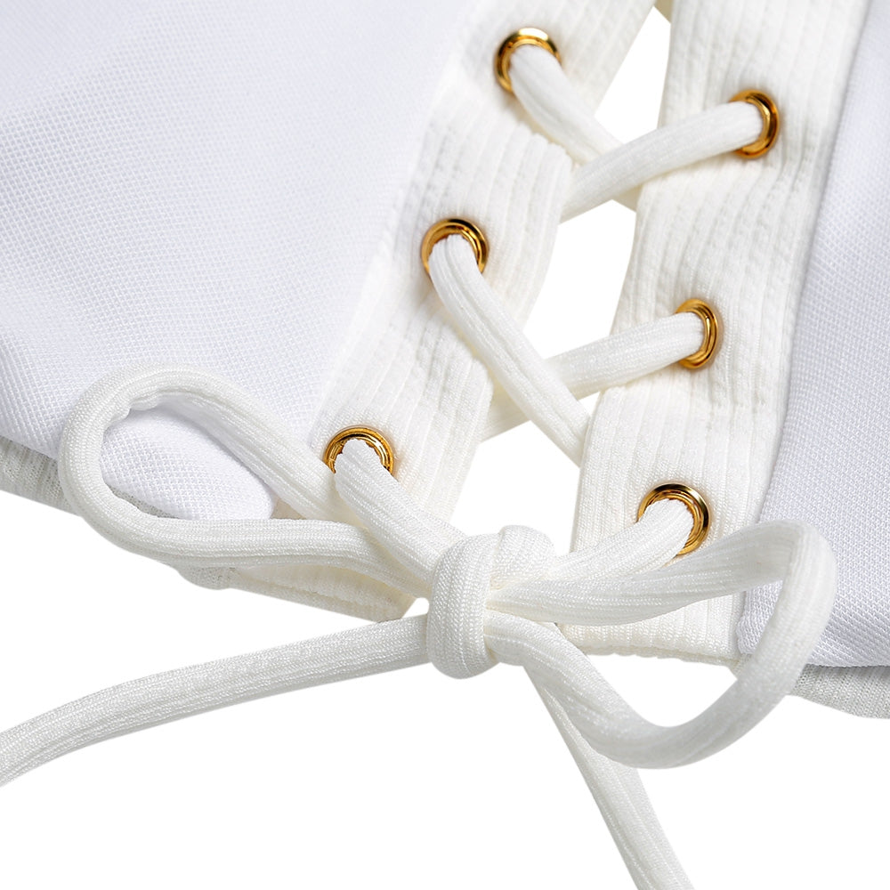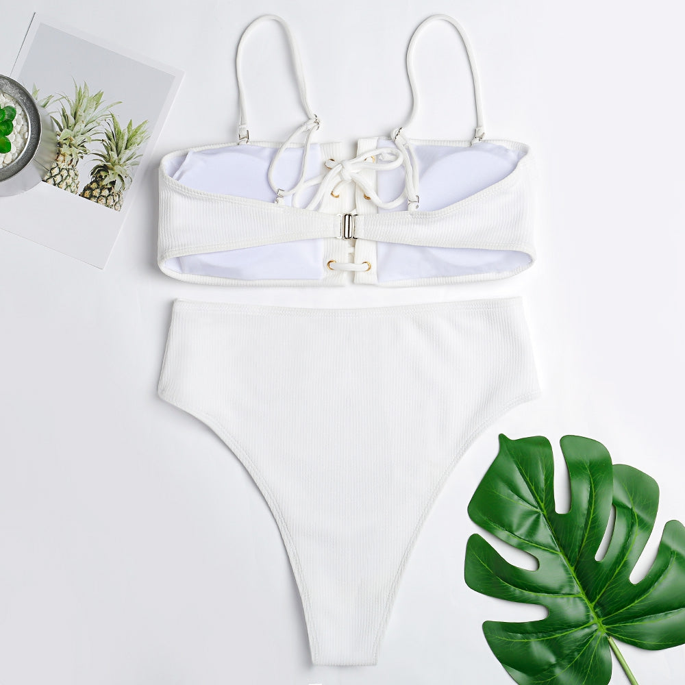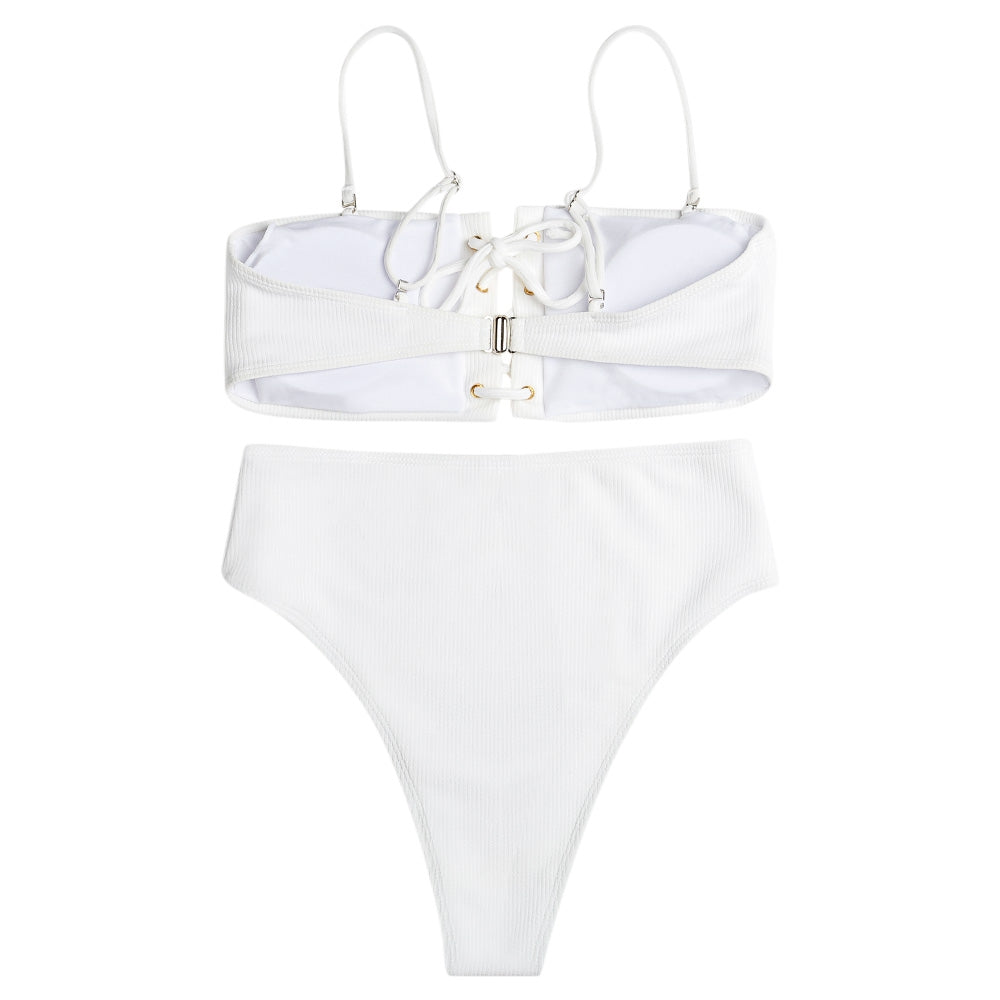 Spaghetti Strap Strapless Padded Lace-up High Waist Women Bikini Set