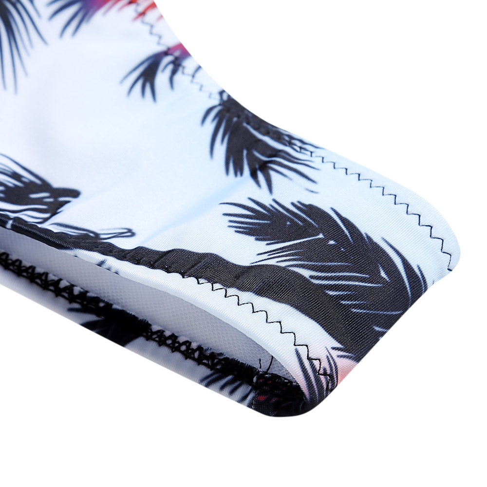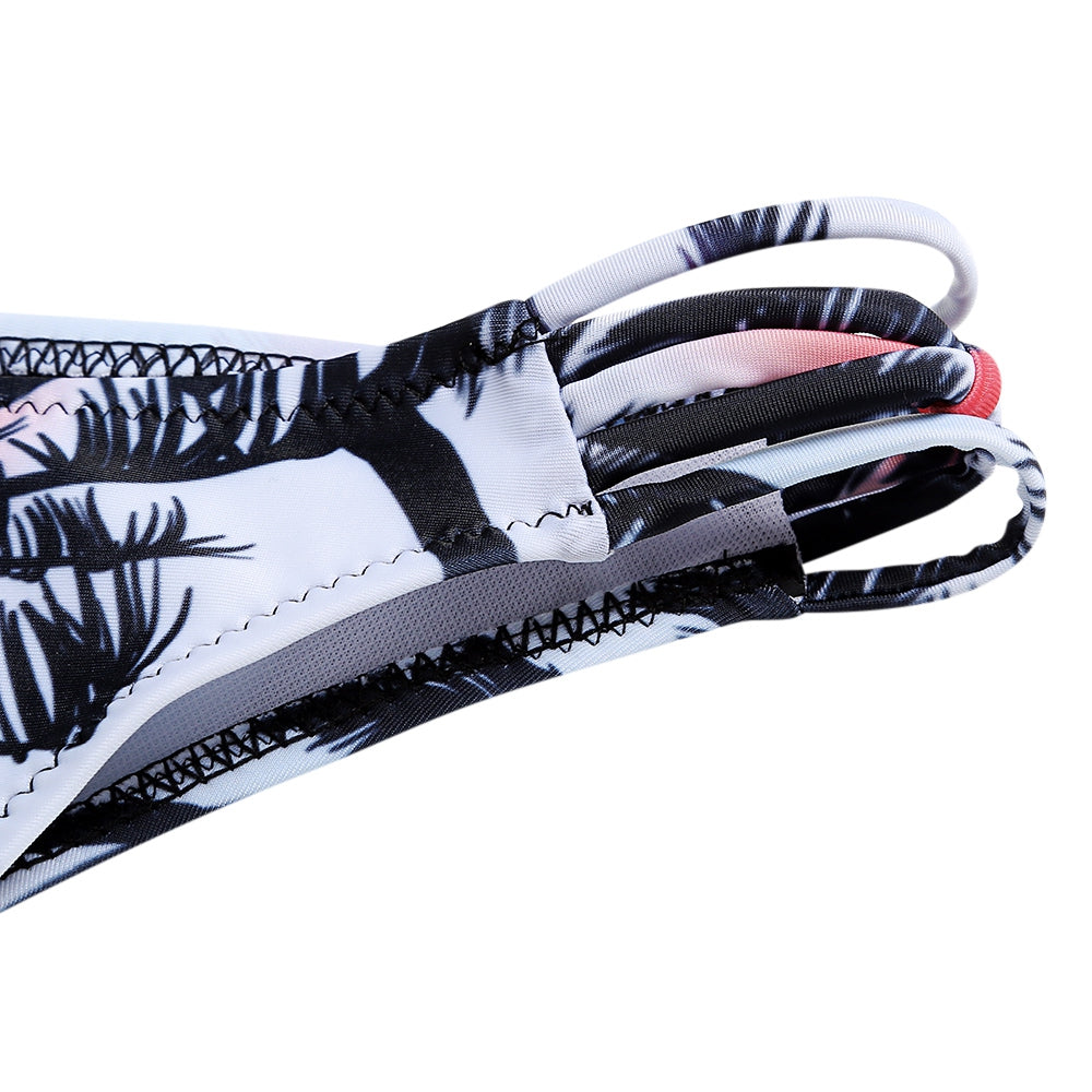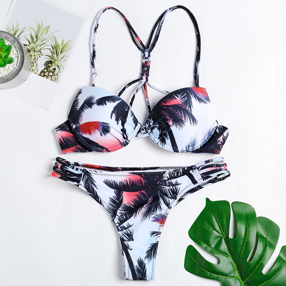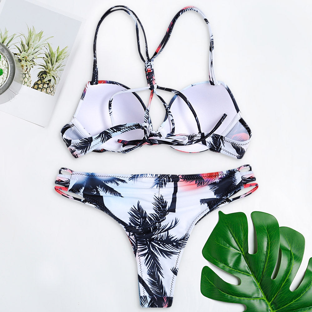 Spaghetti Strap Padded Underwire Tree Print Tied Low Waist Women Bikini Set
