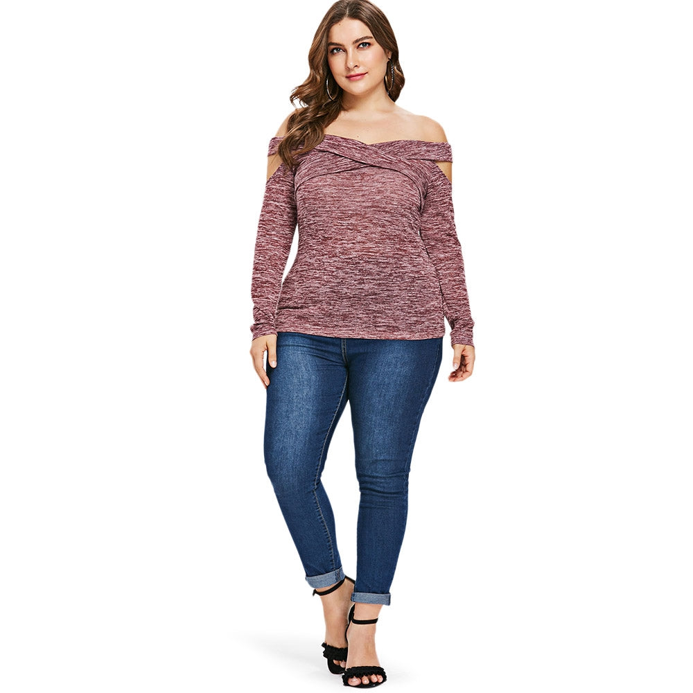 Plus Size Off The Shoulder Cutout Marled Long Sleeve T-shirt