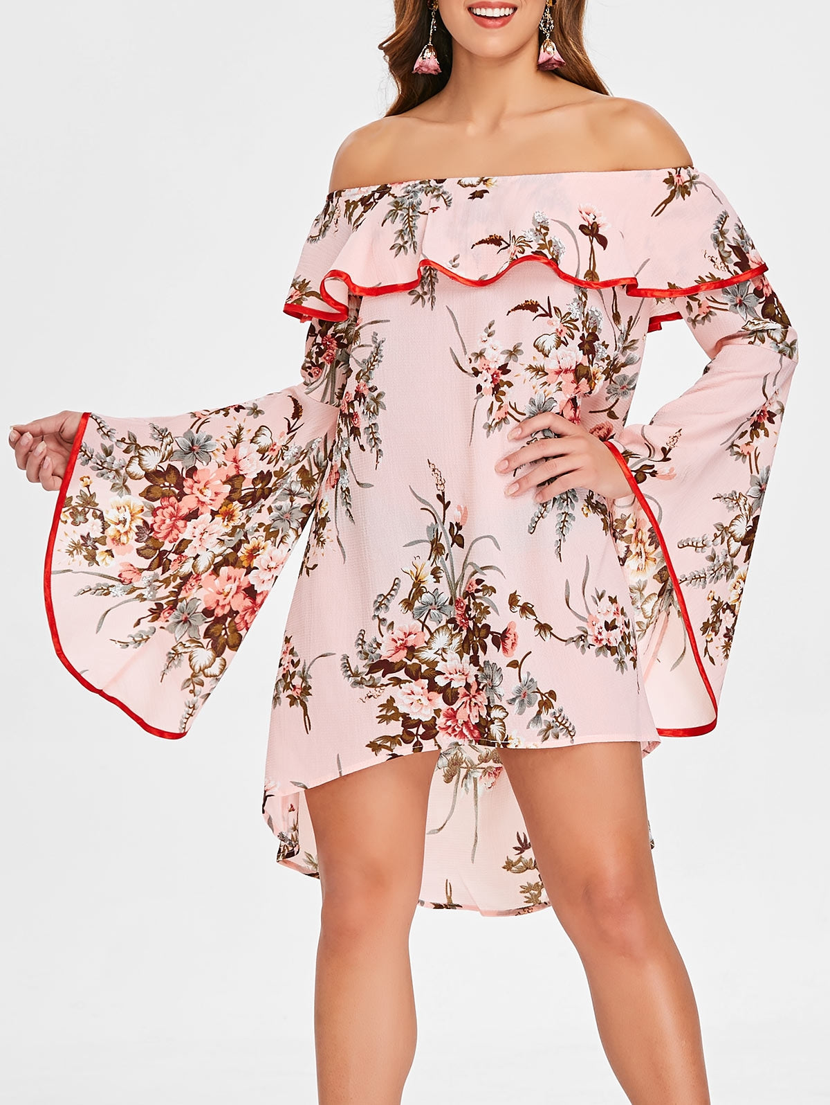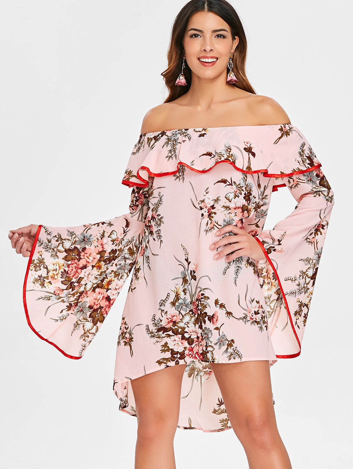 Off The Shoulder Ruffled Floral Dress